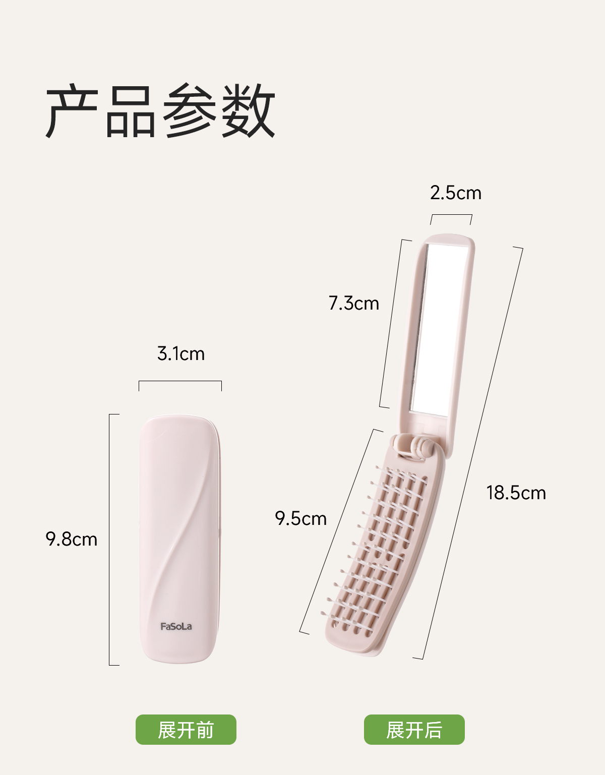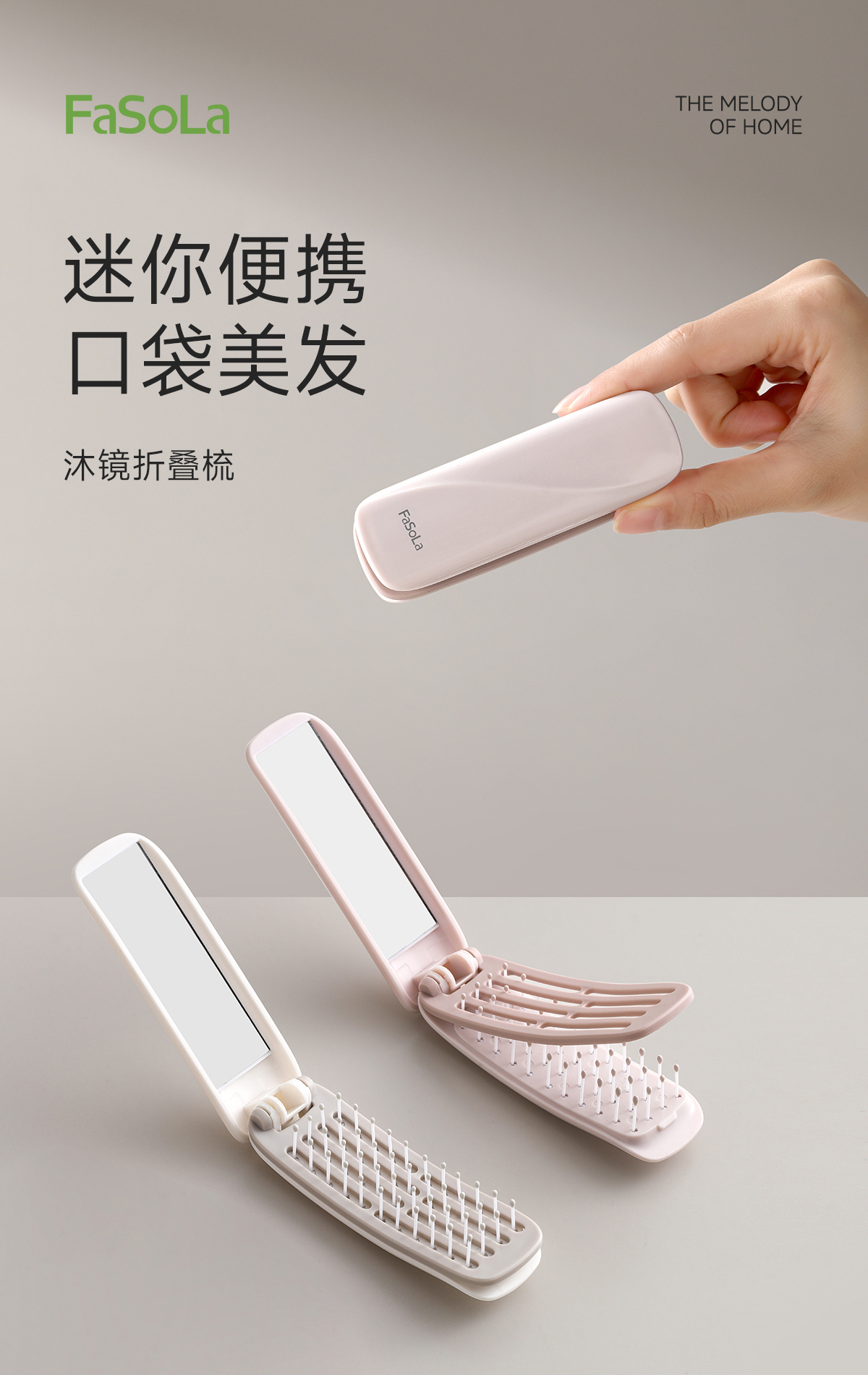 FaSoLa折叠梳子镜子一体迷你便携随身携带化妆镜二合一沐镜折叠梳