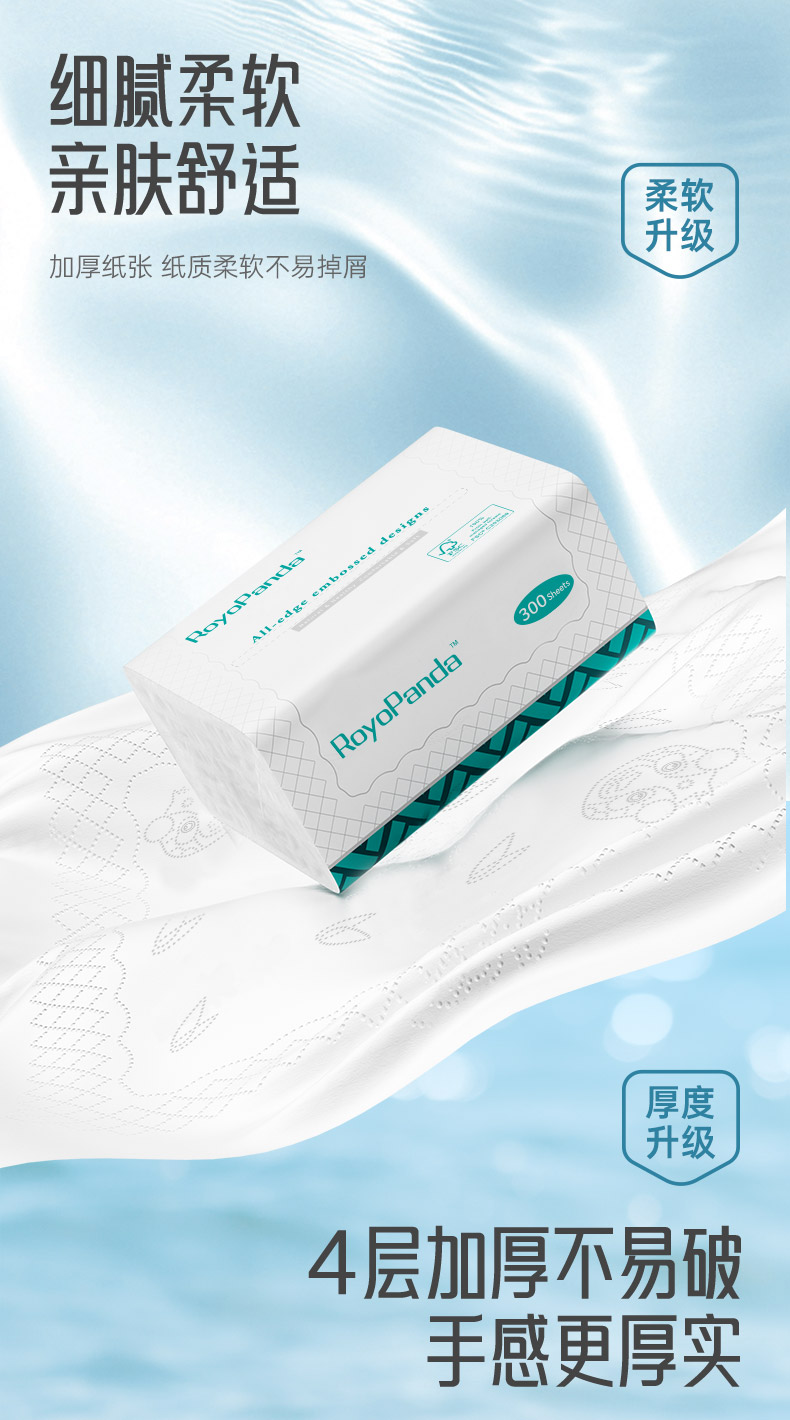 若禺RoyoPanda软抽纸竹柔系列4层加厚300张/包原生竹浆湿水可用6包1提R1R1101