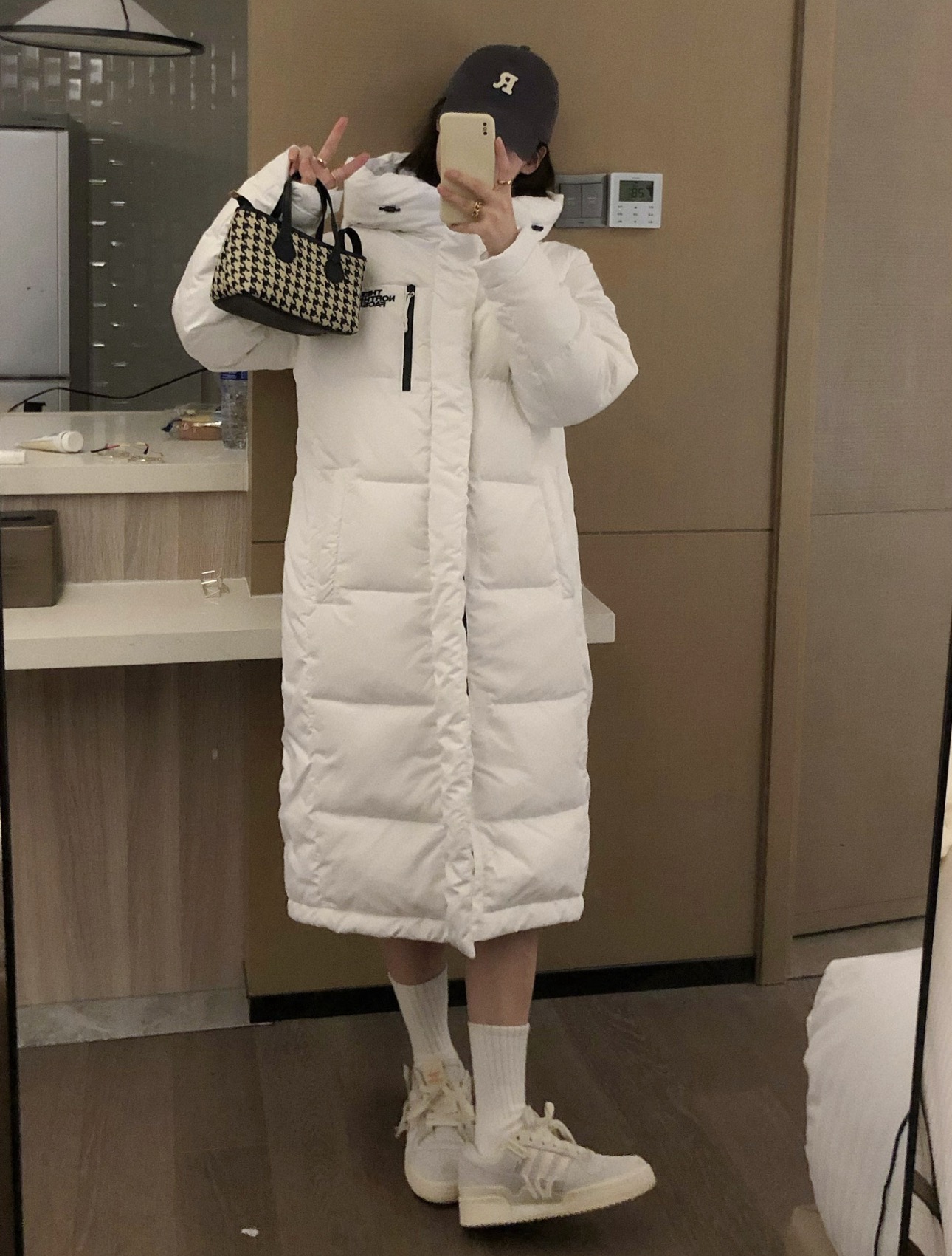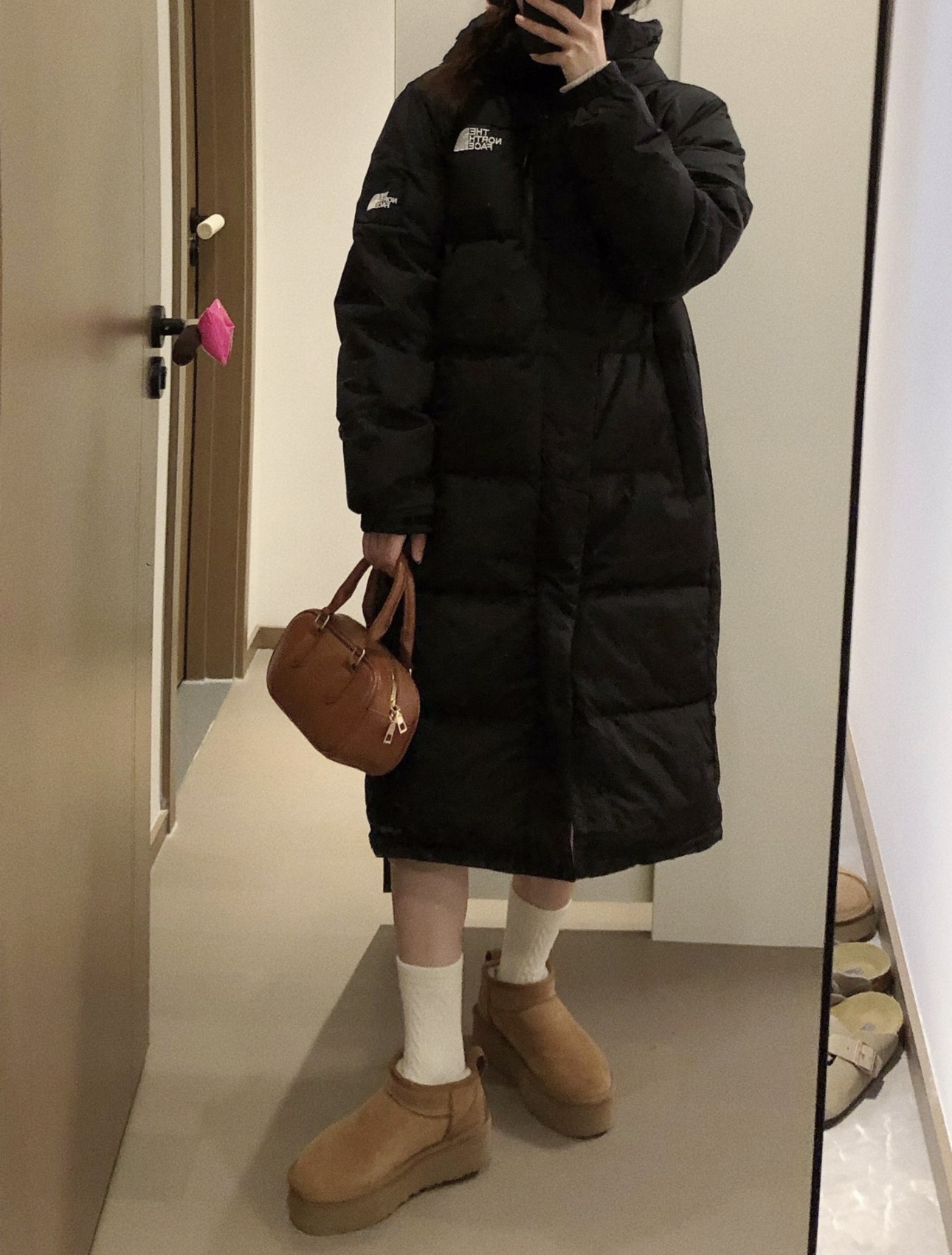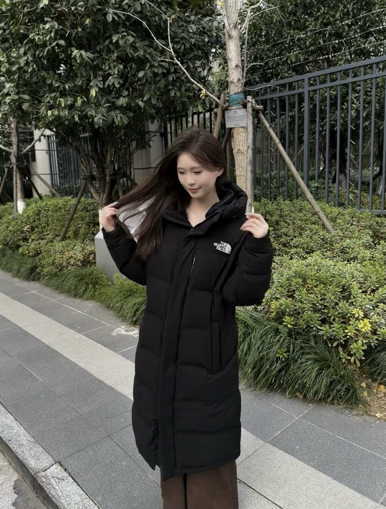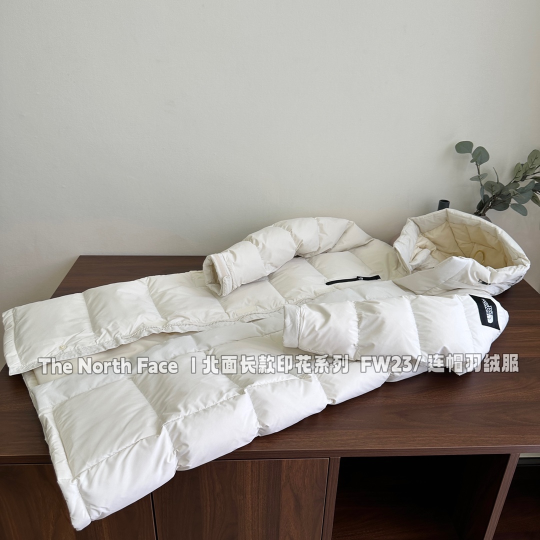 【体验无断层】TheNorthFace北面 长款印花系列 FW23/ 连帽羽绒服 国标90白鸭绒填充,保暖性能更出色,轻便不厚重 一件降温就拿出来的长款北面 冬日衣橱里的颜值担当