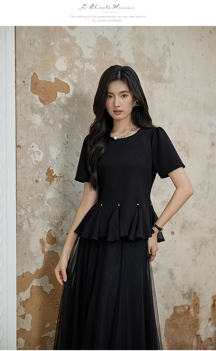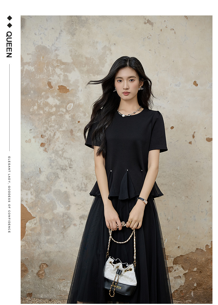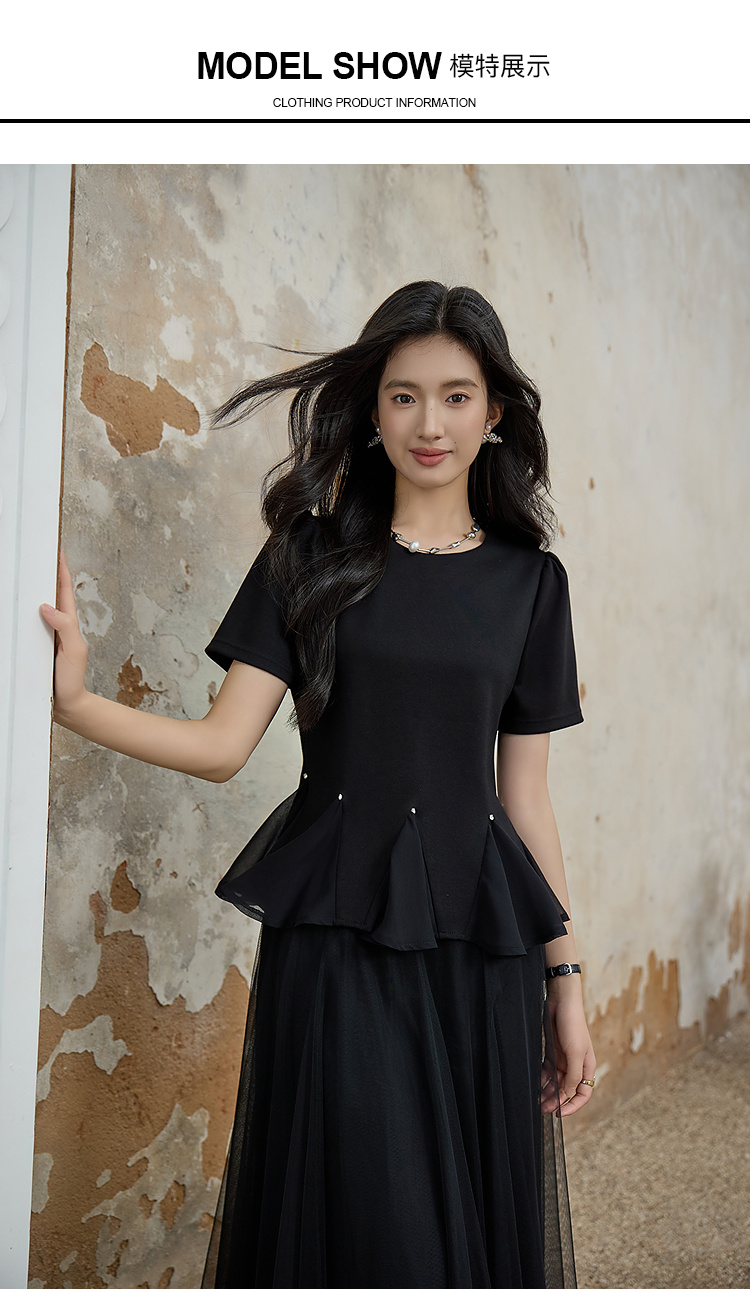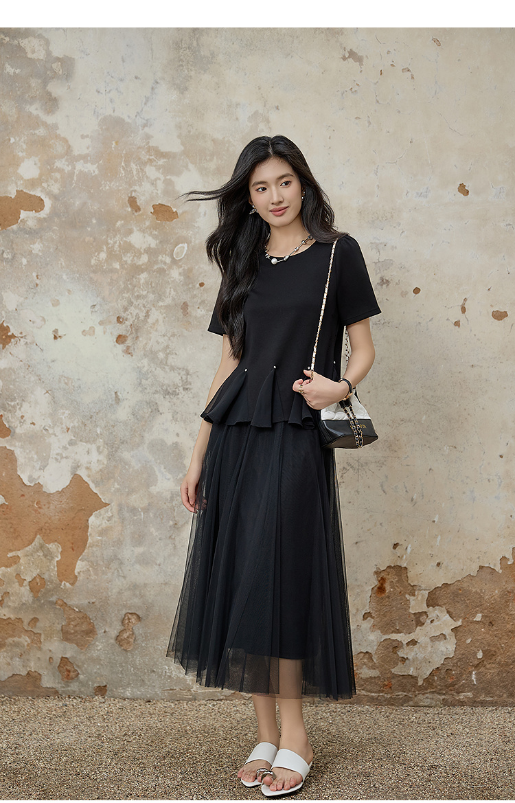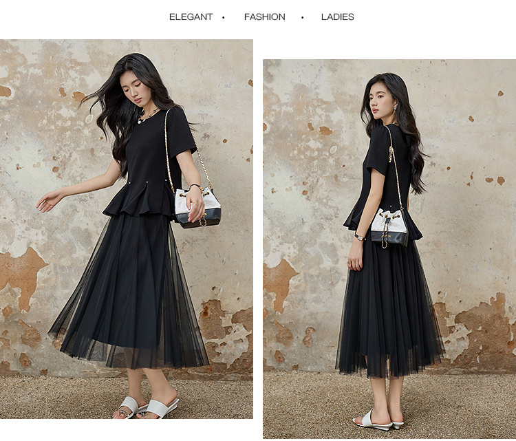 奢姿大码女装2026夏季网纱拼接圆领时尚两件套胖妹妹名媛风套装9962954525