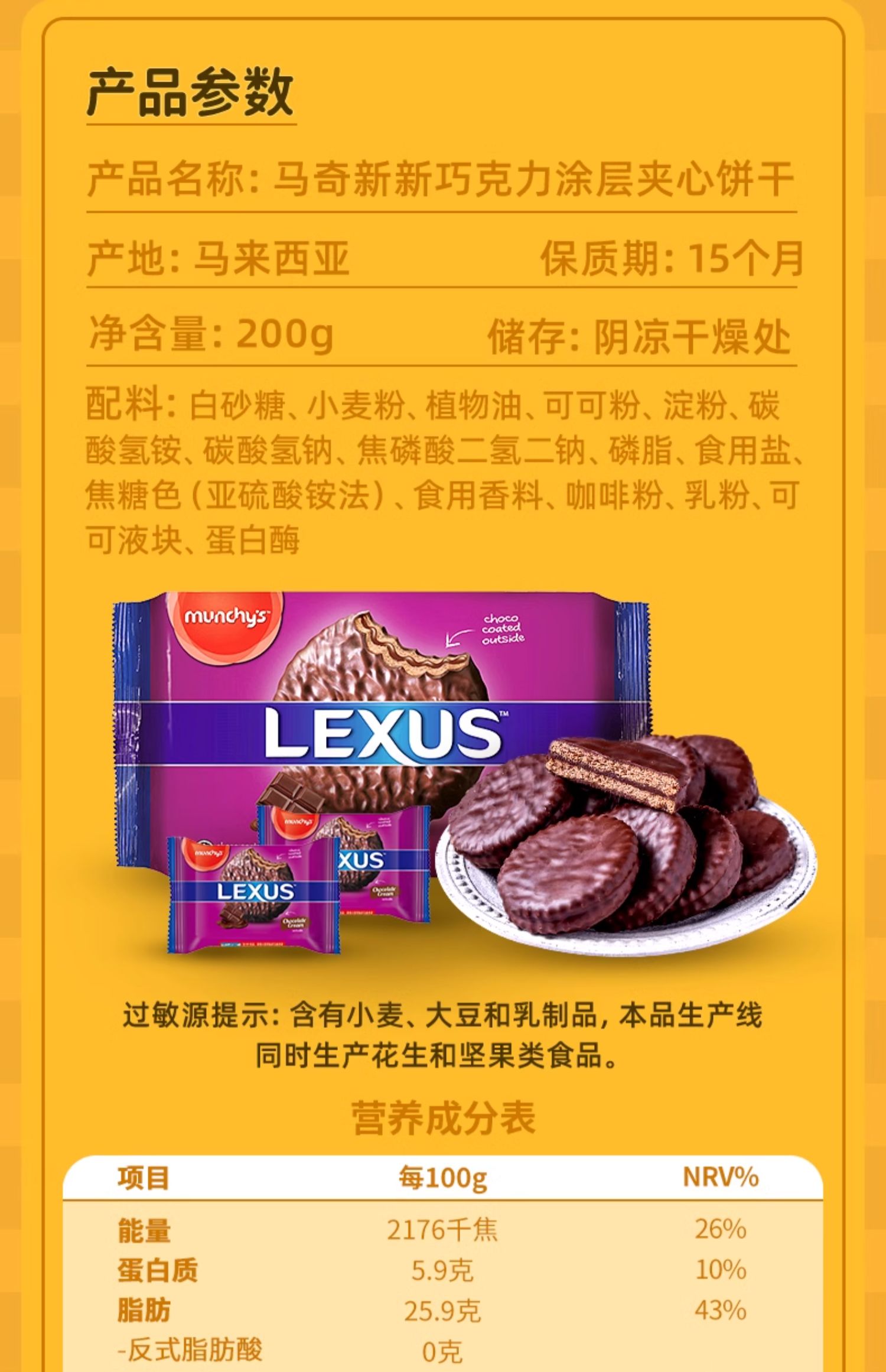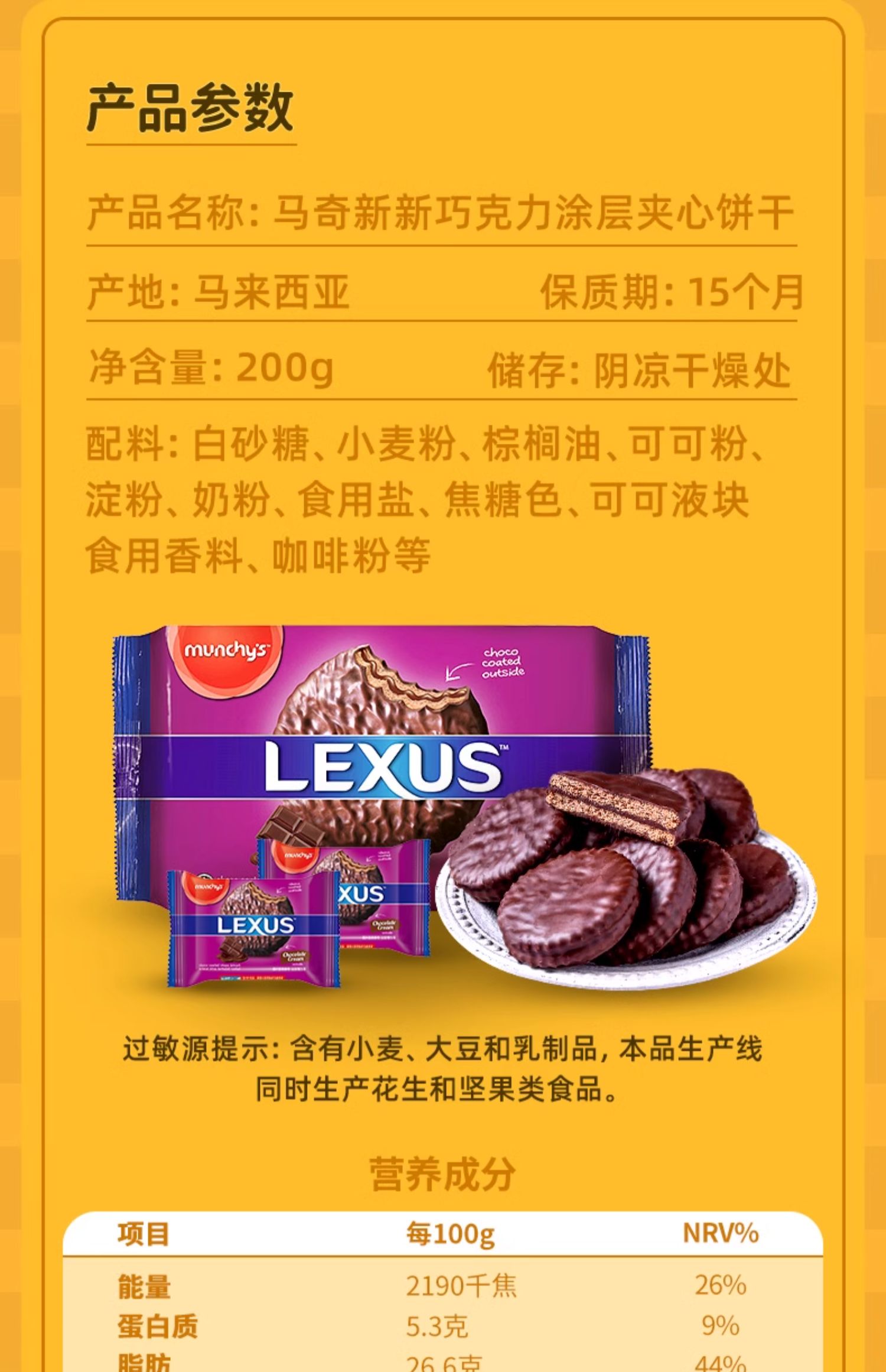 马奇新新 进口纯可可脂巧克力涂层夹心饼干独立小包装 200g*3袋