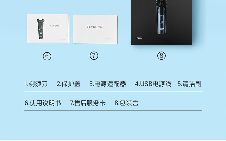 飞科(FLYCO)男士电动剃须刀全身水洗干湿双剃旋转式刮胡刀1小时快充