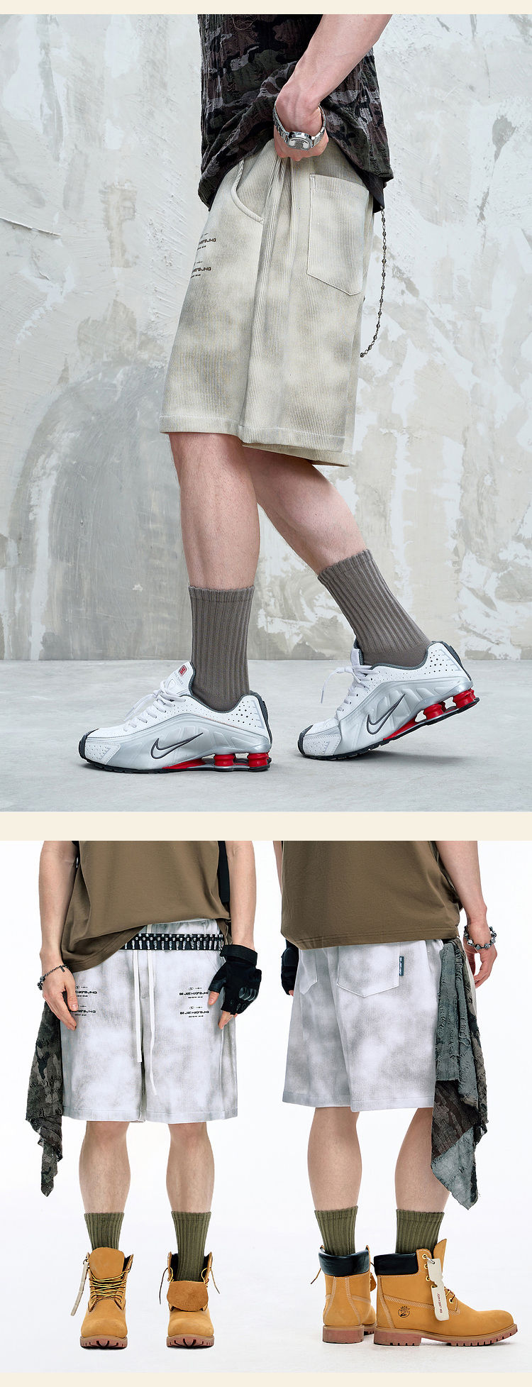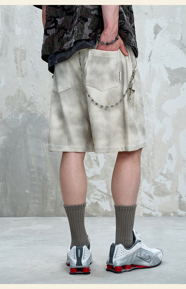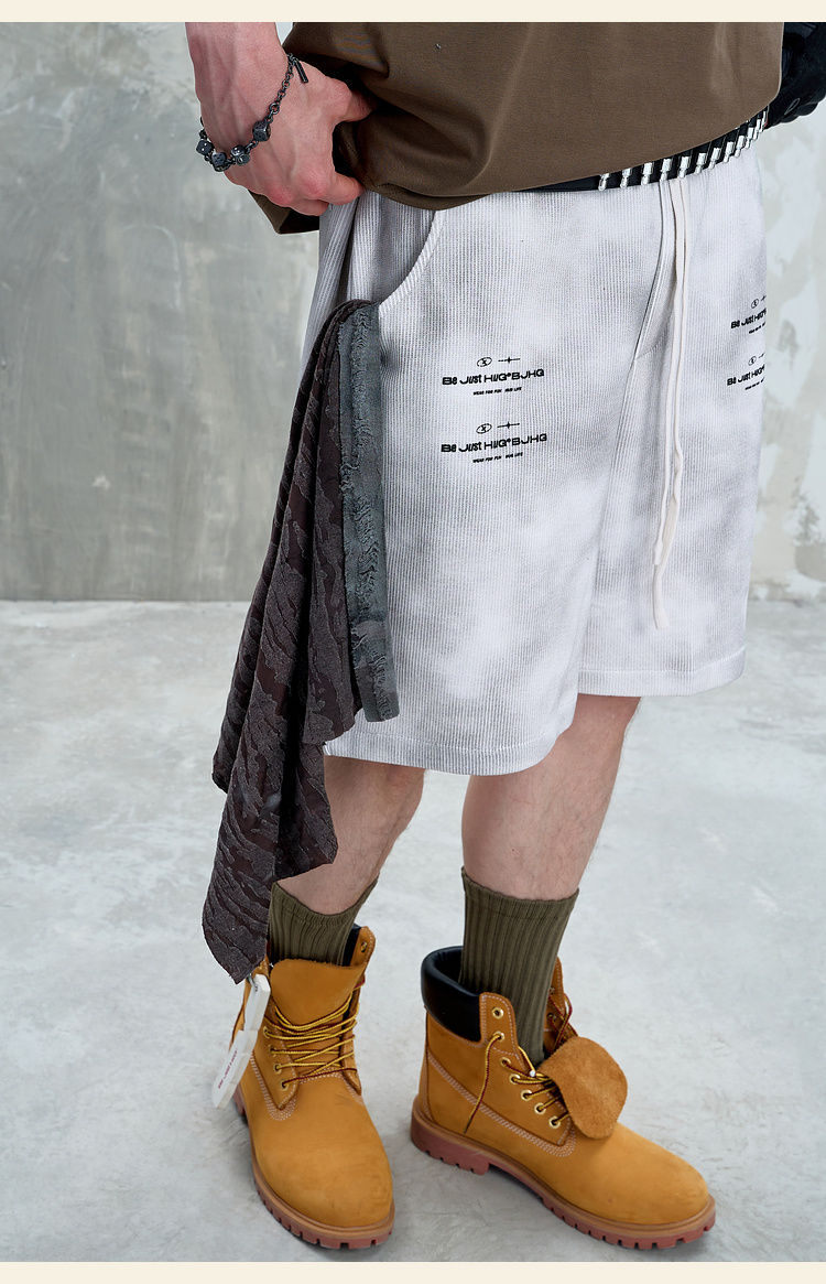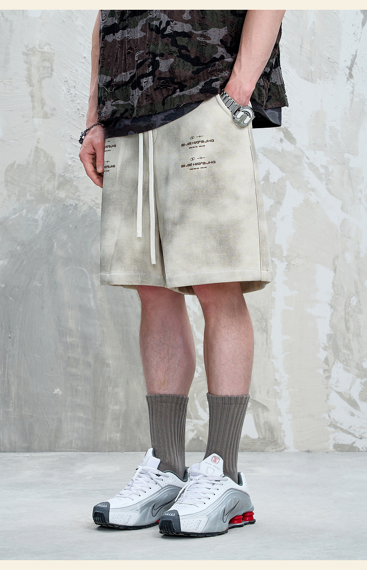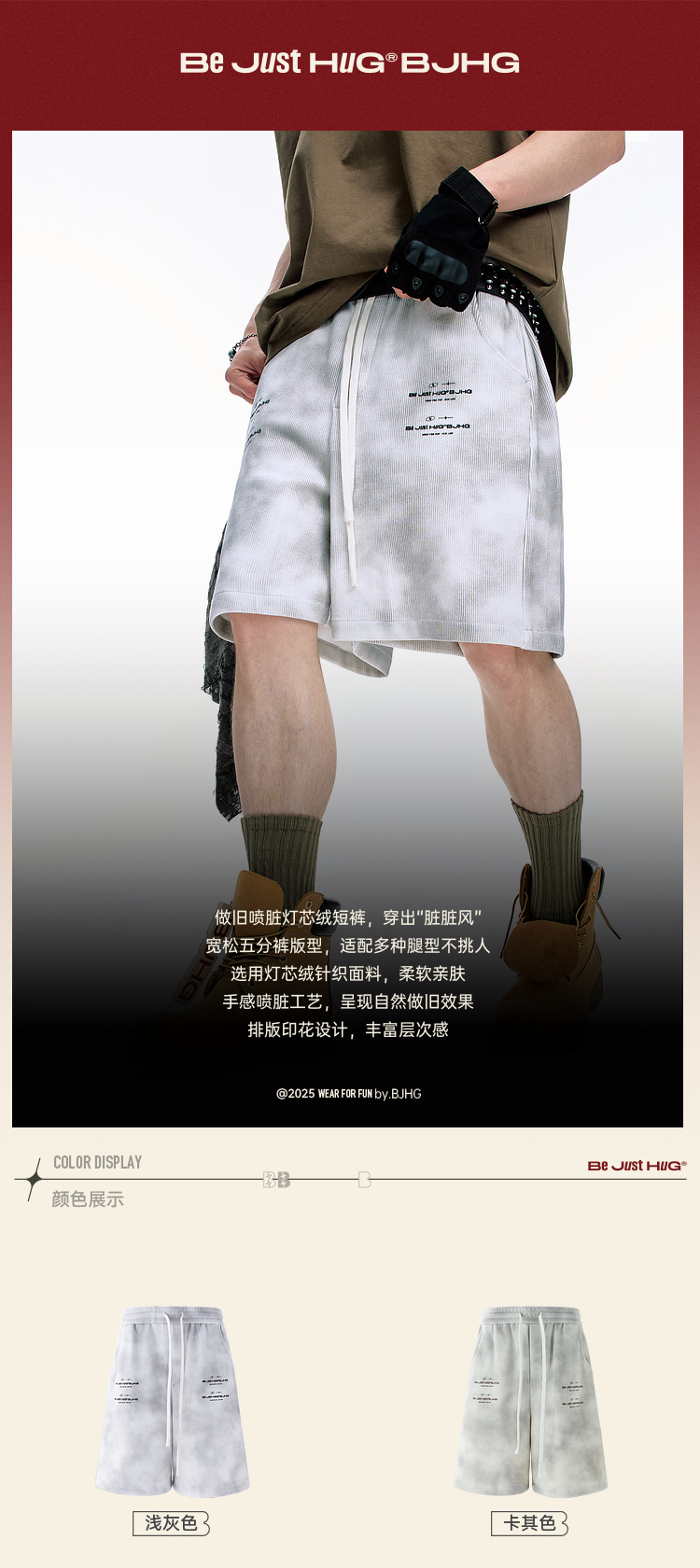 BJHG不计后果做旧灯芯绒短裤男款夏季新款宽松美式简约印花五分裤