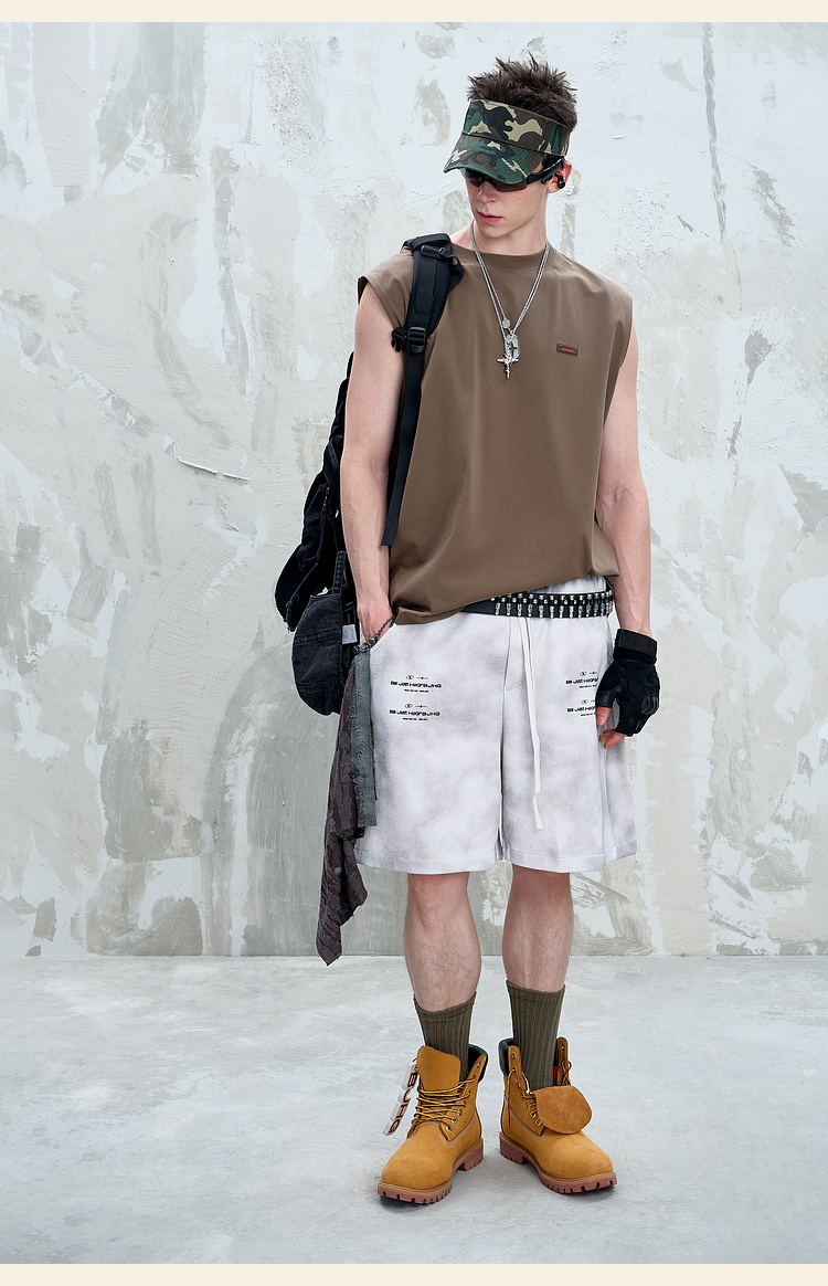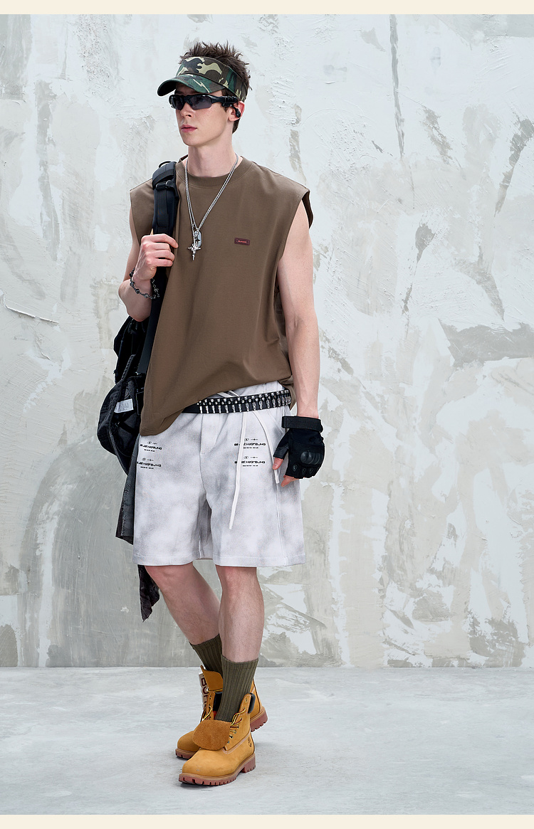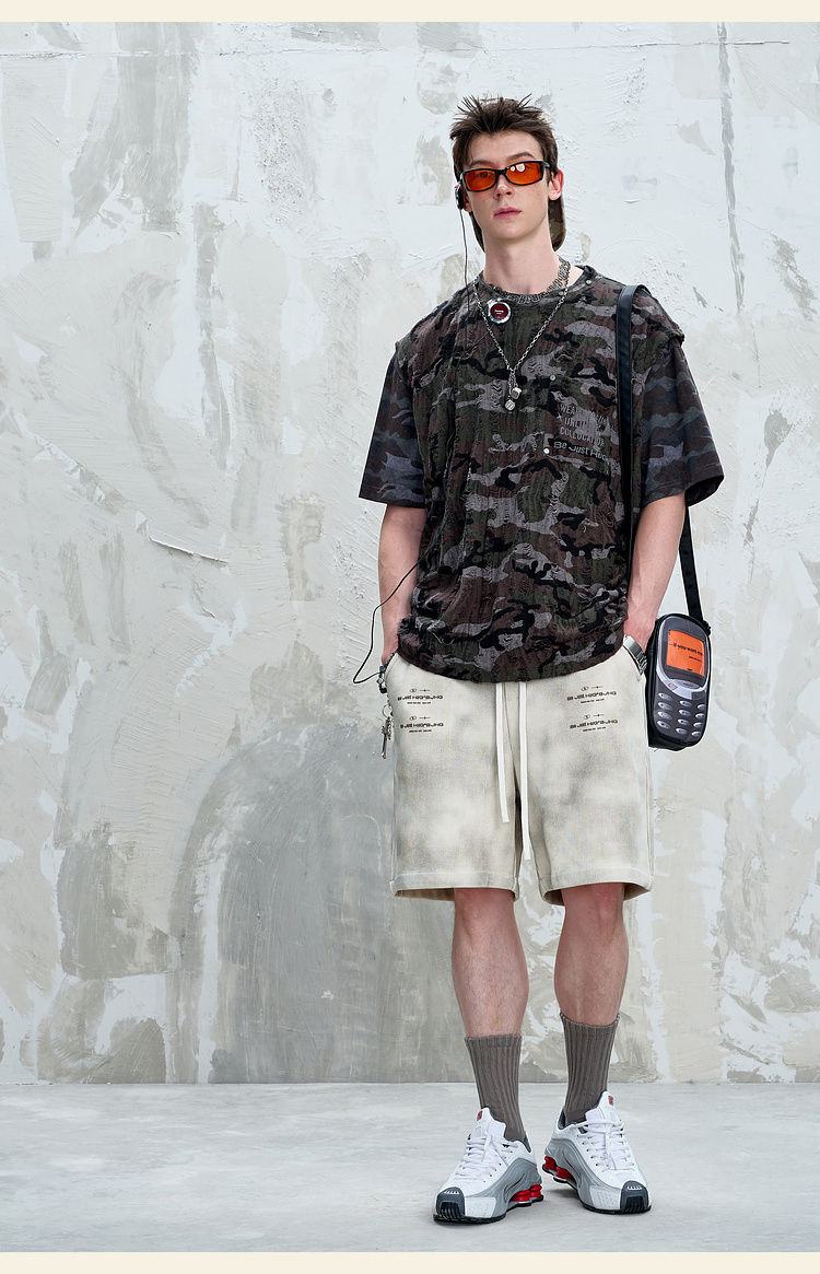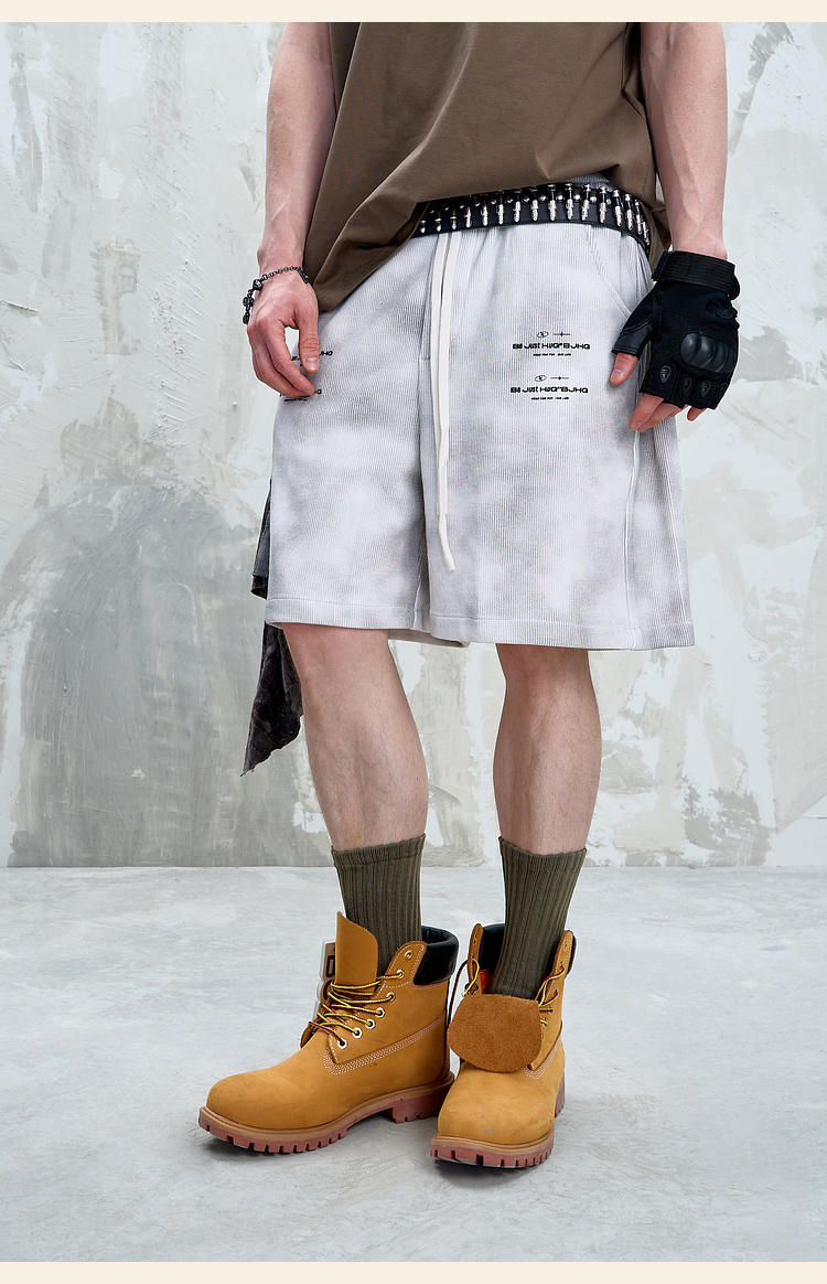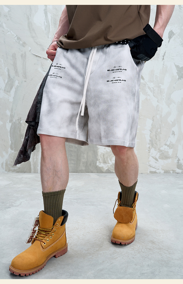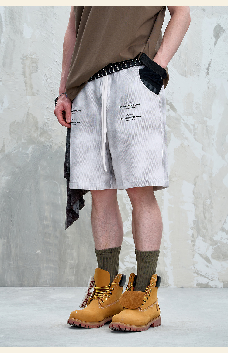 BJHG不计后果做旧灯芯绒短裤男款夏季新款宽松美式简约印花五分裤