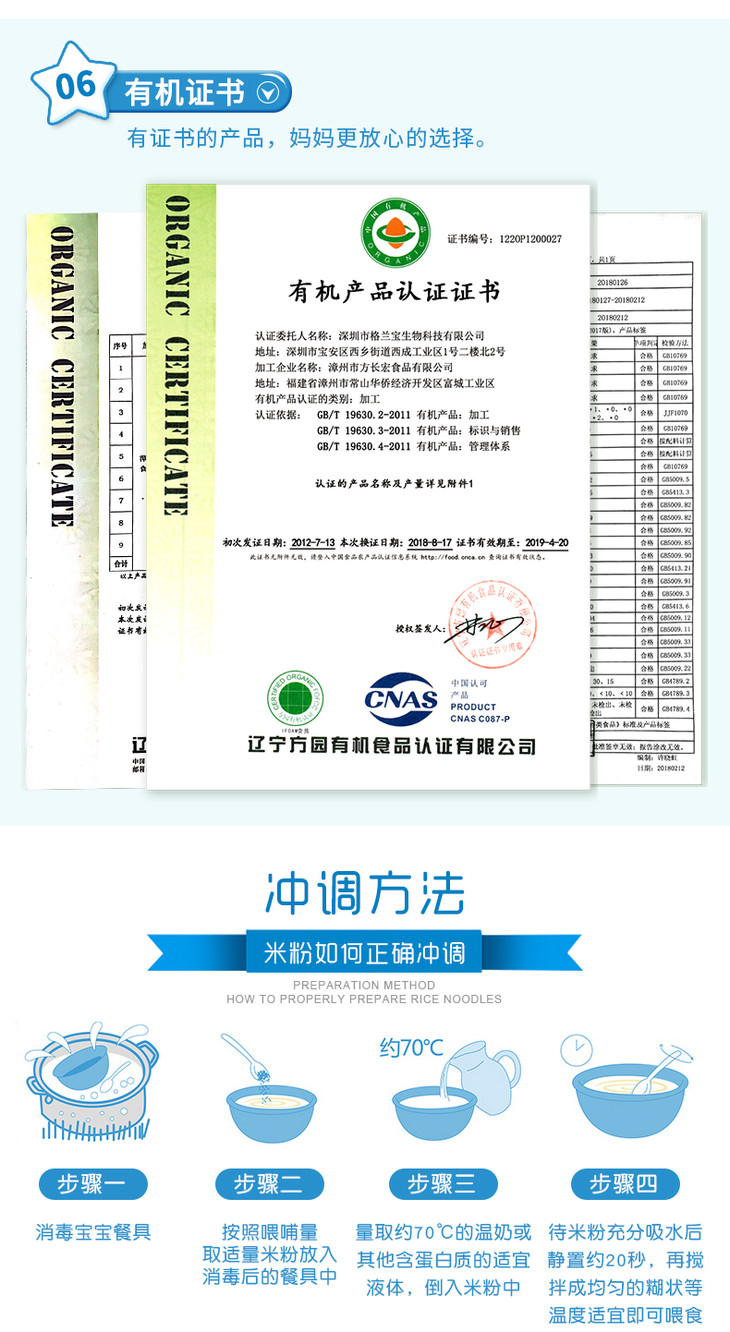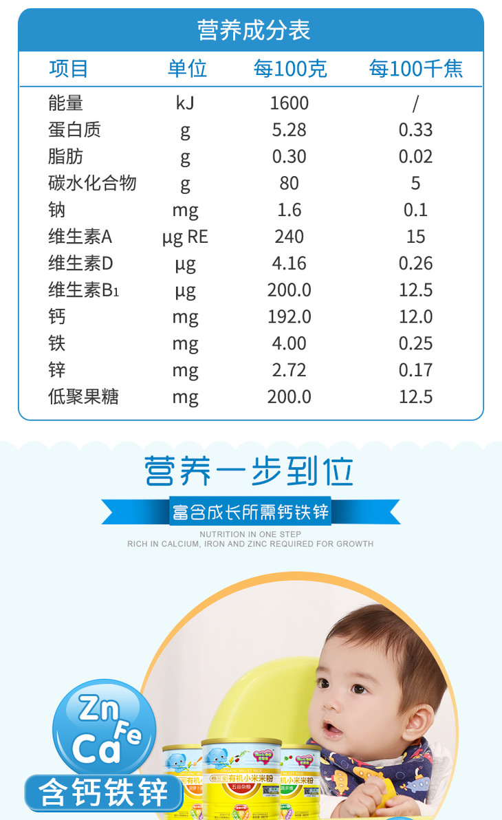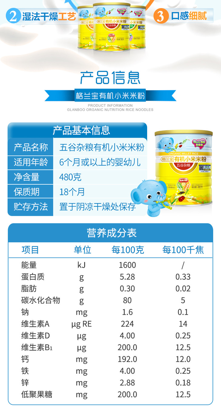格兰宝有机小米米粉(果蔬多维配方)480g
