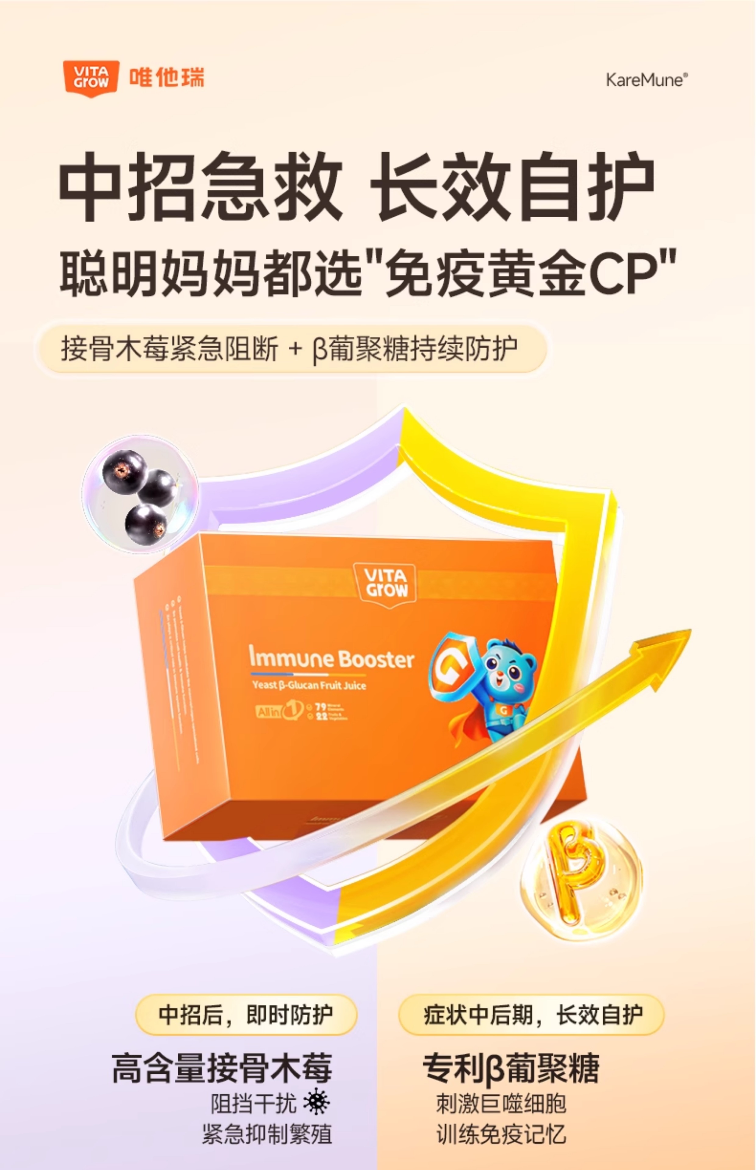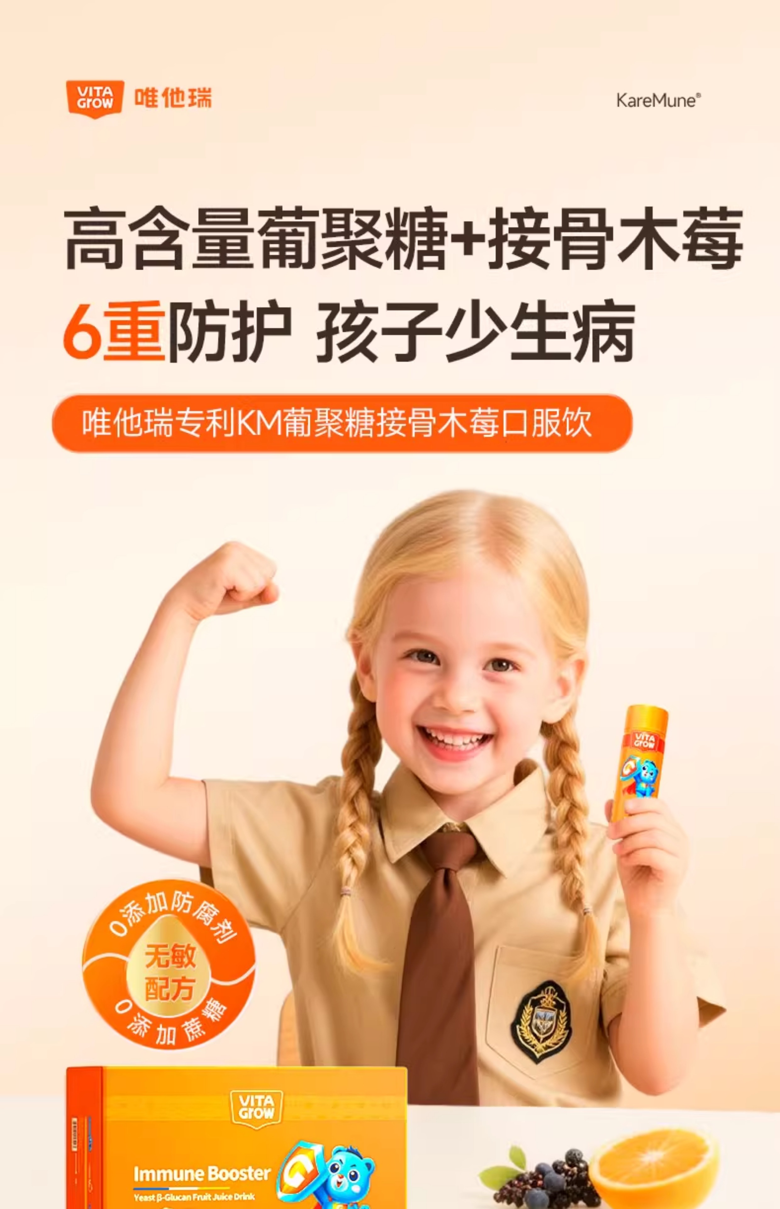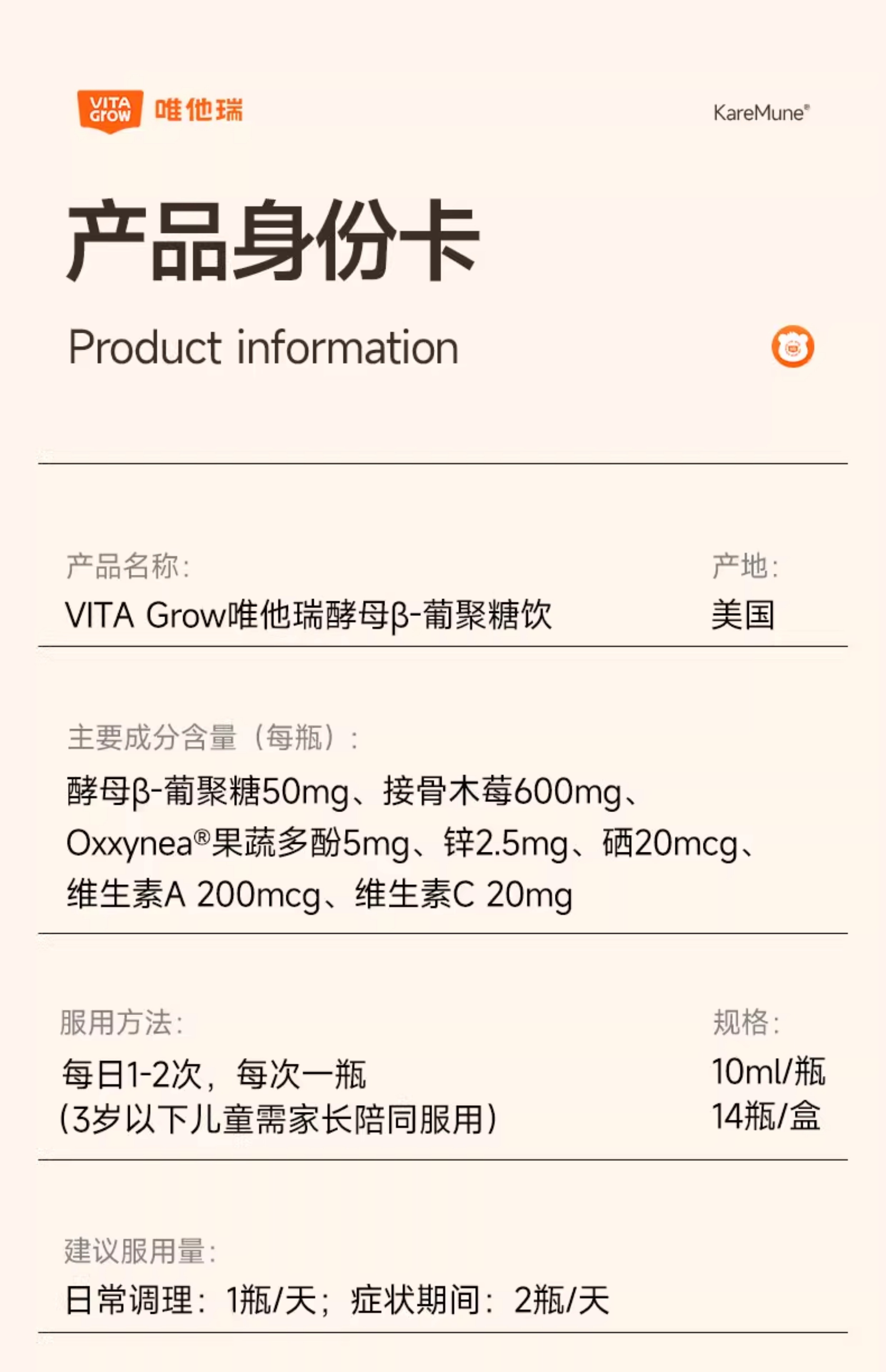 VITA Grow 免疫力酵母β-葡聚糖加强版营养饮 14瓶/盒 全面营养 加强稳固好体质(效期至26/11)