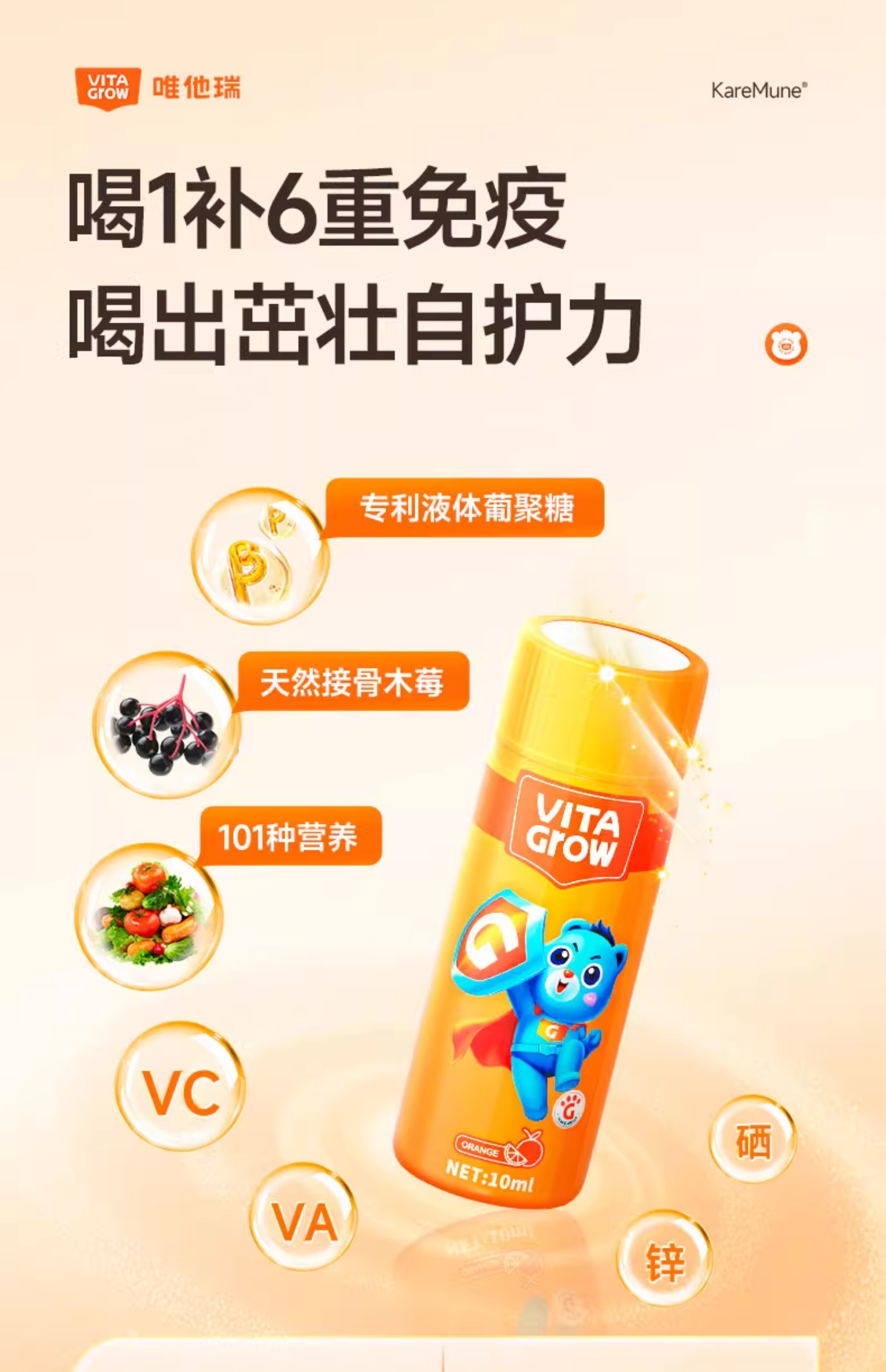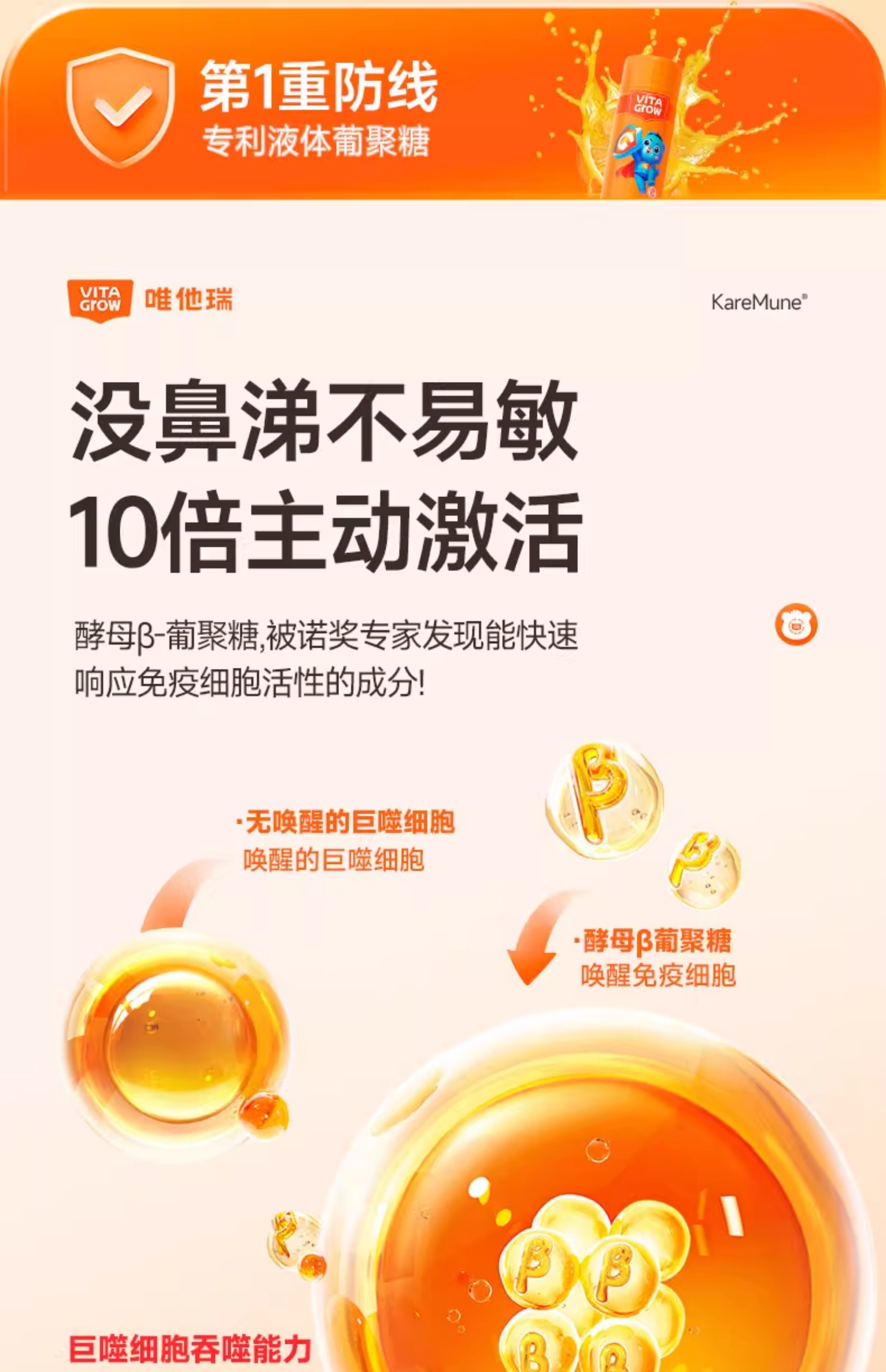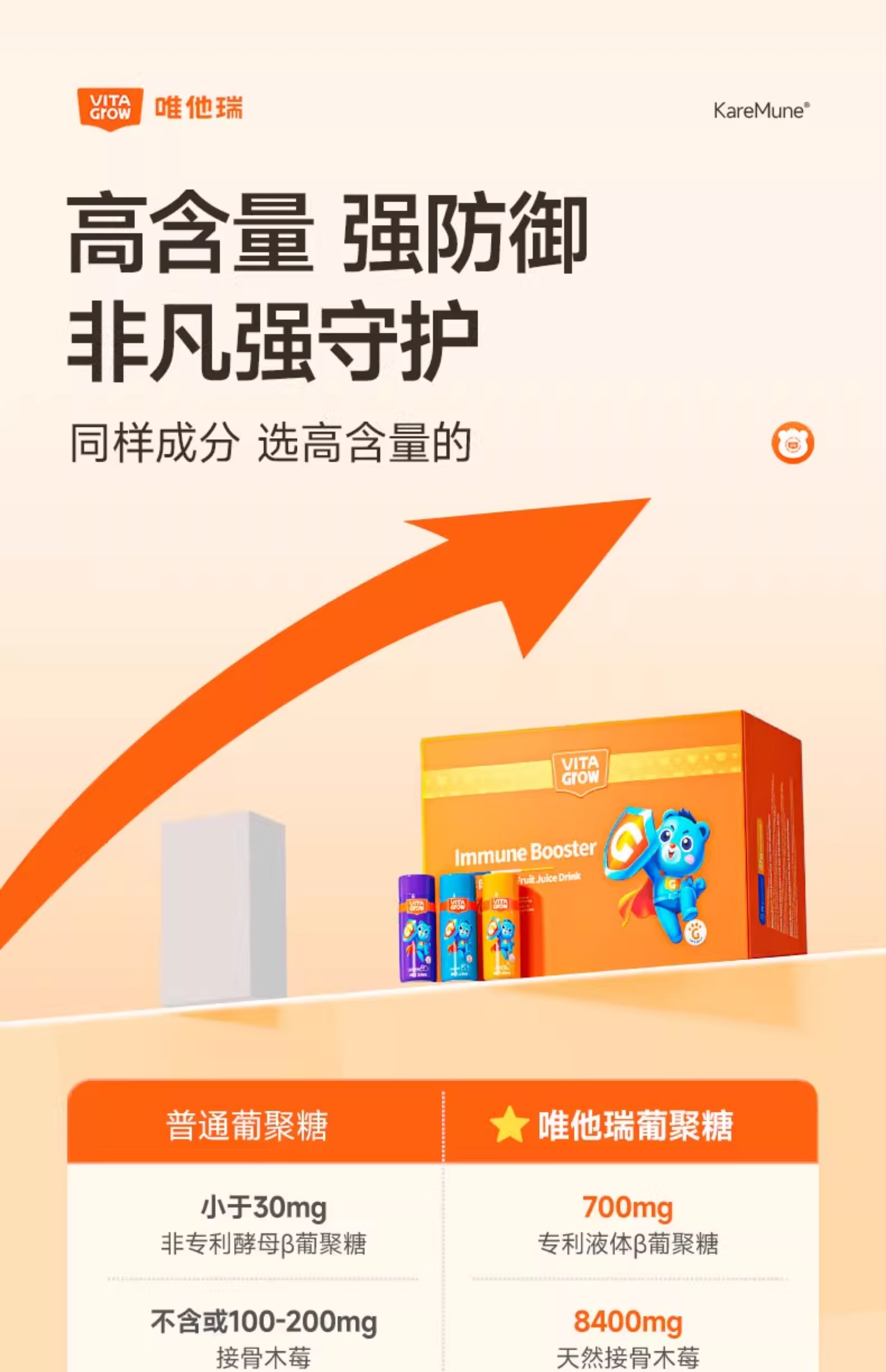 VITA Grow 免疫力酵母β-葡聚糖加强版营养饮 14瓶/盒 全面营养 加强稳固好体质(效期至26/11)