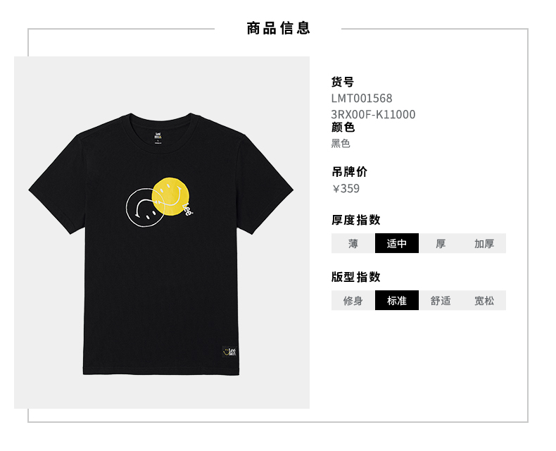 【Smiley®联名】Lee22春夏新品标准印花多色男短袖T恤LMT0015683RX00FK14000/11000