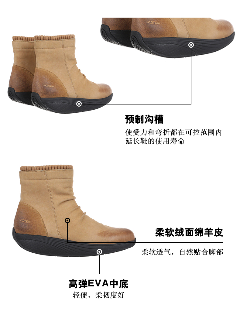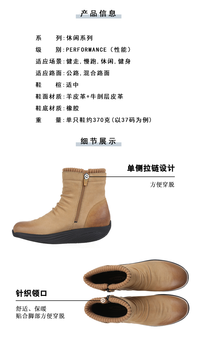 MBT足健康鞋女厚底休闲通勤冬季保暖短靴扁平足增高提臀羊皮KENDU