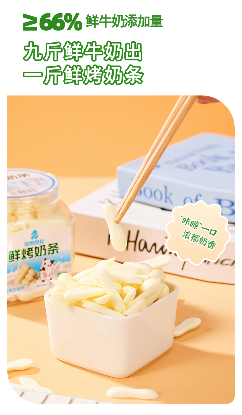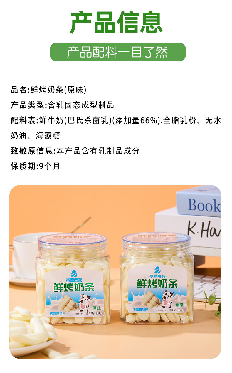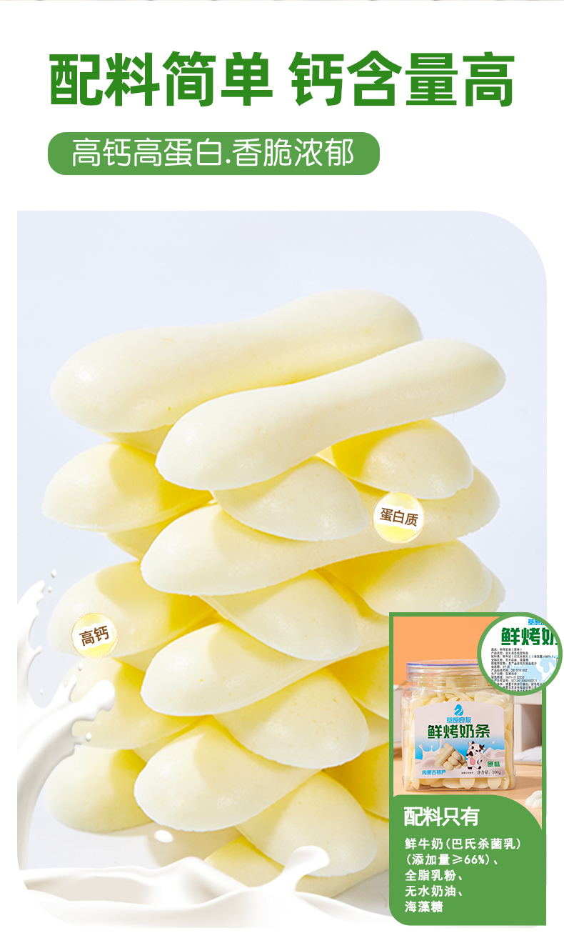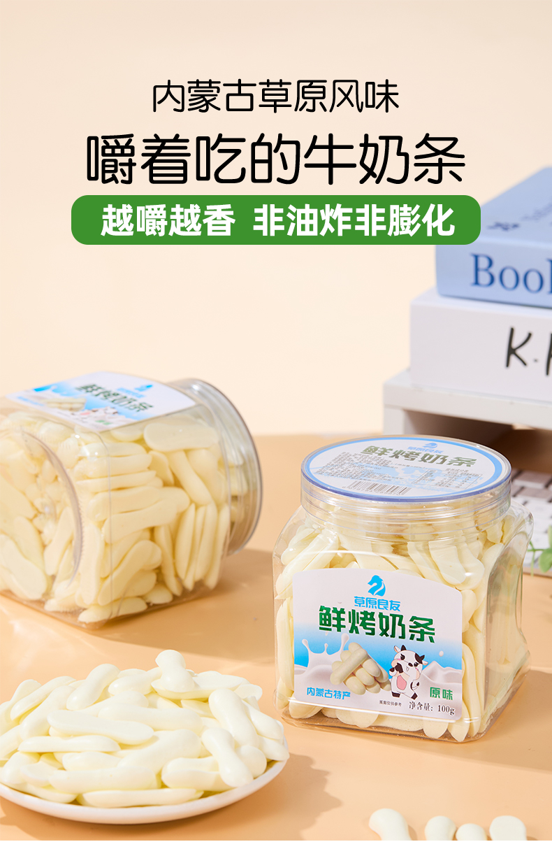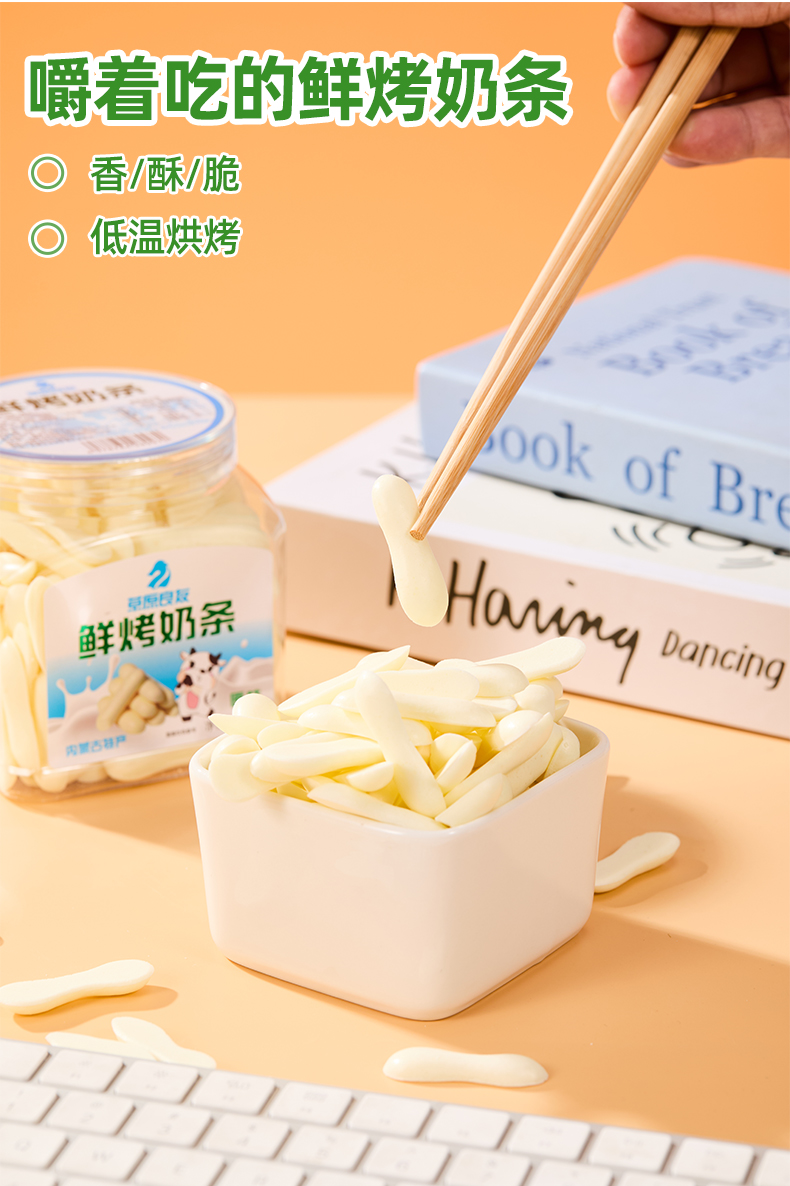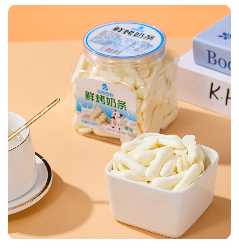 【2份减10元】 内蒙古鲜烤奶条 每100克钙含量787毫克 钙含量是牛奶的7倍 9斤鲜牛奶出1斤鲜烤奶条 低温烘焙 越嚼越香 高钙高蛋白零食 100克/桶