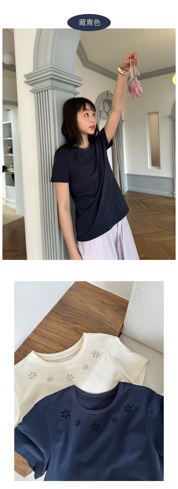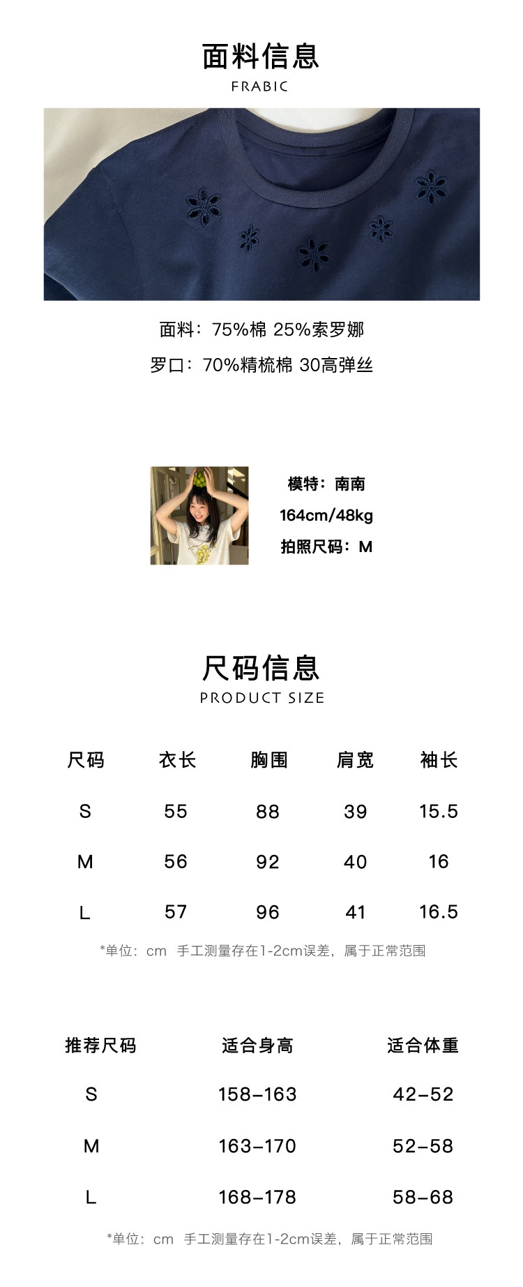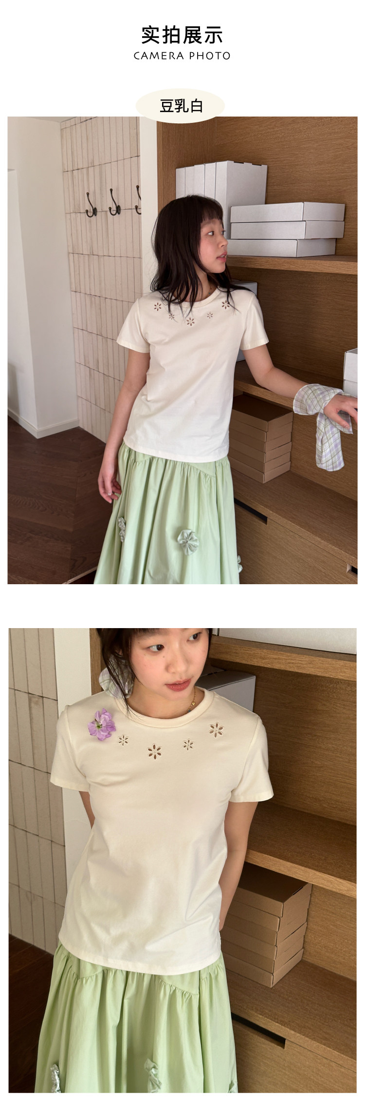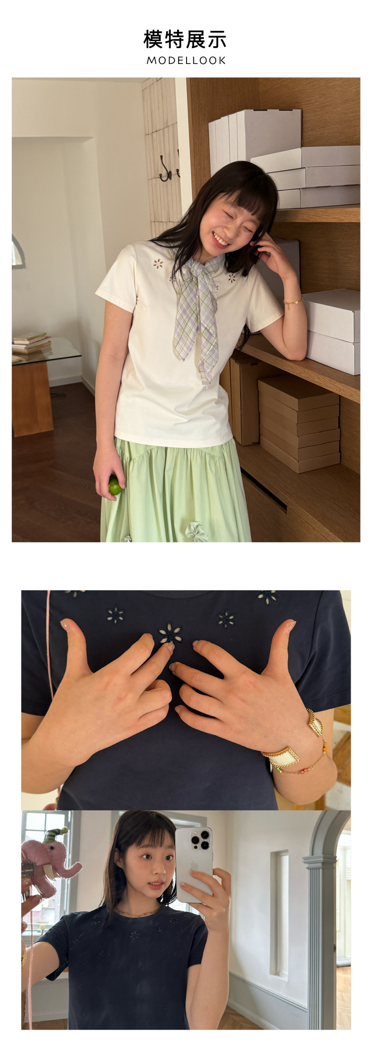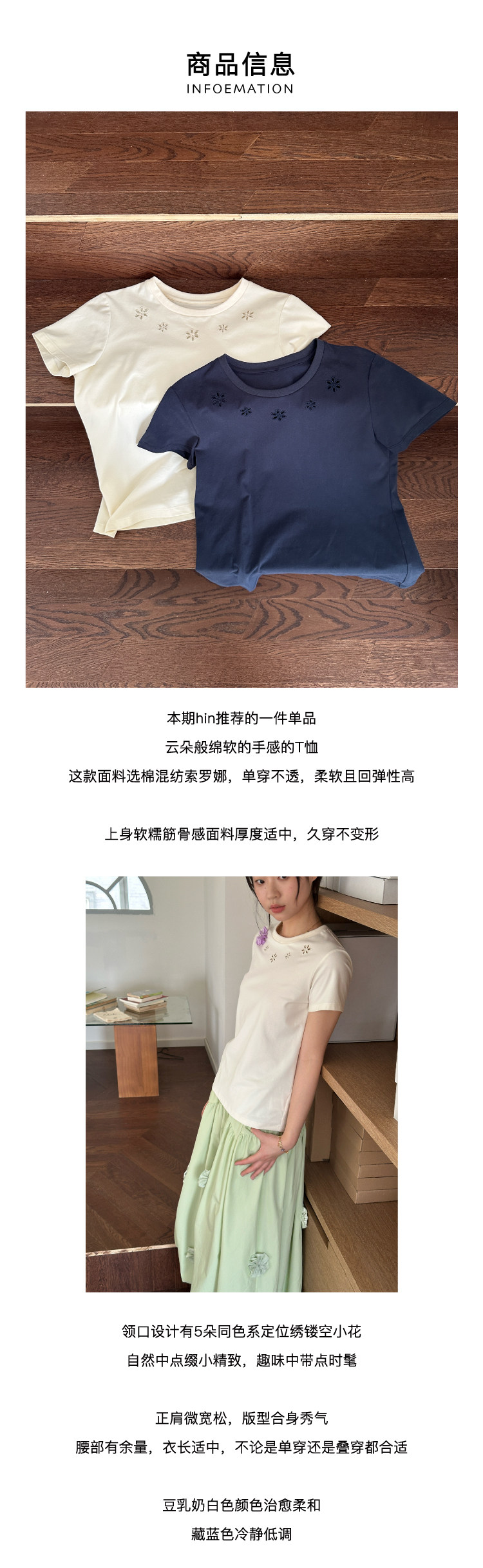nothe Case布然/NC261823/「铃花木棉」暖糯棉感 花朵刺绣正肩显瘦 圆领T恤双色