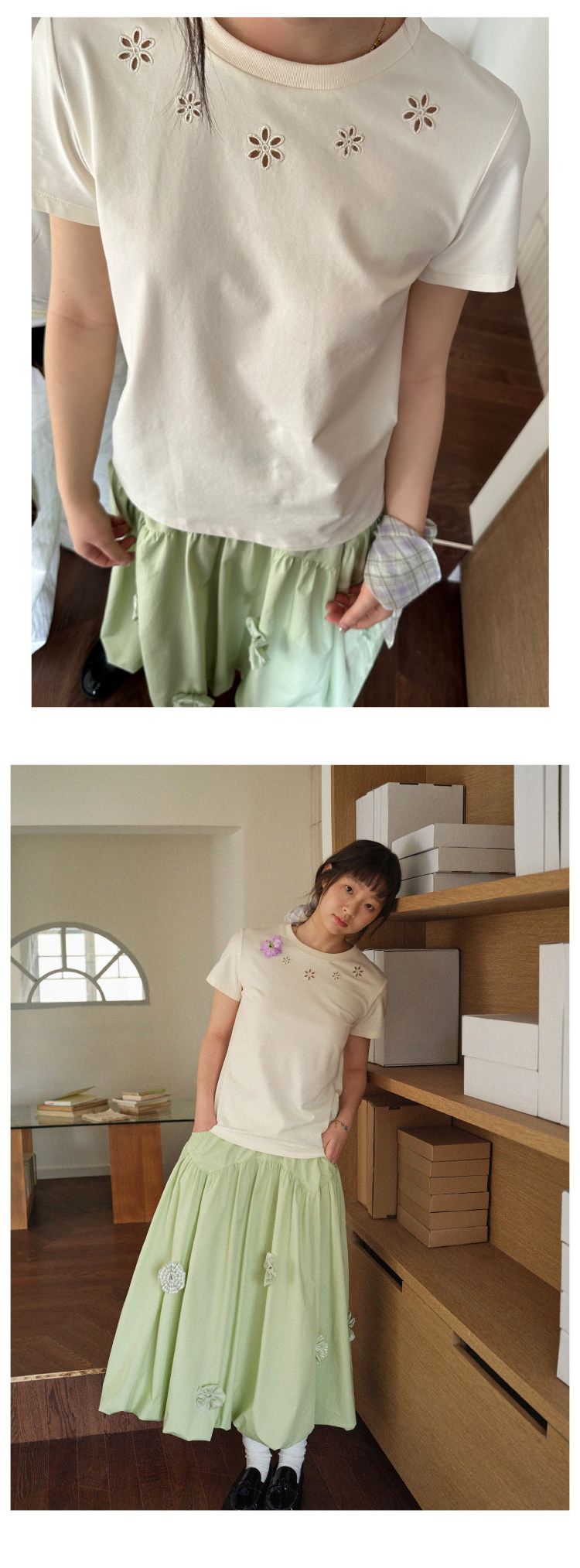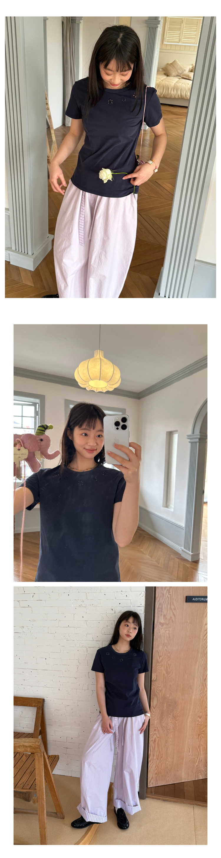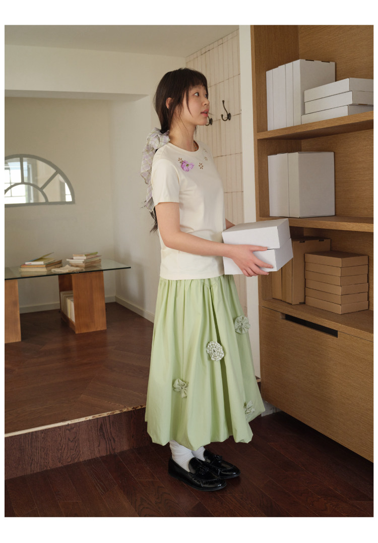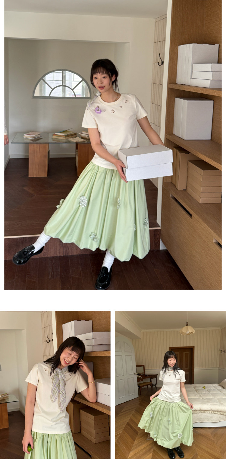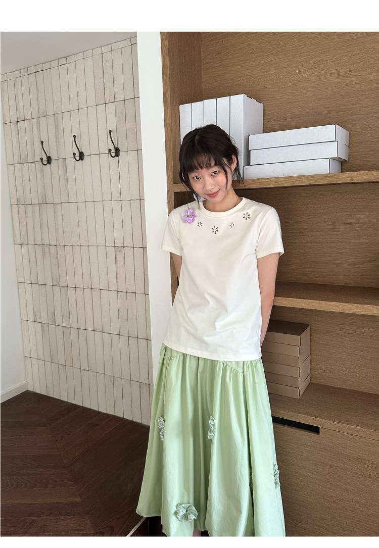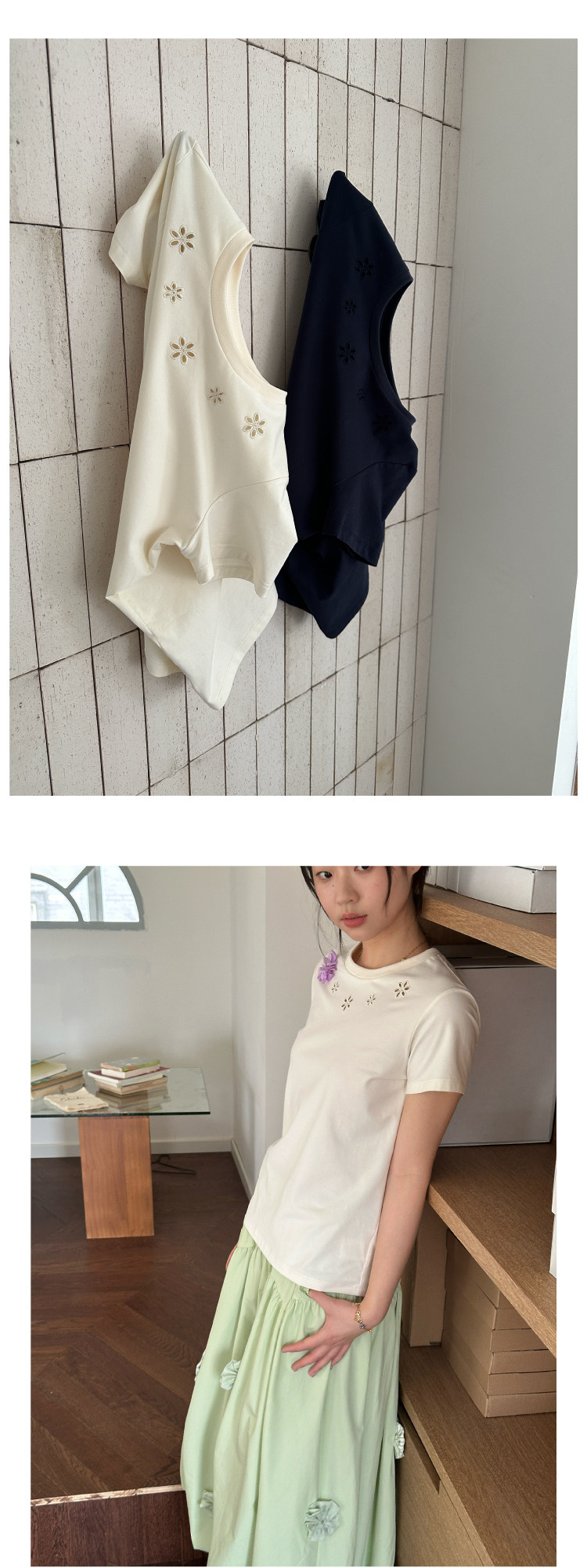 nothe Case布然/NC261823/「铃花木棉」暖糯棉感 花朵刺绣正肩显瘦 圆领T恤双色
