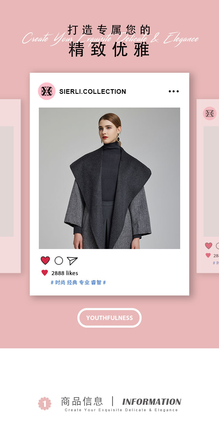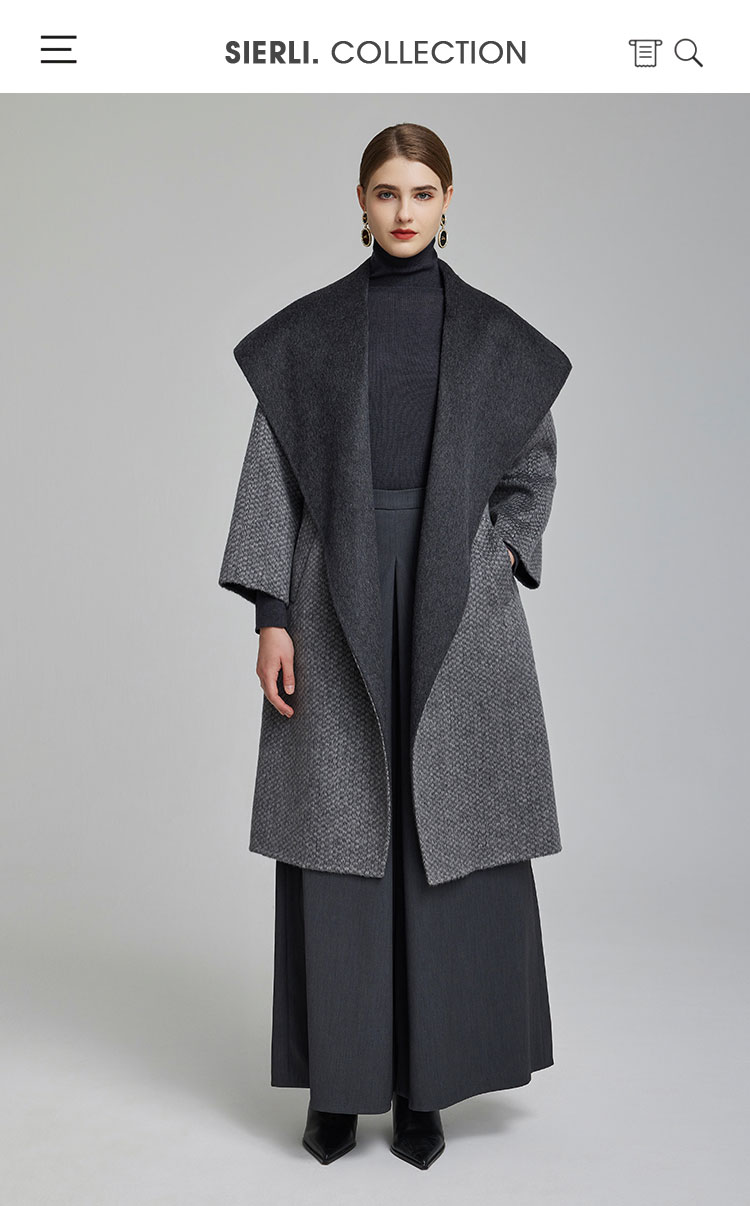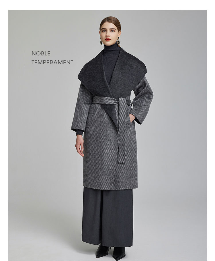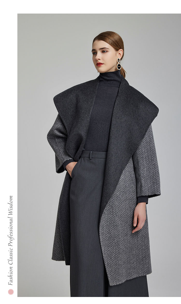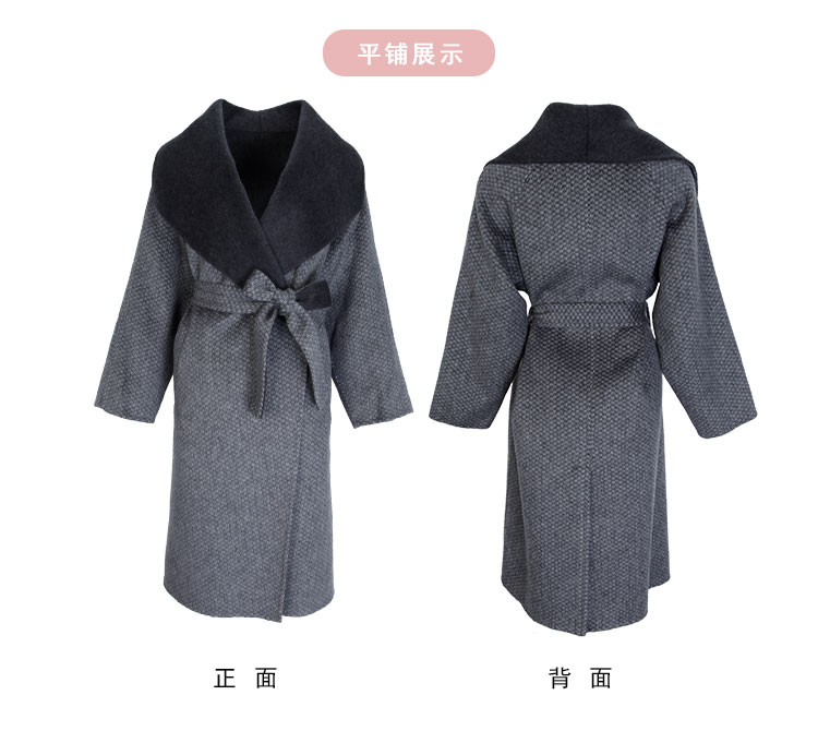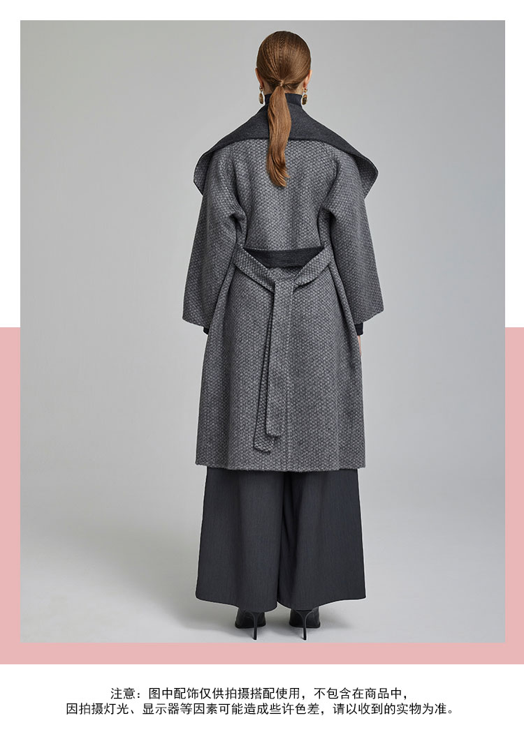 NH964斯尔丽23冬大翻领撞色法式浪漫宽松显瘦既视感波纹双面羊毛大衣