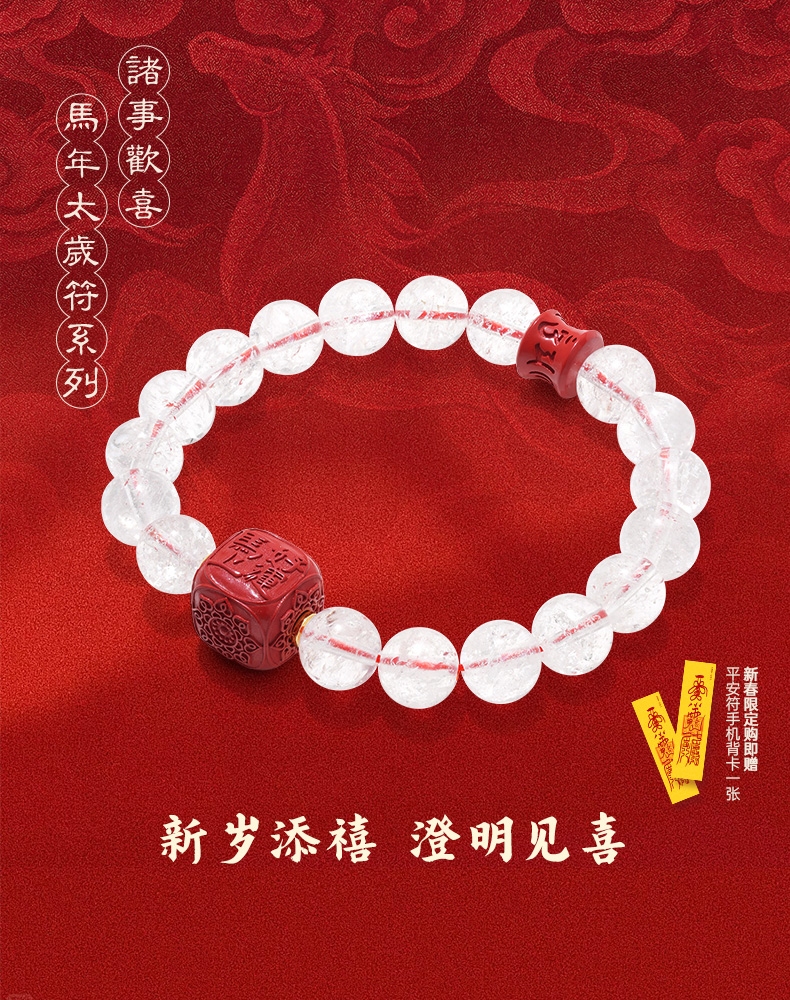 【马年太岁符 好运不打折】【限时特惠】钻石世家X心喜 诸事欢喜马年太岁符系列 马年太岁符白水晶手串 马年太岁符 六面吉文 朱砂骰子 全能白水晶【结缘定制、无质量问题不支持退换货】预计3-5天发货