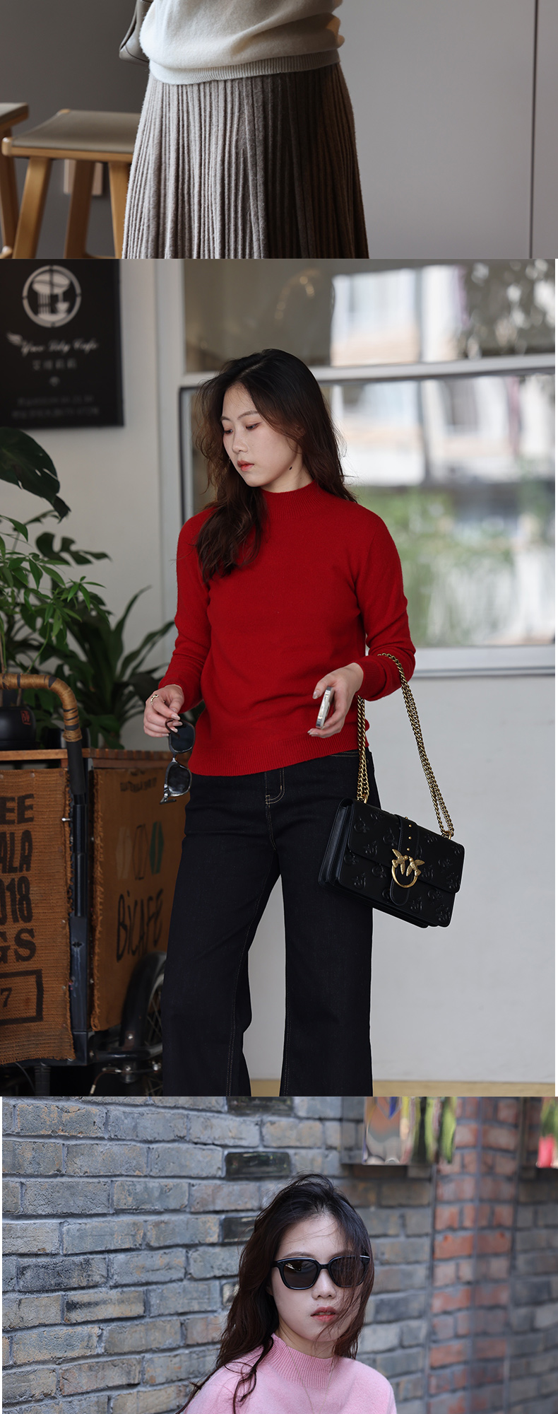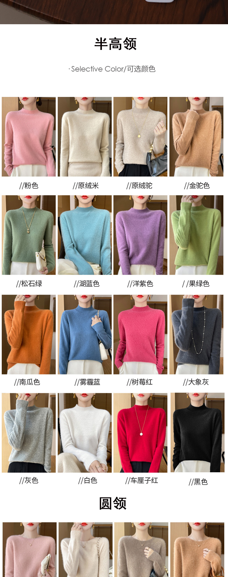 秋冬新款马卡龙色系100羊毛针织打底衫显瘦百搭羊毛衫 圆领、V领、半高领三款可选~