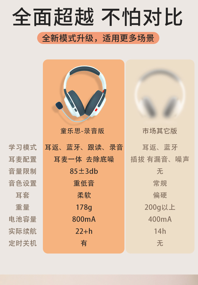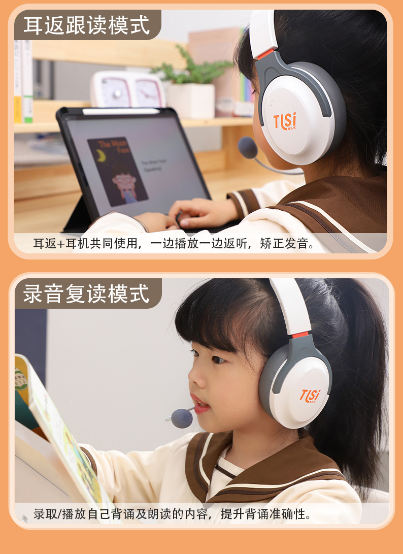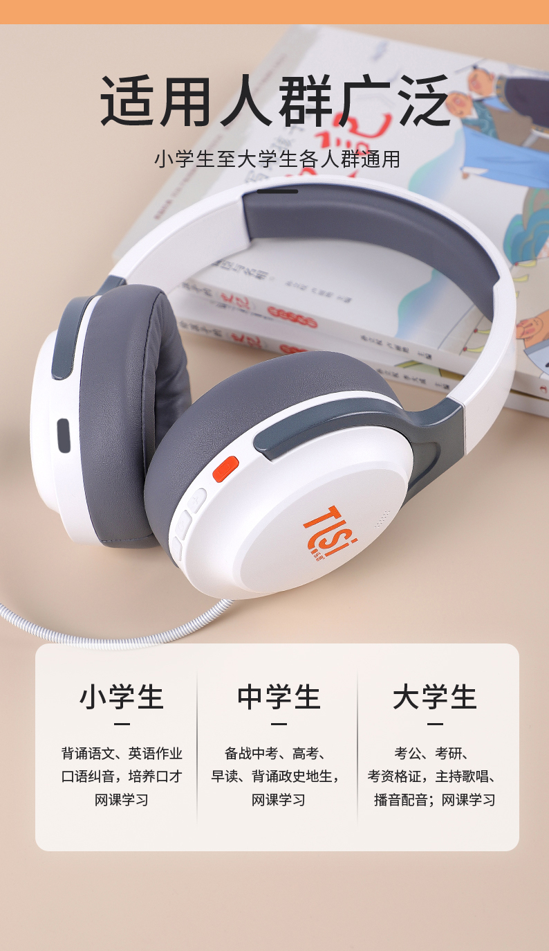 【童乐思诵读耳返(升级录音蓝牙款)】录音背书学习耳机/阅读、朗读、练习口语、背诵,提升效率,加强记忆/中小学生通用/网课图书馆地铁等各场景都可用