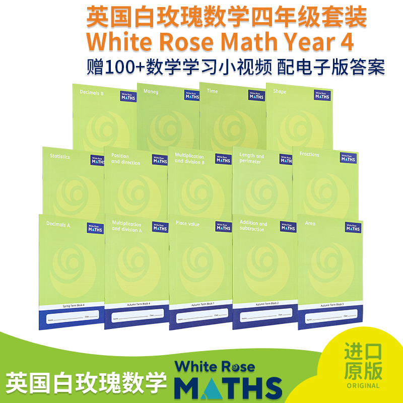预售 【中商原版】White Rose Math Year 4 英国白玫瑰数学教材练习册 小学四年级学年套装14册 秋4册+春4册+夏6册 加减乘除法运算
