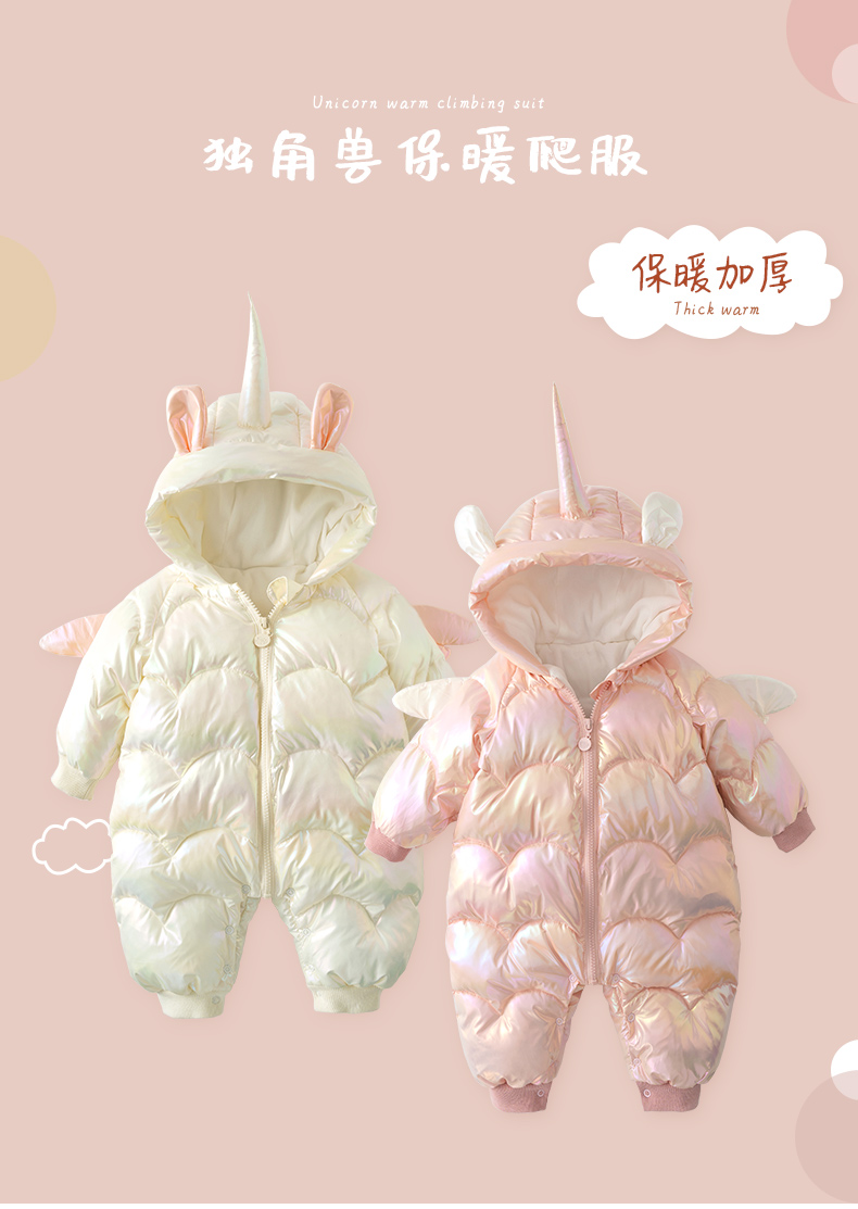 幸福满满modomoma新生儿用品婴儿衣服秋冬装女宝宝独角兽加厚保暖外出棉服