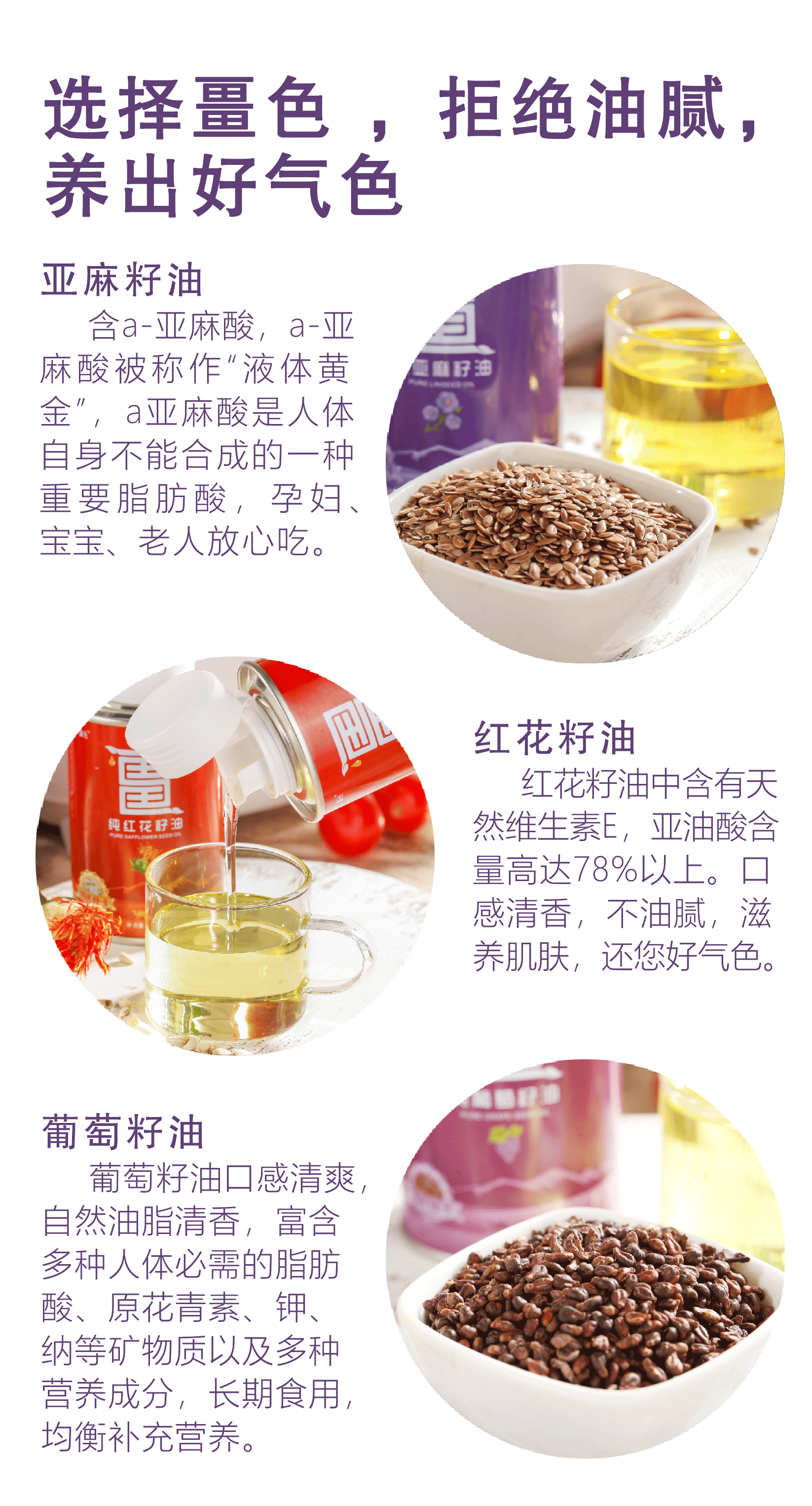 【节日礼盒】畺色 小罐礼盒(葡萄籽油100ml+亚麻籽油100ml+红花籽油100ml)300ml