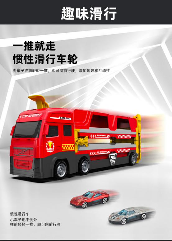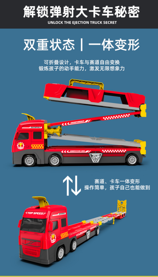 升级轨道长度,超长折叠变形,各不相同颜色的车型,激发好奇心,让宝宝自由探索,感受汽车魅力~