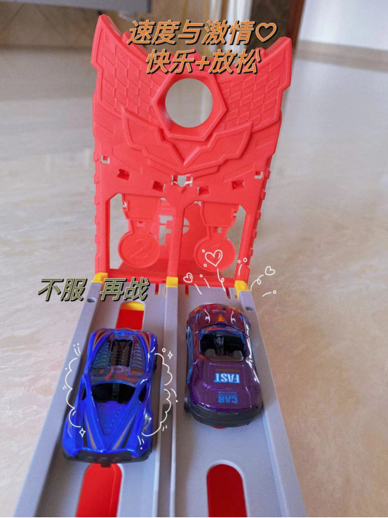 双轨道竞速,亲子互动,快来比比看谁的小车先跑到终点吧