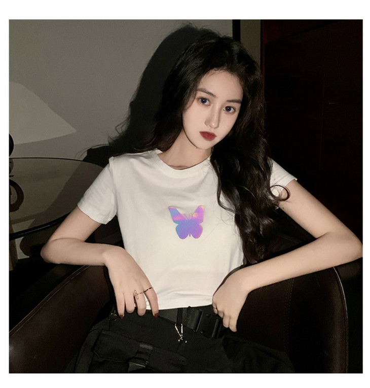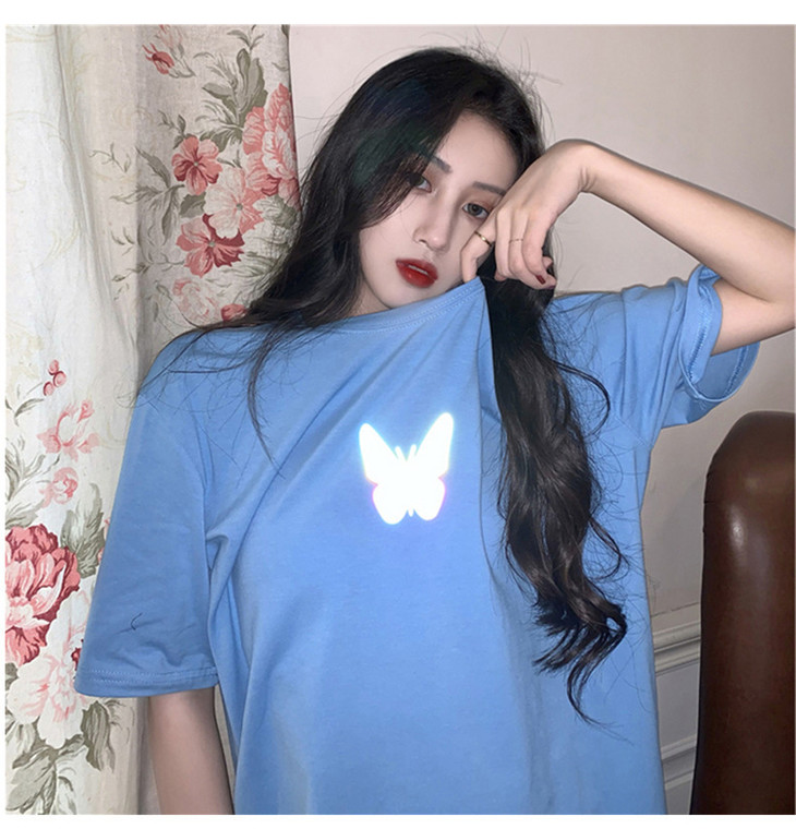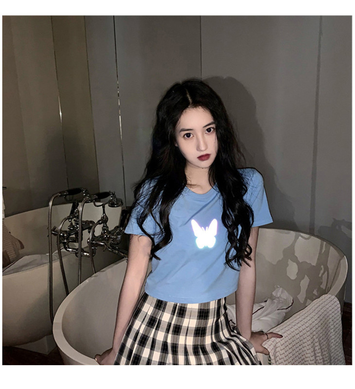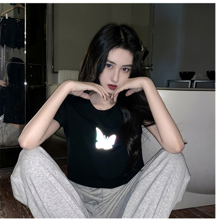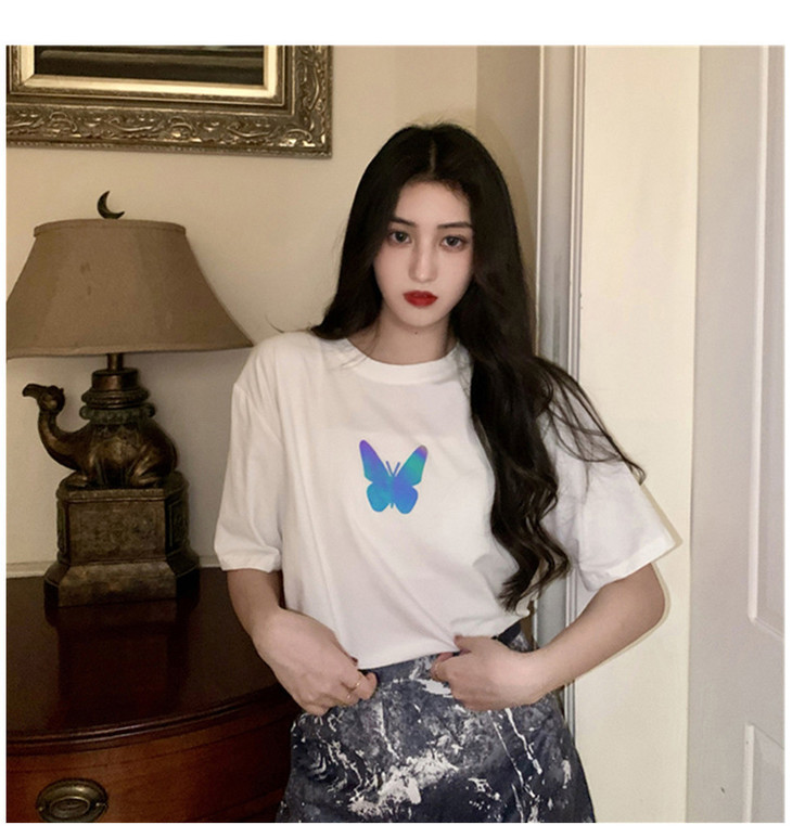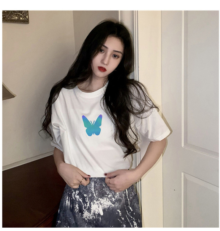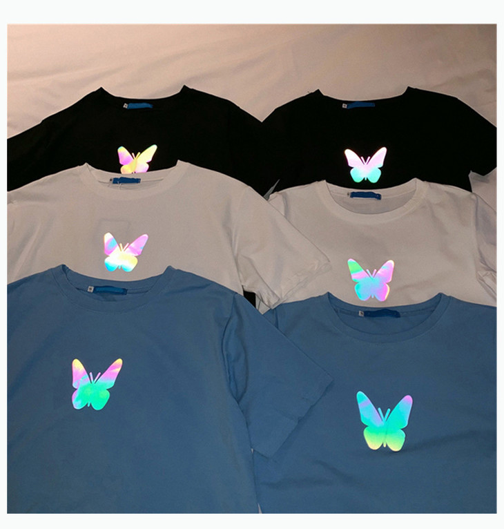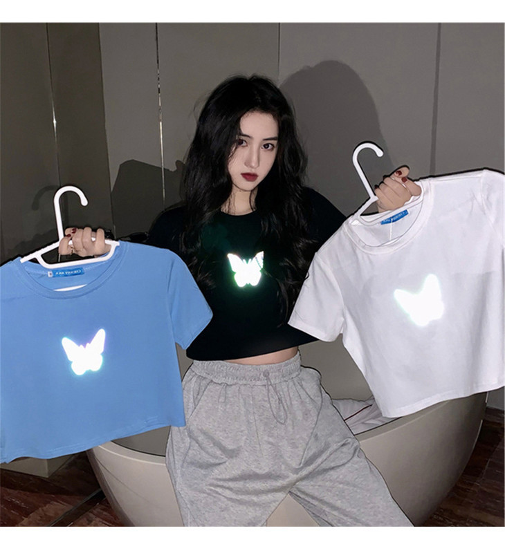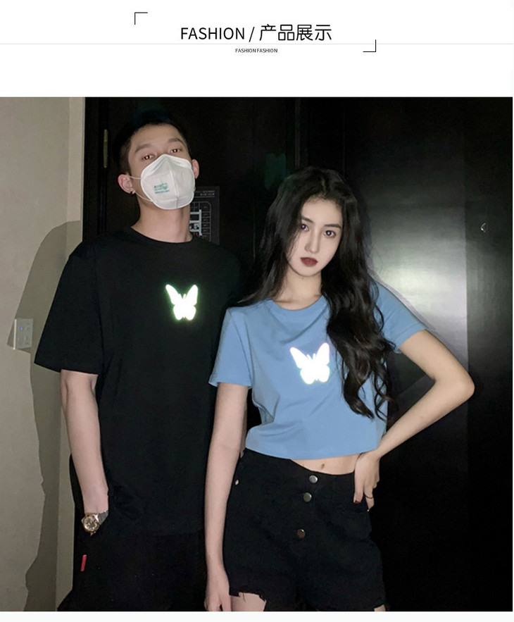 2021年夏季新款网红情侣装,反光蝴蝶短袖t恤女,ins超火短款学生上衣,简约时尚短袖T恤