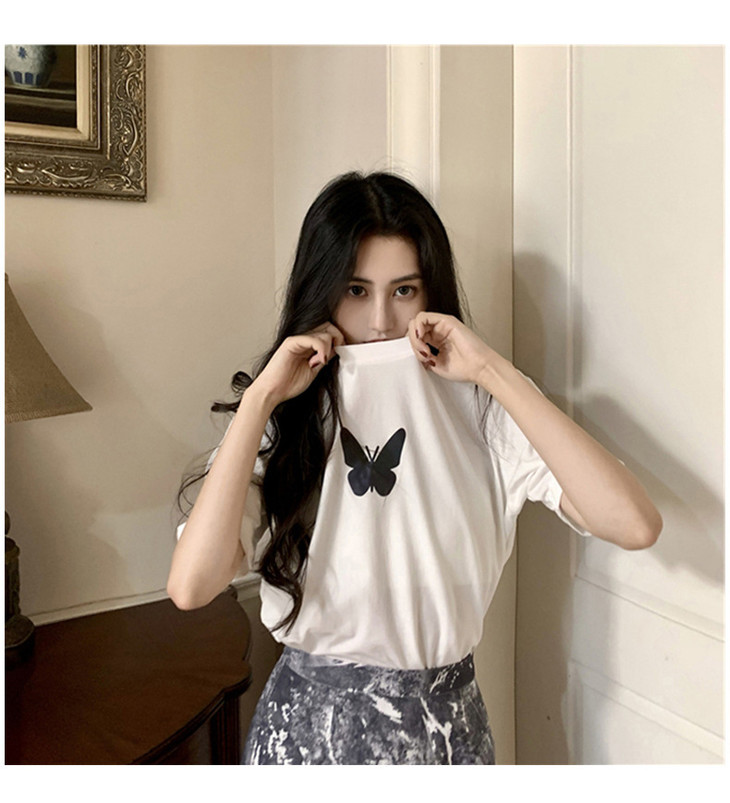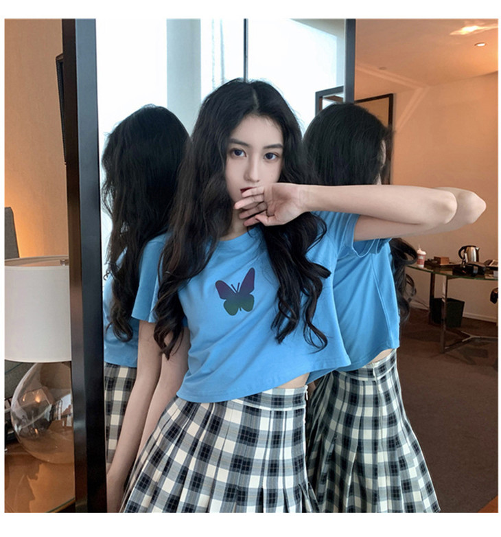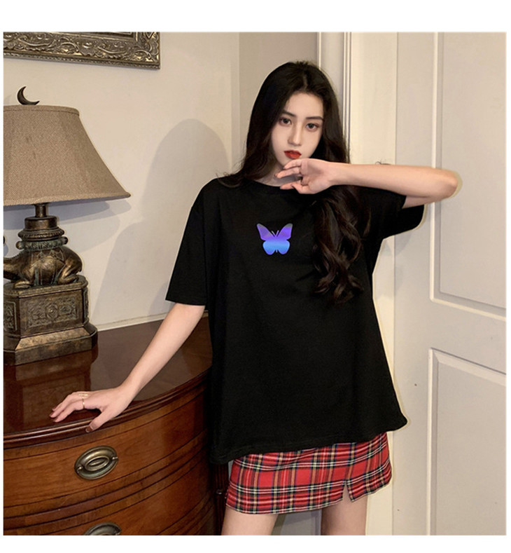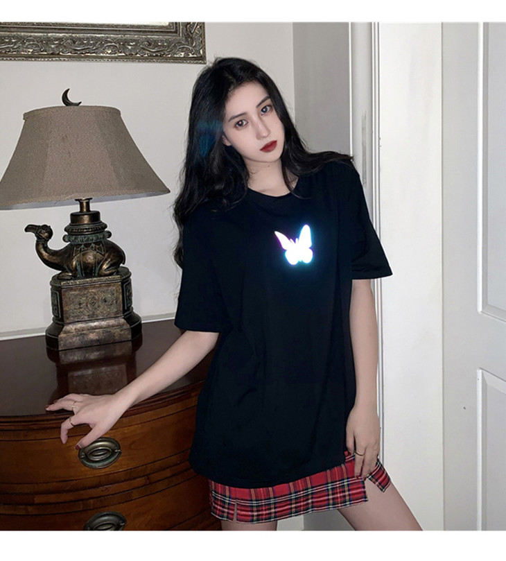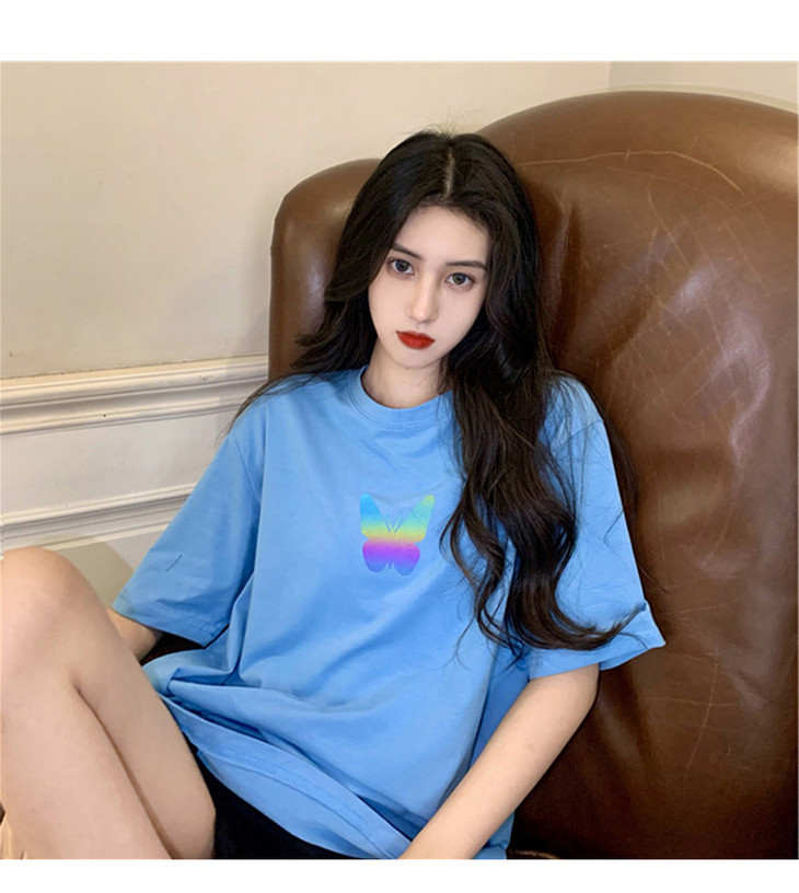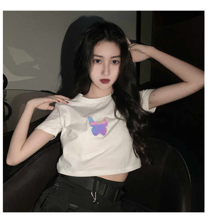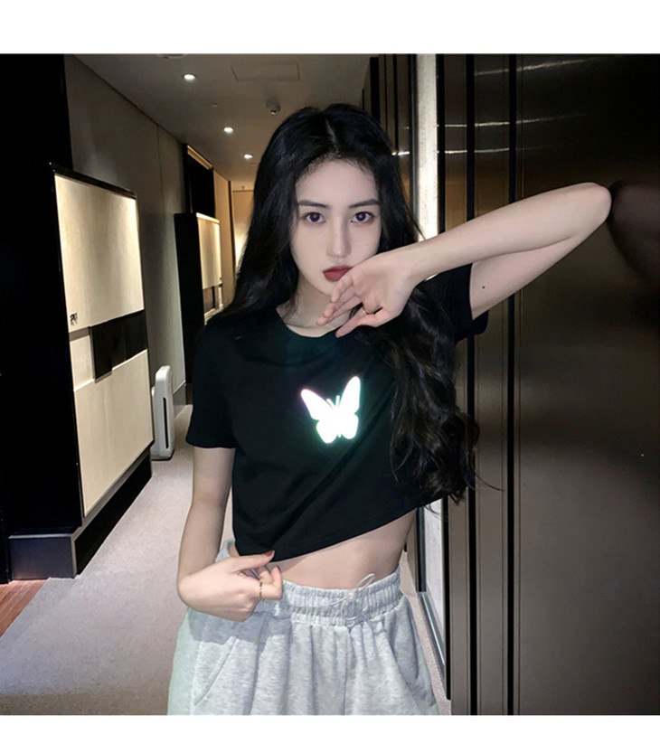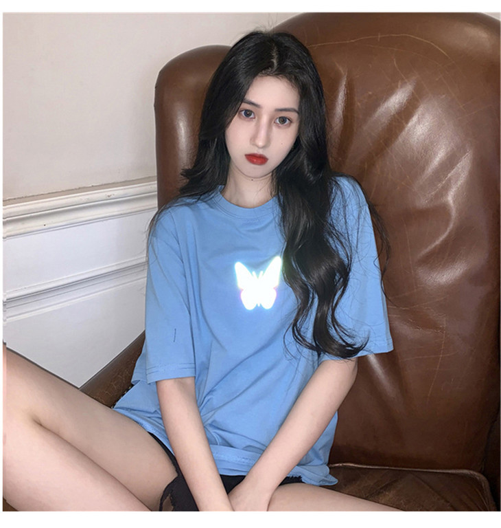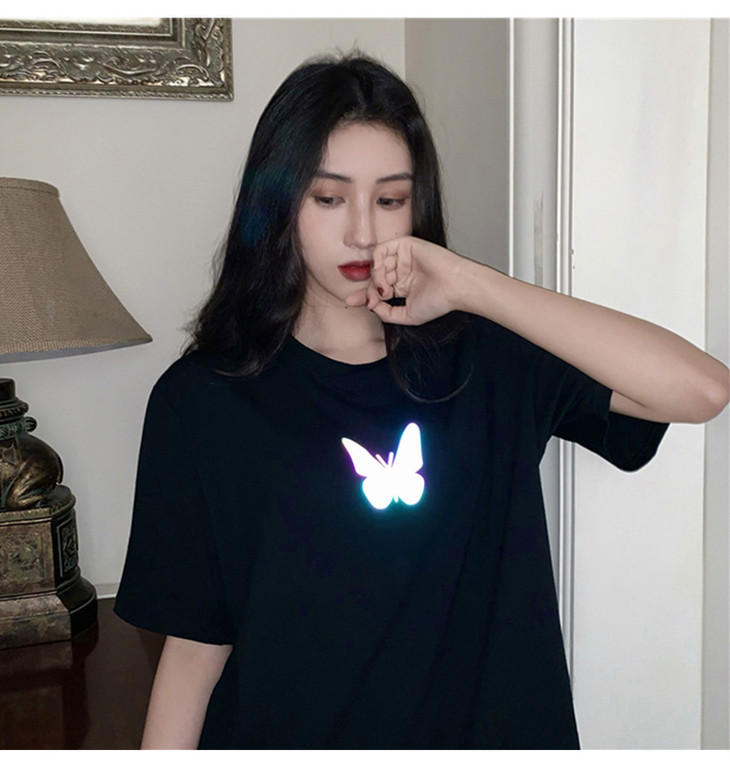 2021年夏季新款网红情侣装,反光蝴蝶短袖t恤女,ins超火短款学生上衣,简约时尚短袖T恤