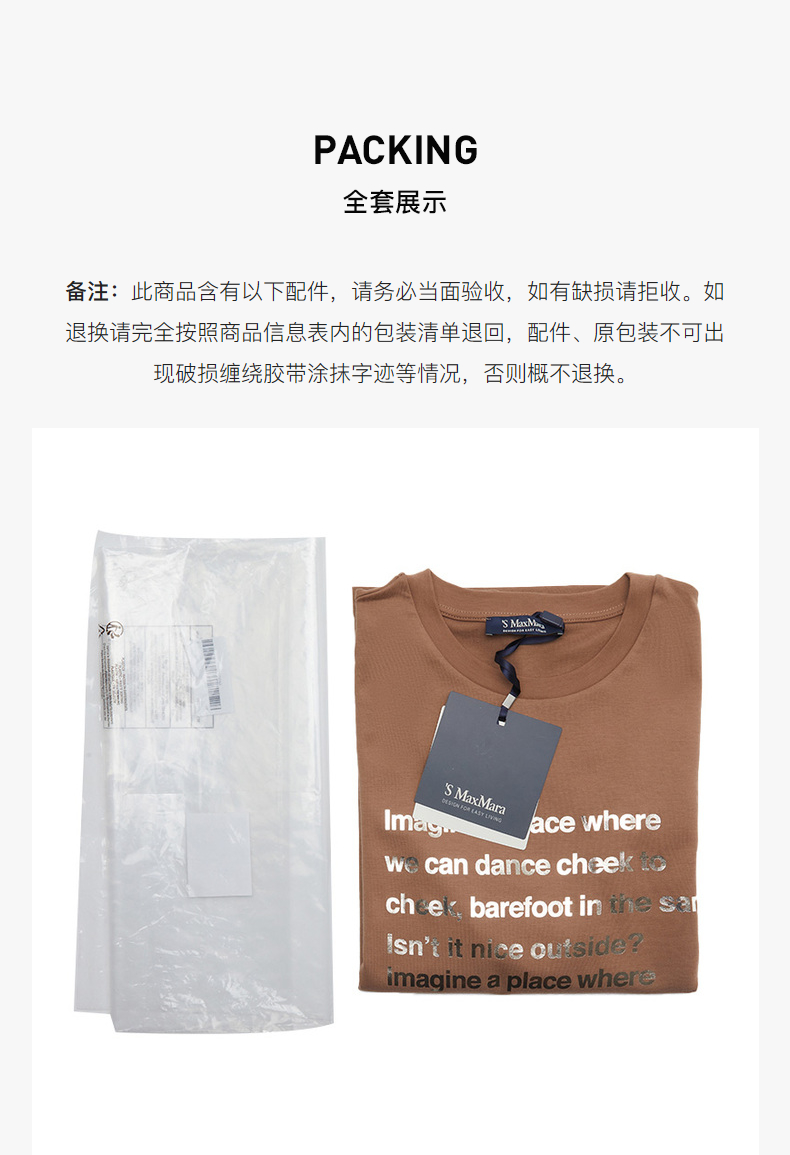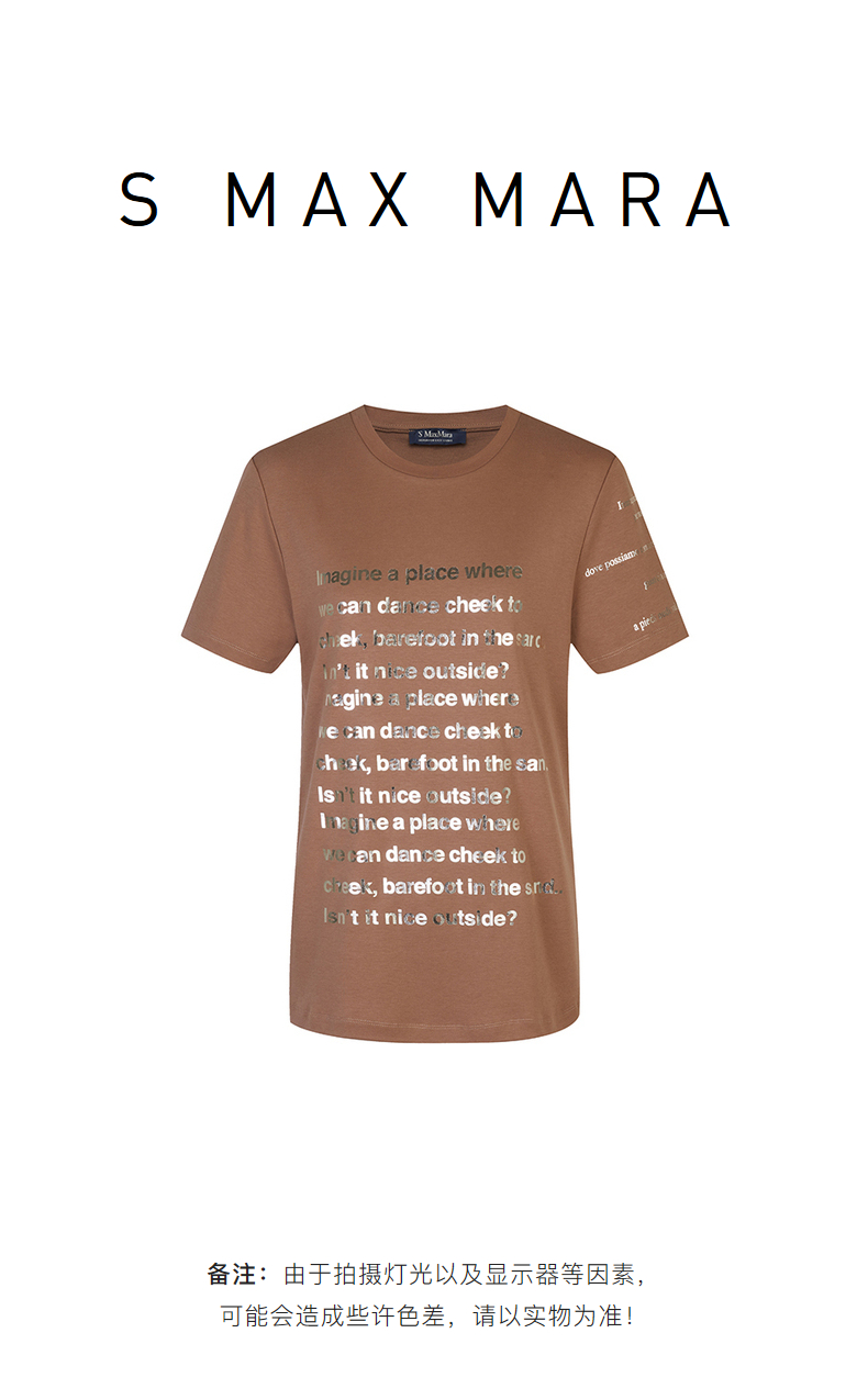 S MAXMARA 麦丝玛拉 女士棉质字母圆领短袖T恤 GIGA
