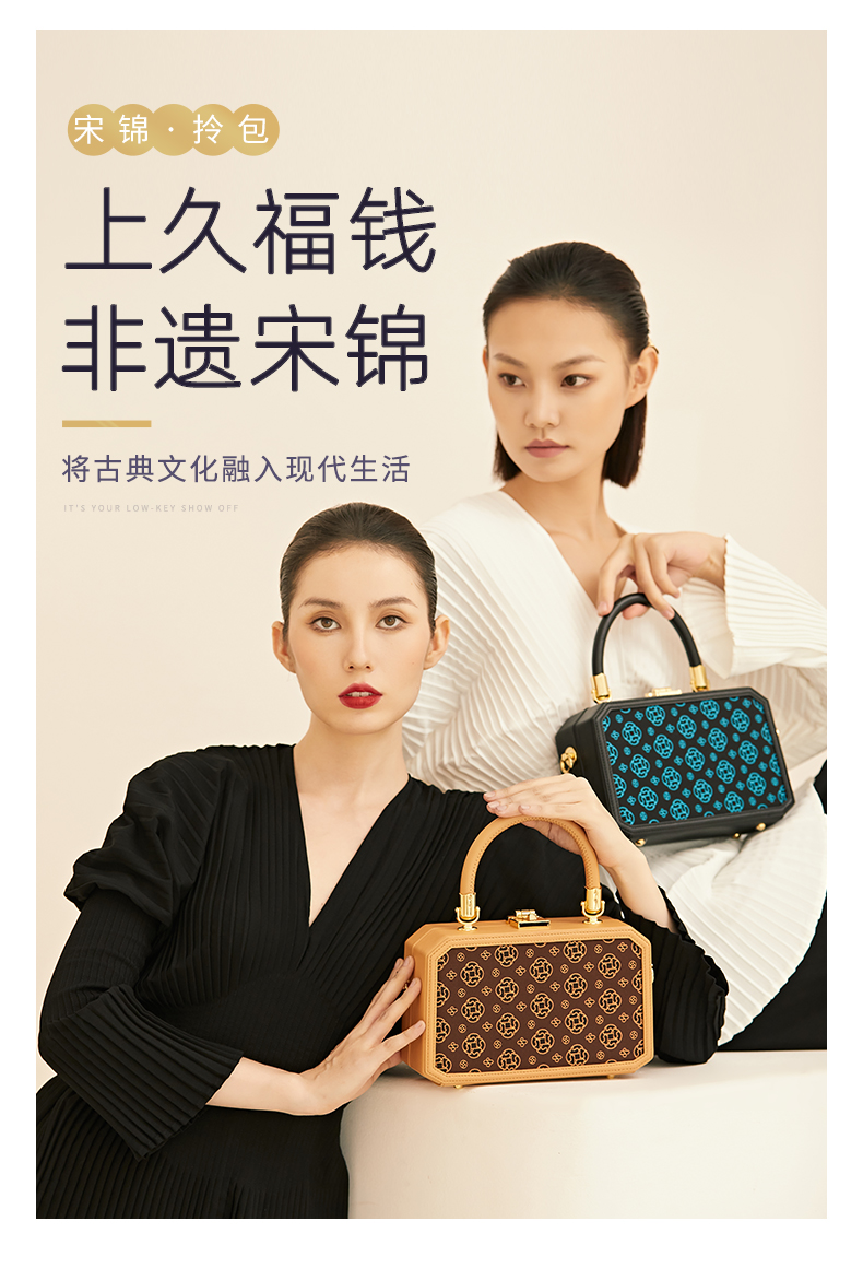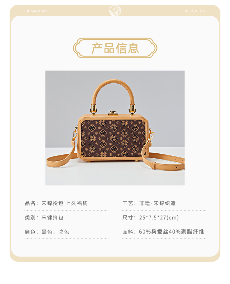 SAINTJOY/上久楷 宋锦女式拎包 上久福钱 BWS23A0301