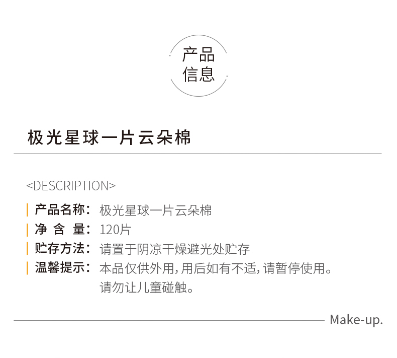 极光星球$一片云朵棉120片化妆棉卸妆棉超柔软 220325