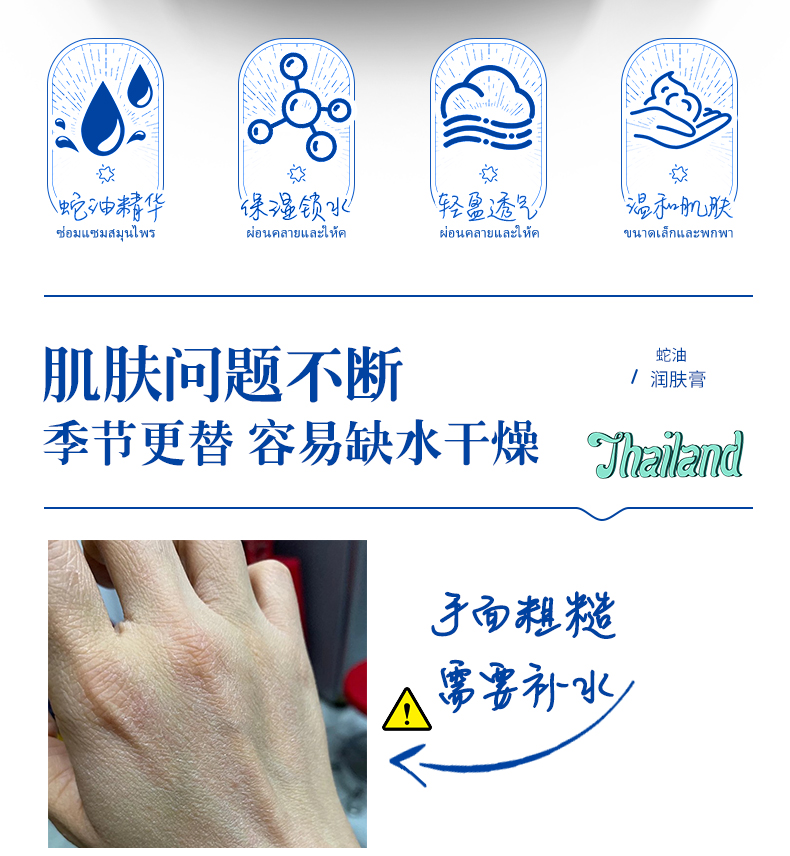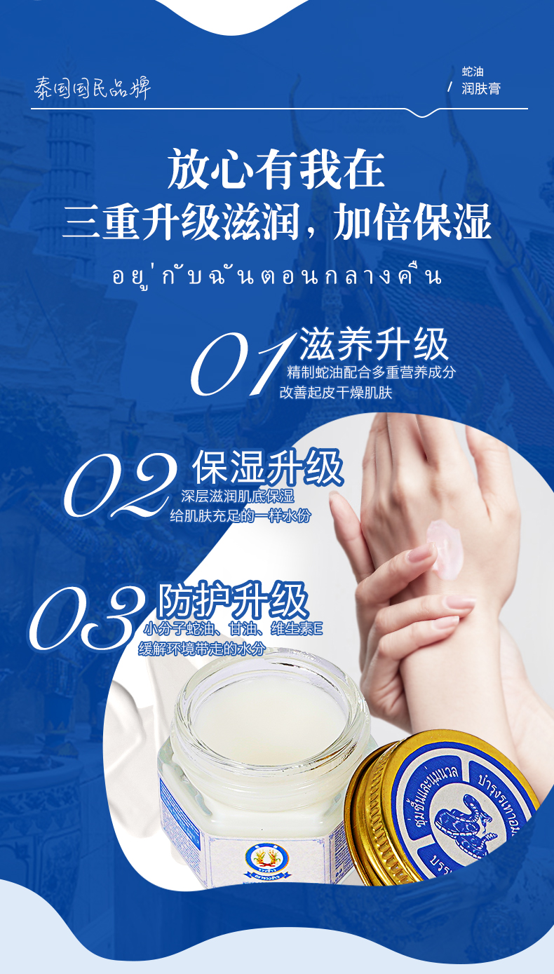 【三瓶装】泰国国民品牌 原装进口,小分子蛇油修复膏 防冻防裂手足霜 强韧肌肤修复干裂 深层滋养