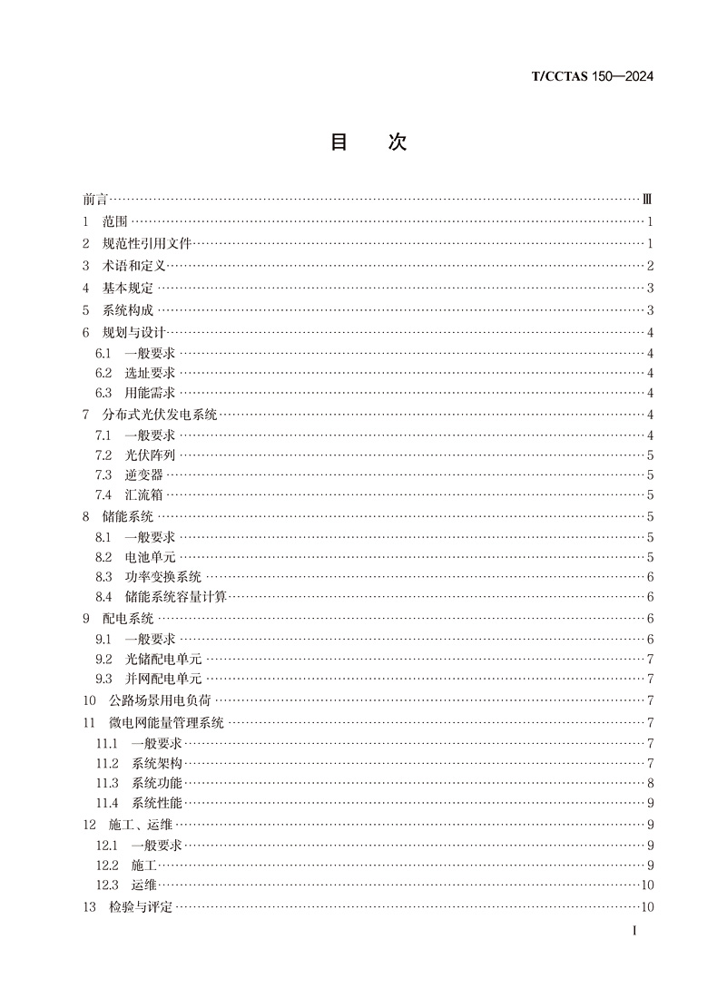 书名:公路光伏微电网技术规范T/CCTAS 150—2024