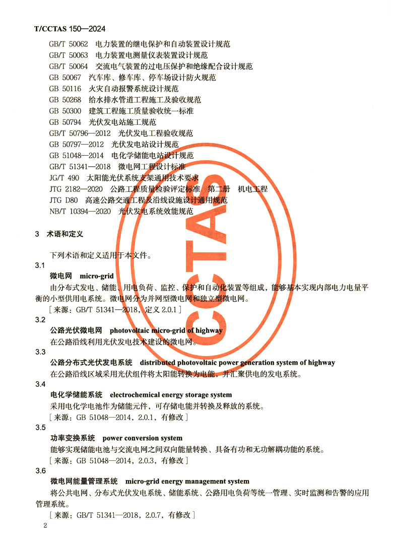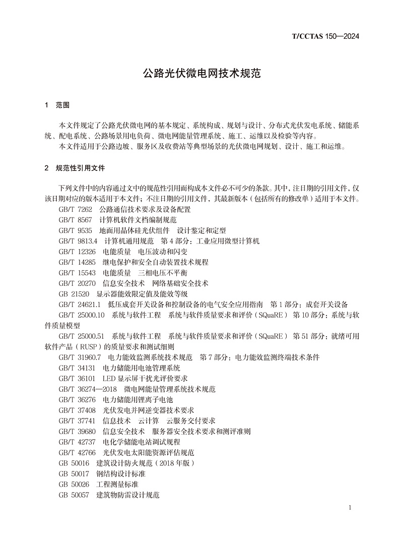 公路光伏微电网技术规范T/CCTAS 150—2024