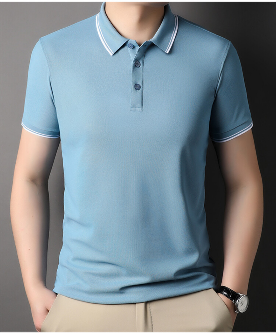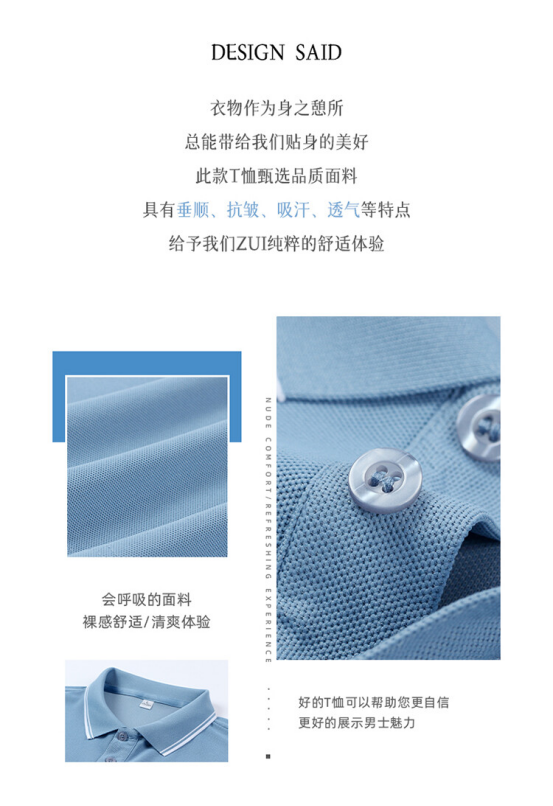 休闲POLO领口设计 简约休闲 修饰脸型更显品味 穿着舒适 不易变形 整体不显的沉闷 活力精神 展现绅士的风格与气度