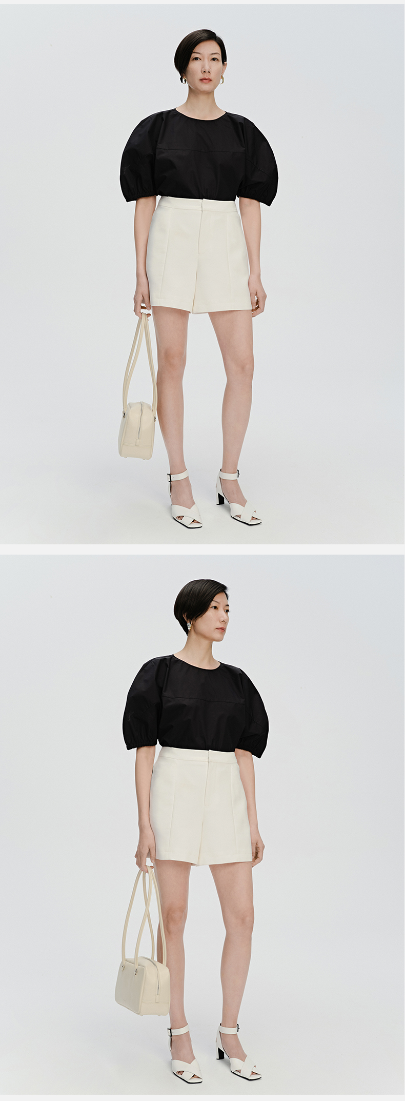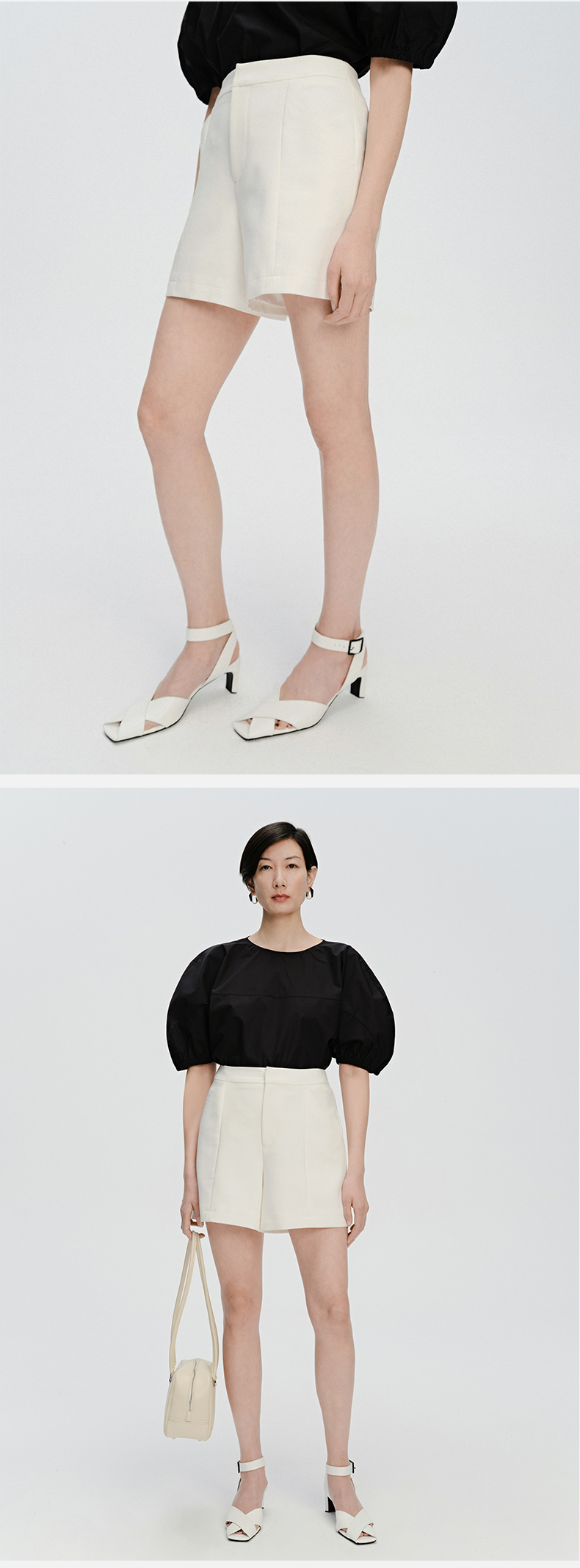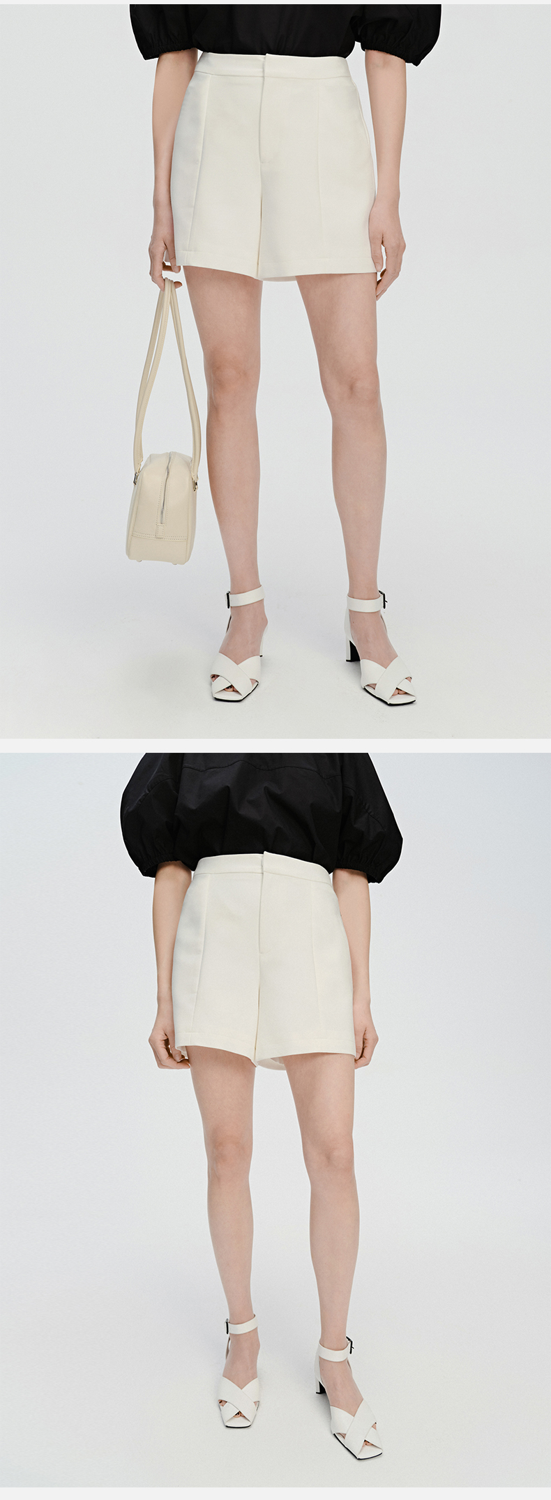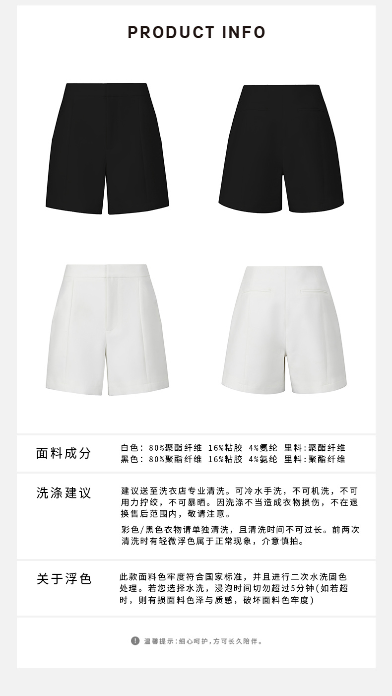HIDEMI 简约超显瘦提臀高腰短裤 黑色/白色