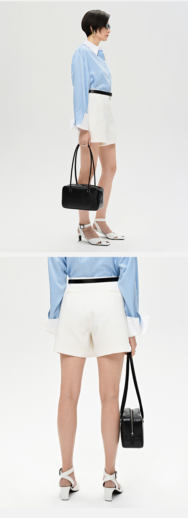 HIDEMI本期必入拉链褶皱廓形衬衫 黑色/白色