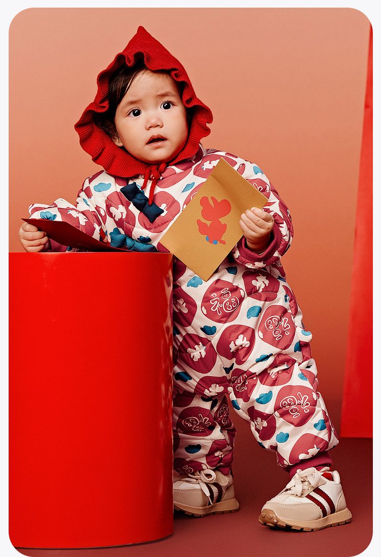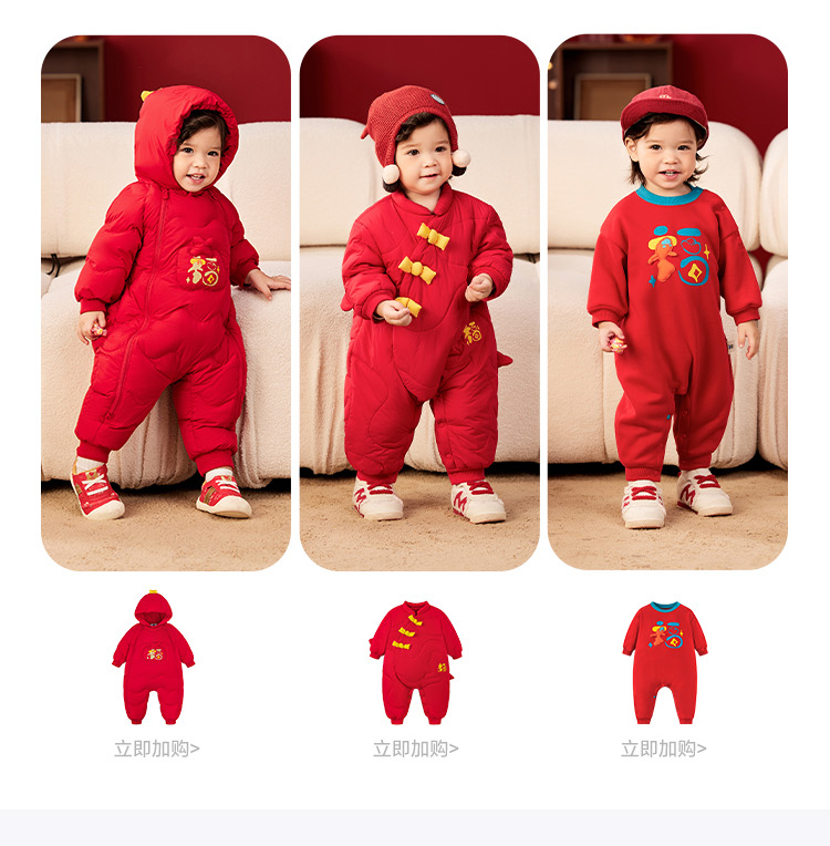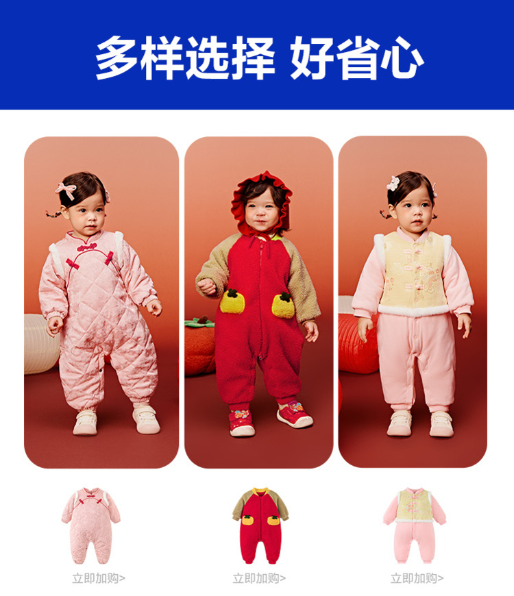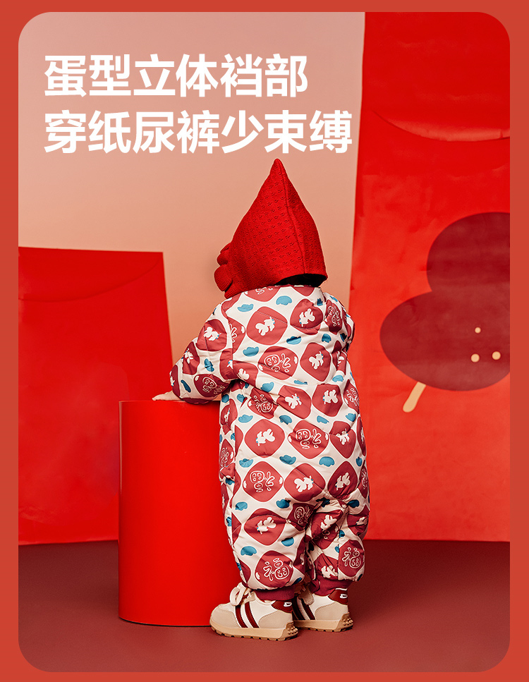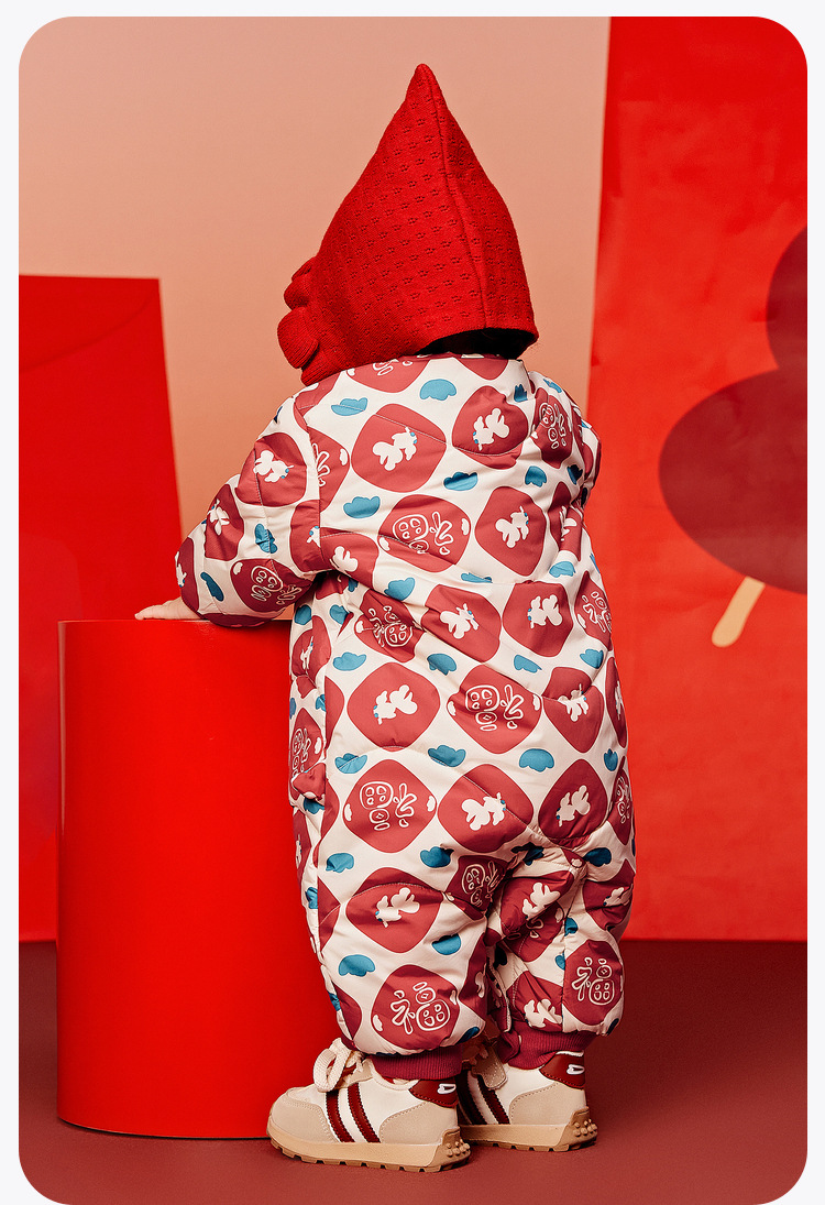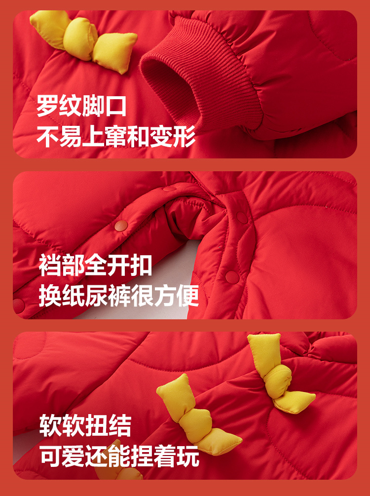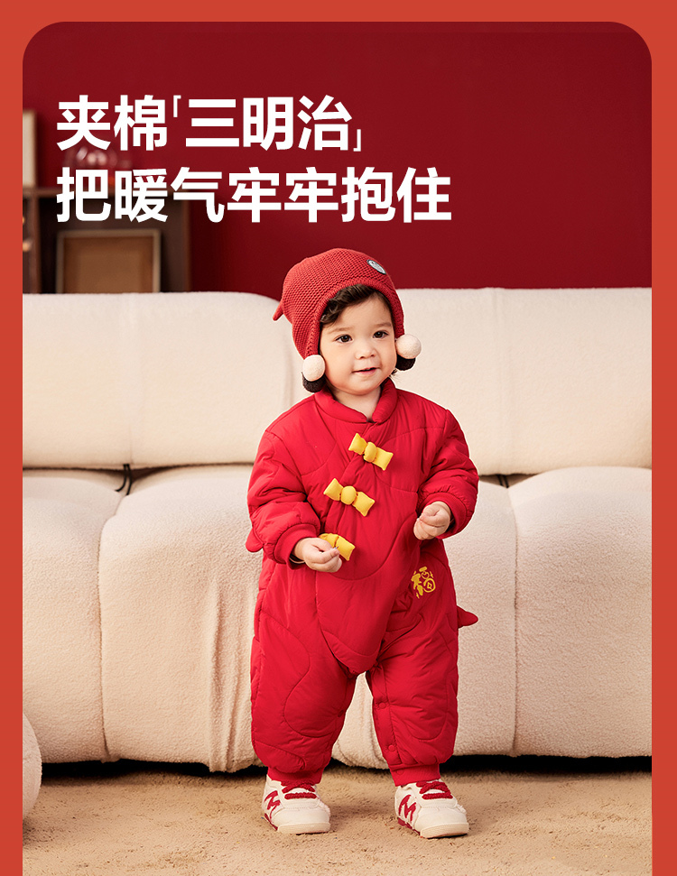 迷你巴拉男女童宝宝国风连体衣拜年服冬季夹棉保暖蛋型萌趣