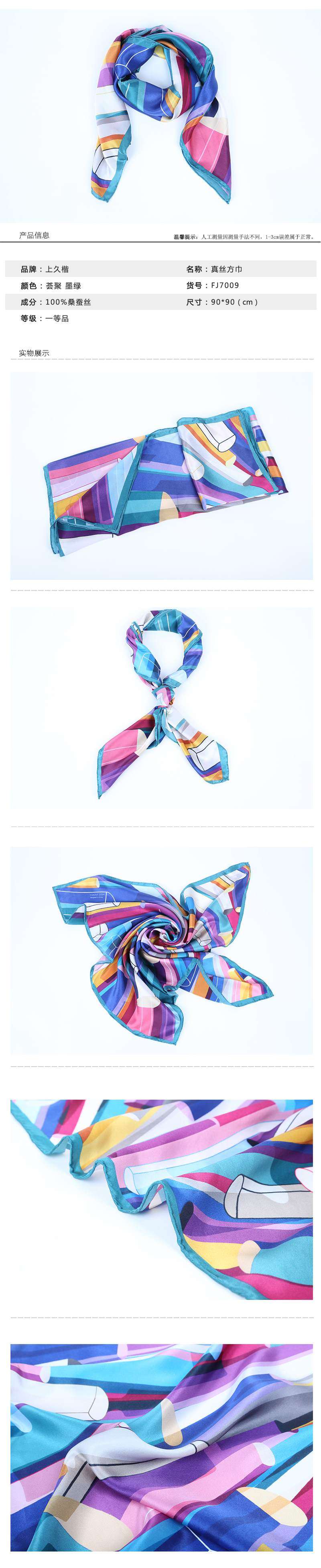SAINTJOY/上久楷 女式真丝方巾 秋蓝旷野 FJS22037