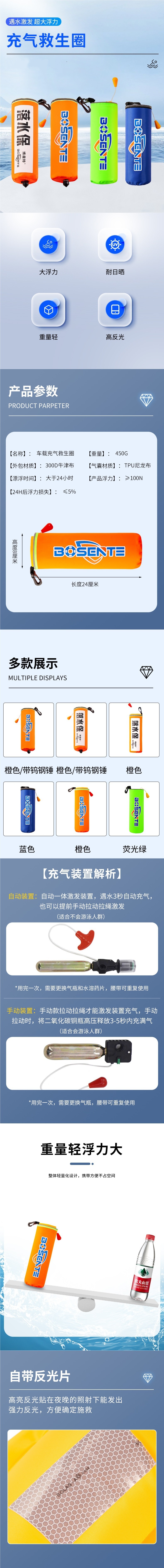 车载救生圈!【遇水激发,超大浮力!】落水保自动充气 带破窗锤器 汽车自救便携式 车用车载落水宝救生圈衣-QA