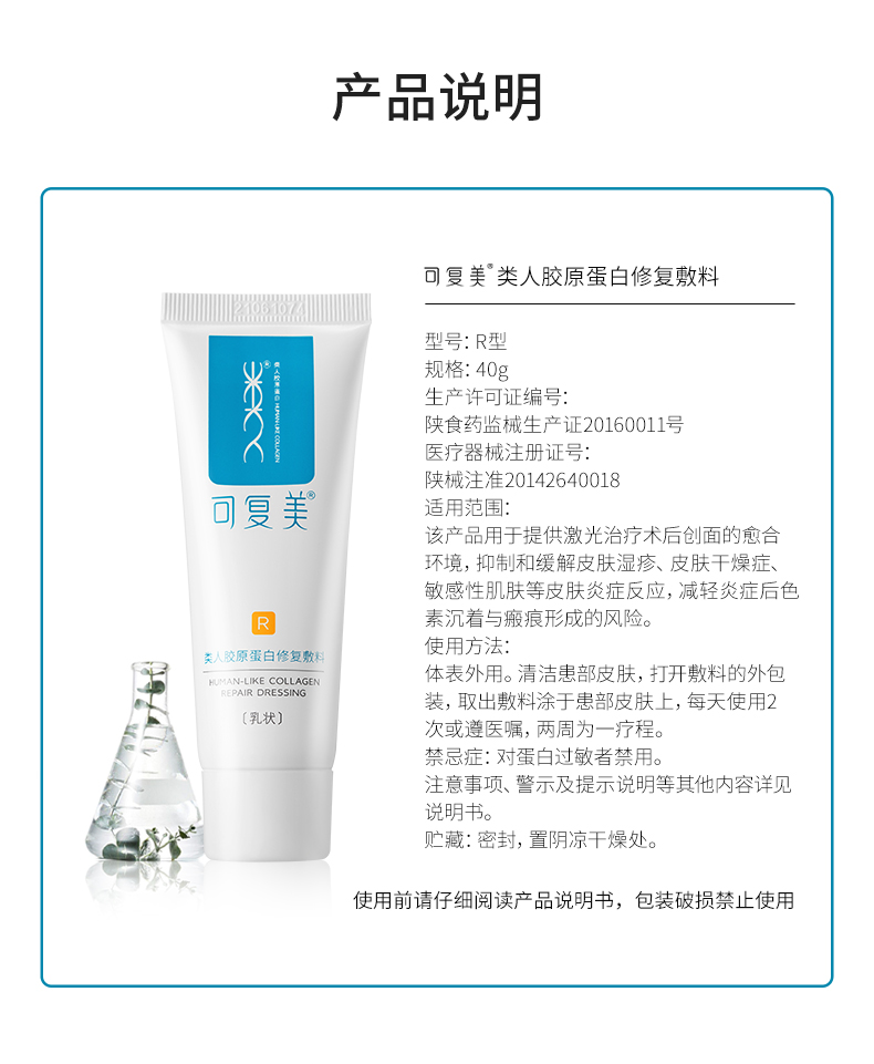 可复美重组胶原蛋白修复敷料R型40g/支(乳状)【械】