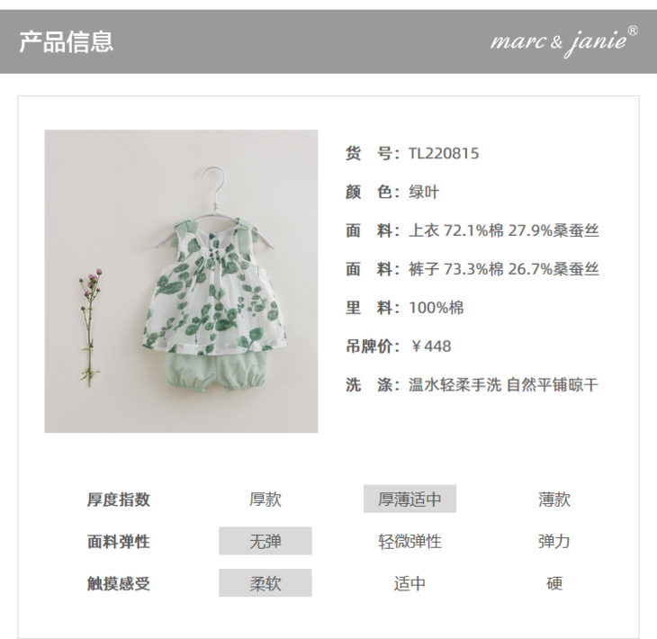 【马克珍妮 芦芙系列】夏装 女童棉真丝吊带套装231103