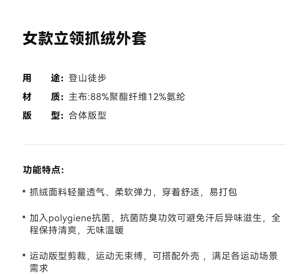 KAILAS凯乐石 户外运动 女款立领开胸抓绒 KG2437206【Z】