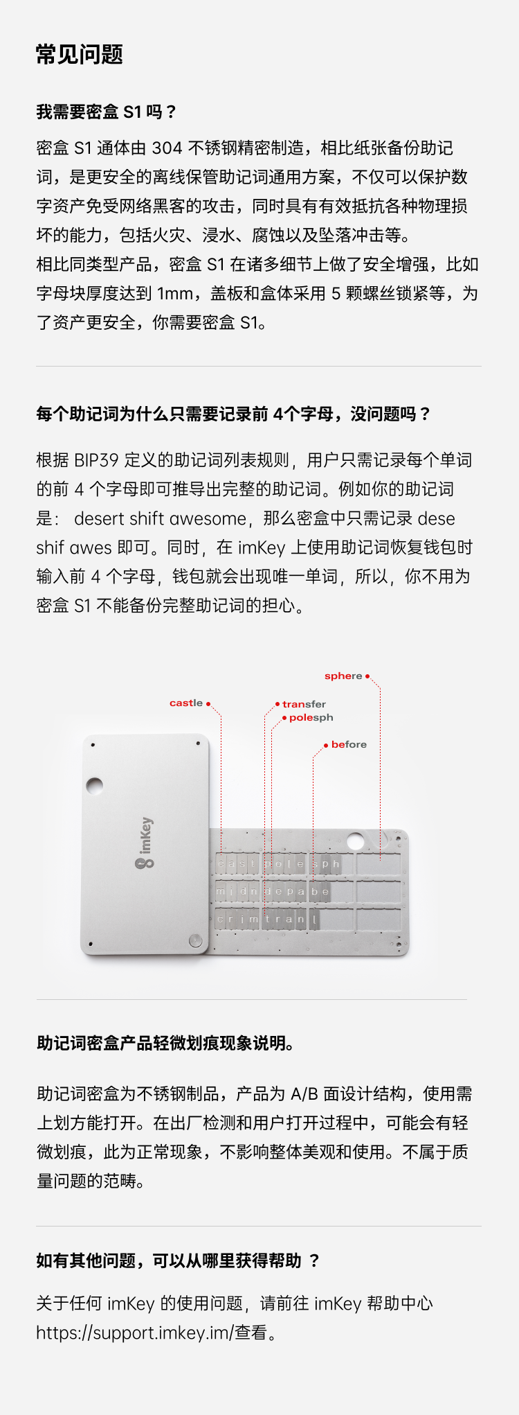 【钱包必备】imKey助记词钢板密盒S1,比纸张更可靠