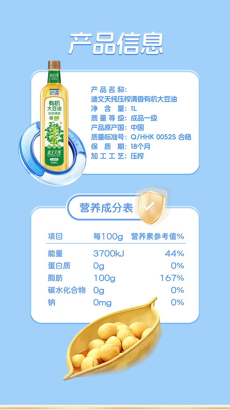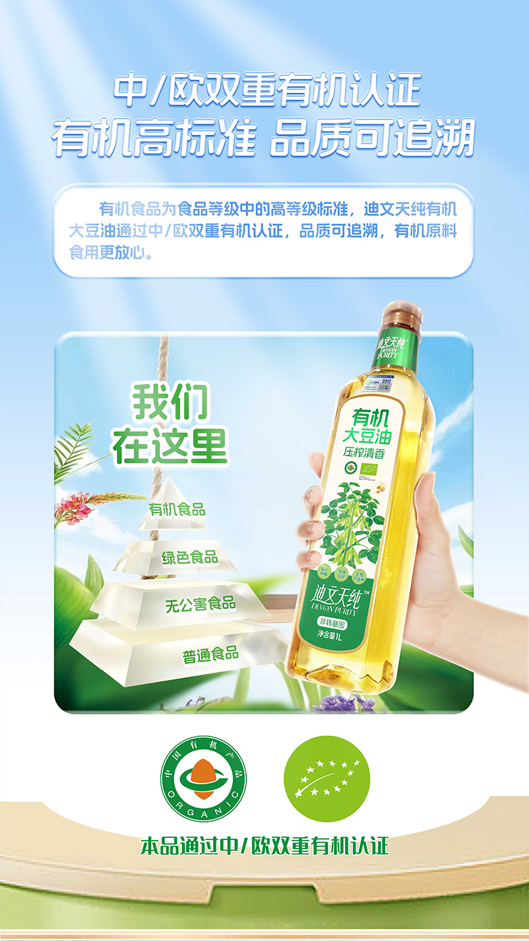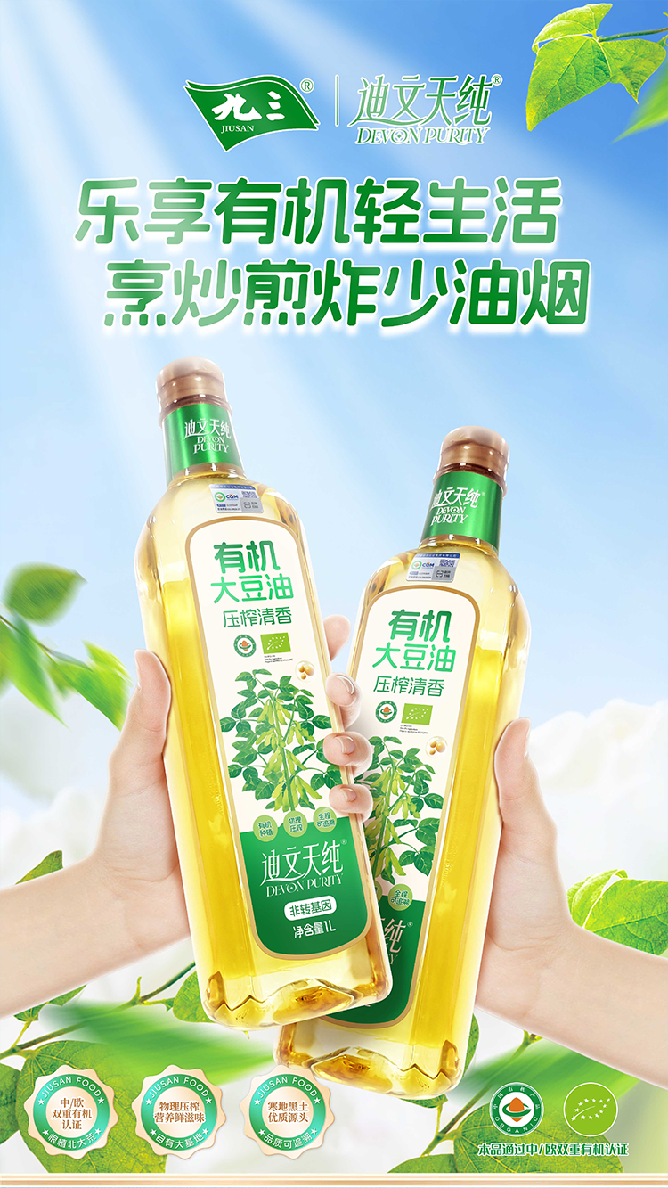 【中国农垦】九三迪文天纯压榨清香有机大豆油1L