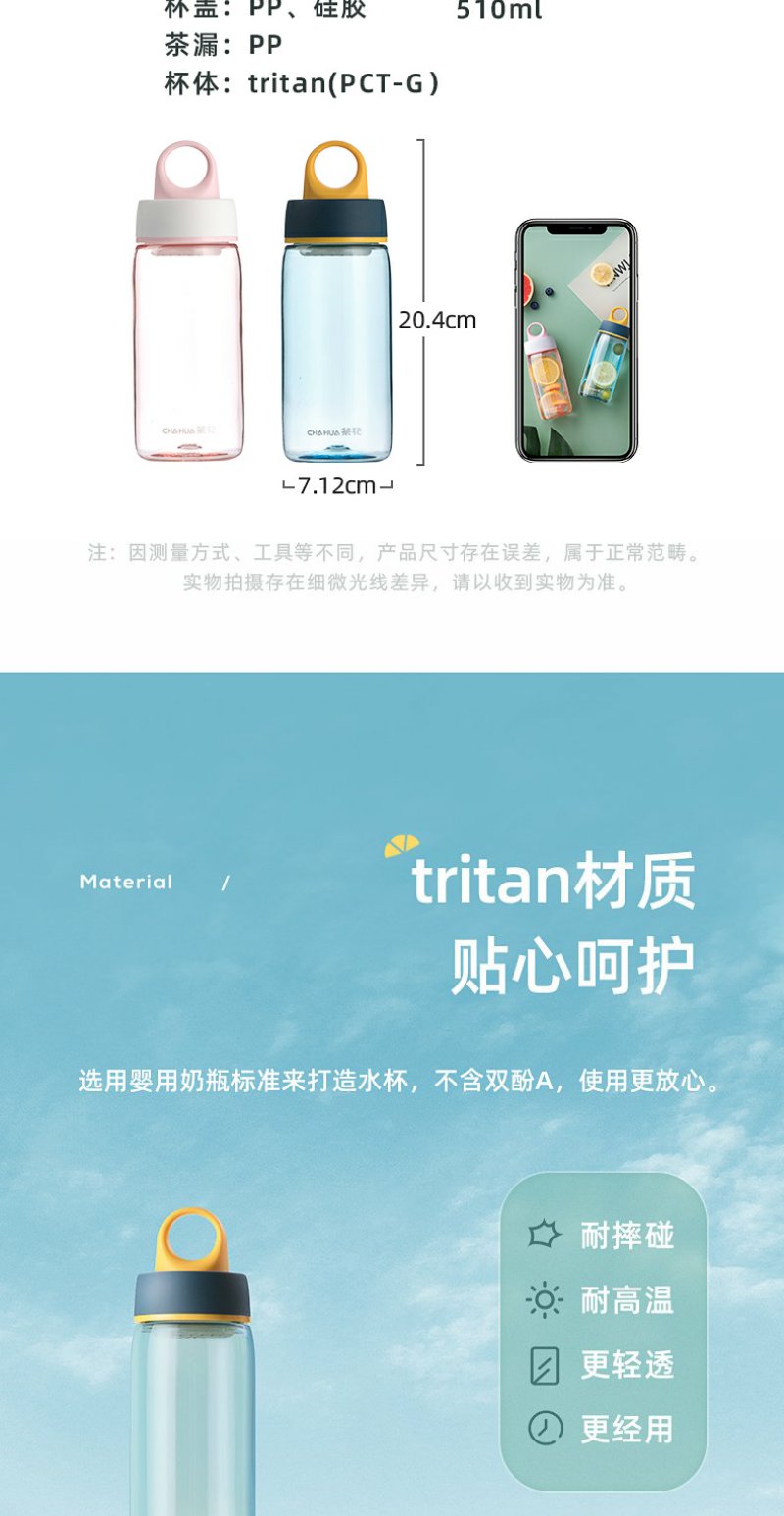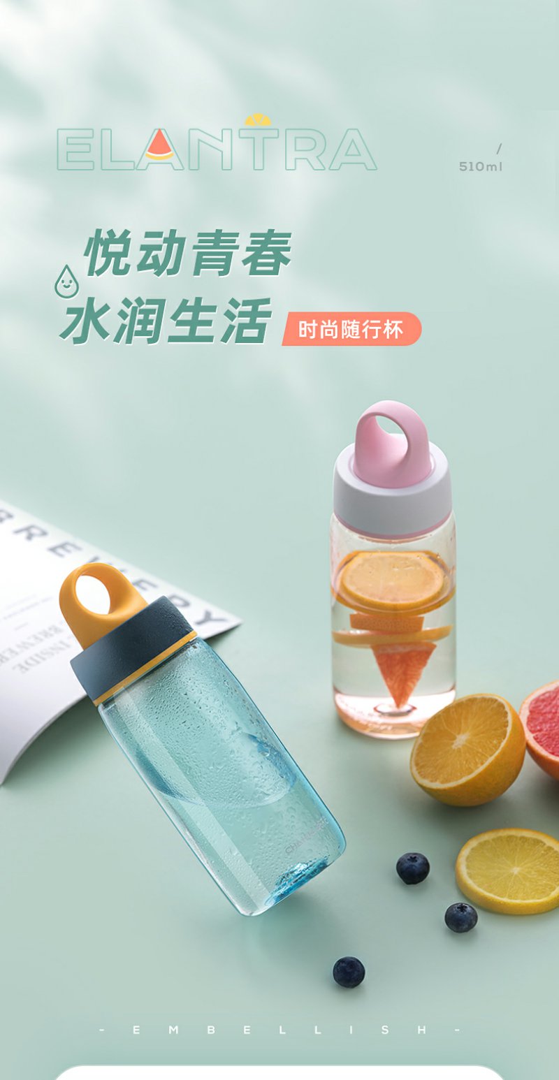 【茶花】凌动时尚随行杯便携水杯510ML tritan