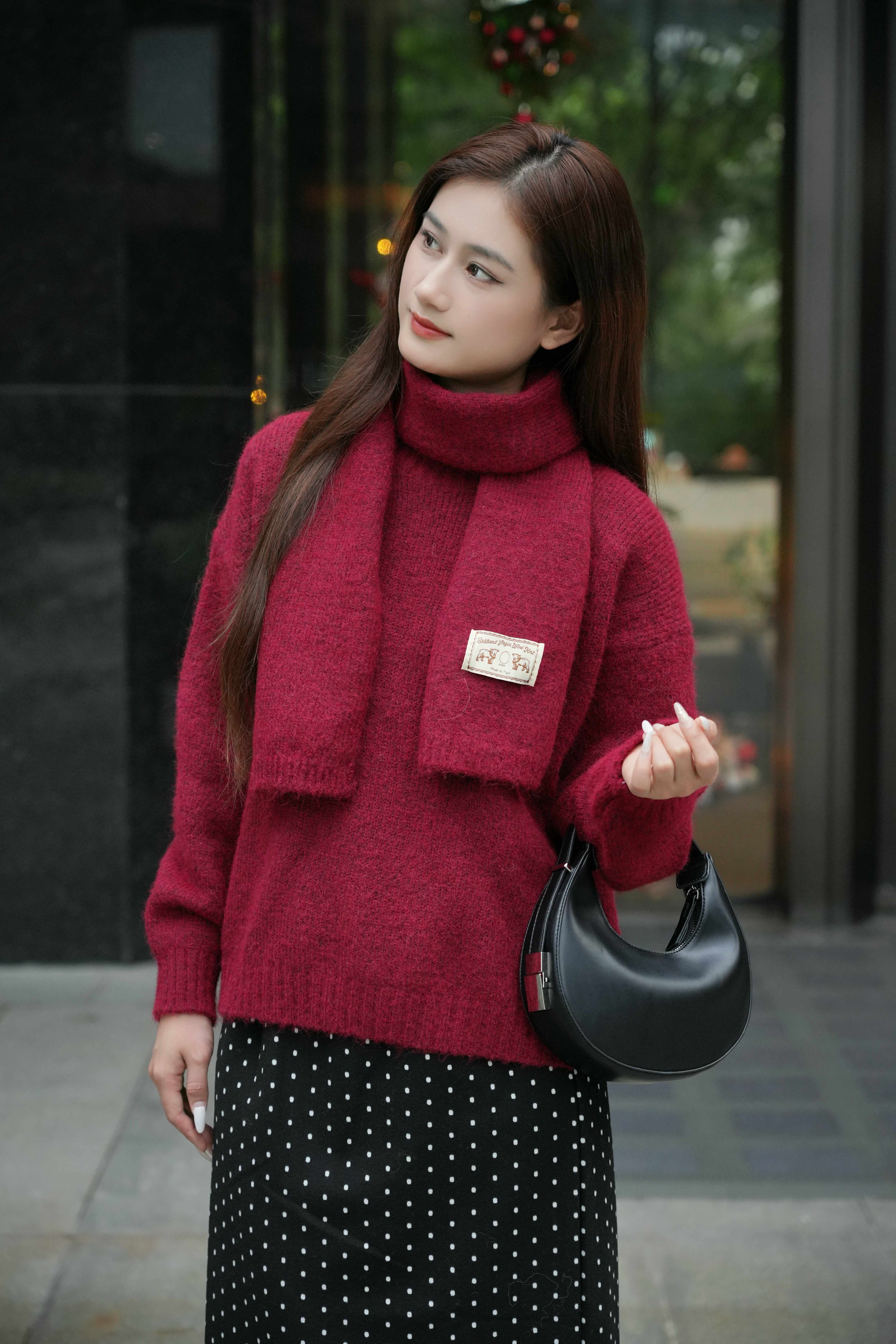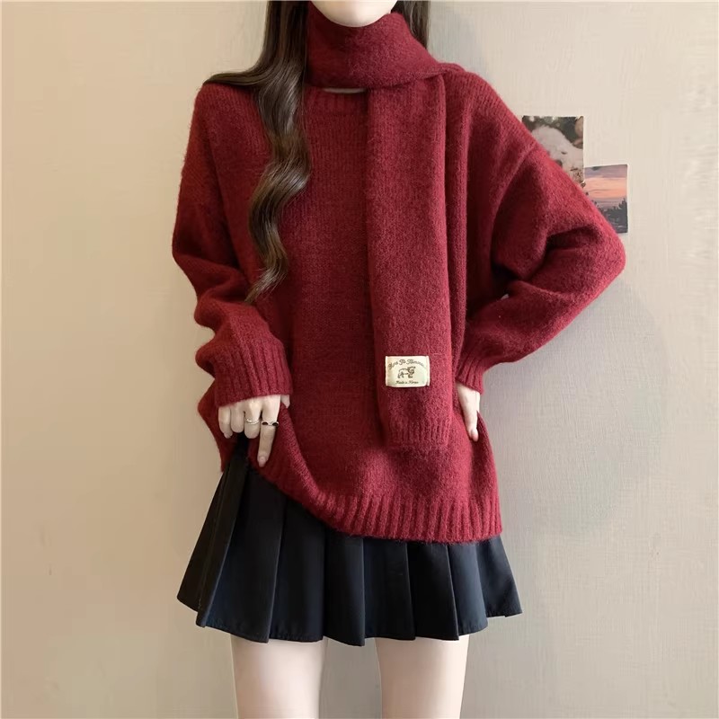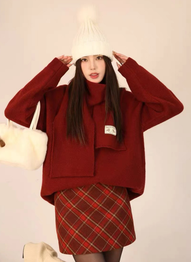 简约圆领围巾毛衣333