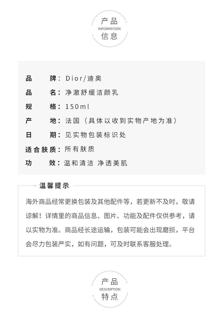Dior迪奥睡莲洁面深彻净洁泡沫洁面乳洗面奶温和清洁 保湿绵密150ml【CDF】