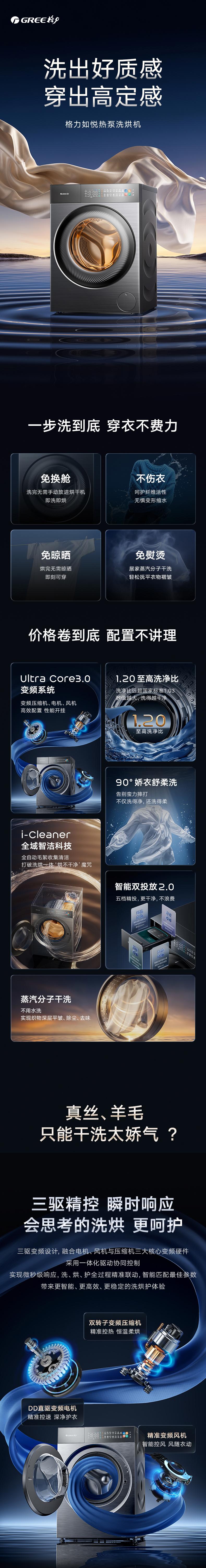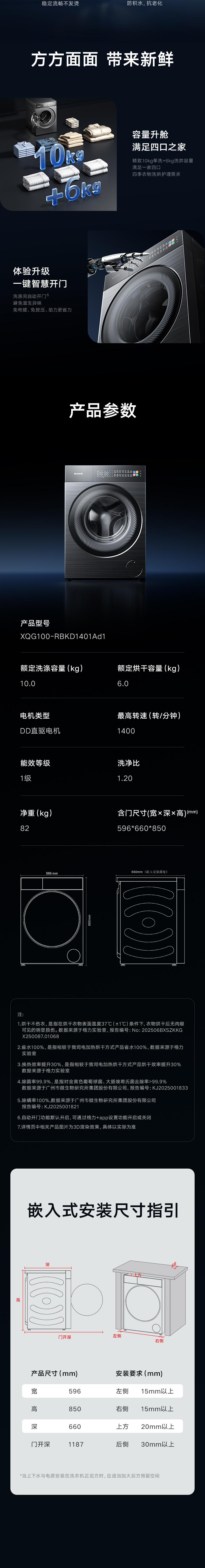 格力如悦热泵洗烘一体机 10kg 全域智洁 体感柔烘 XQG100-RBKD1401Ad1 (珍珠黑)