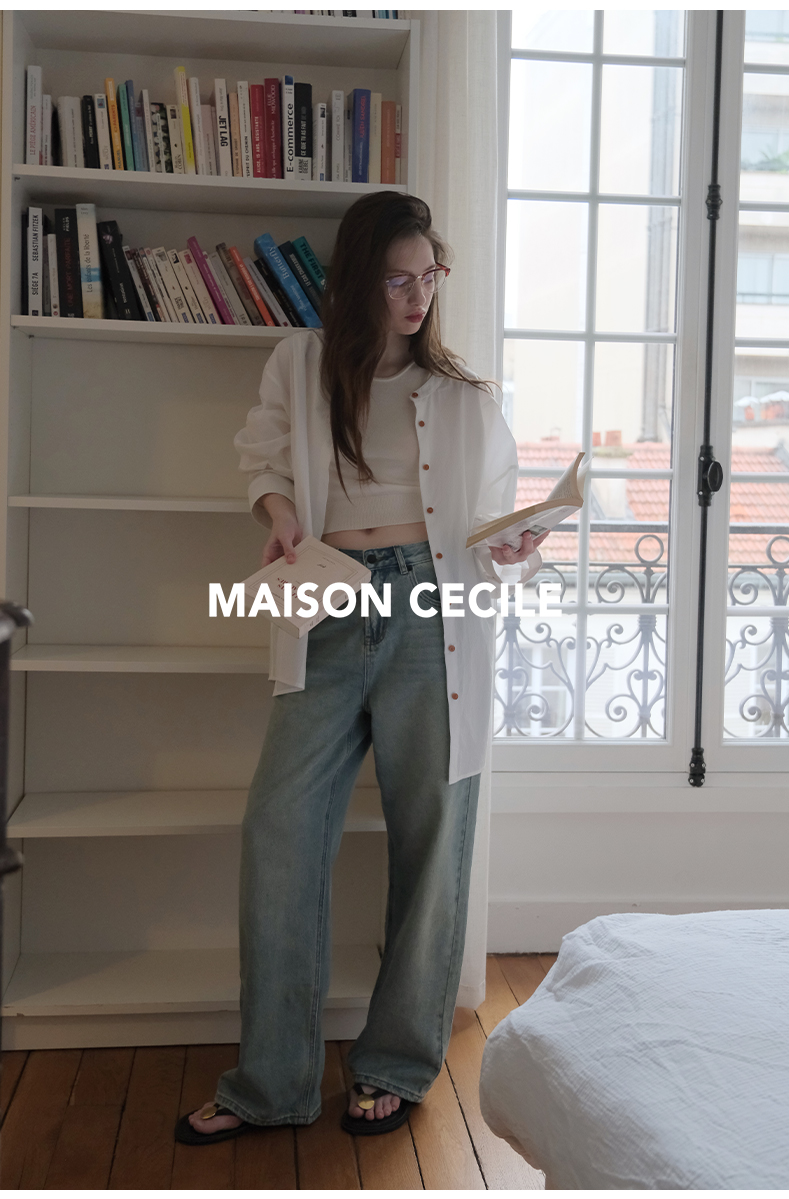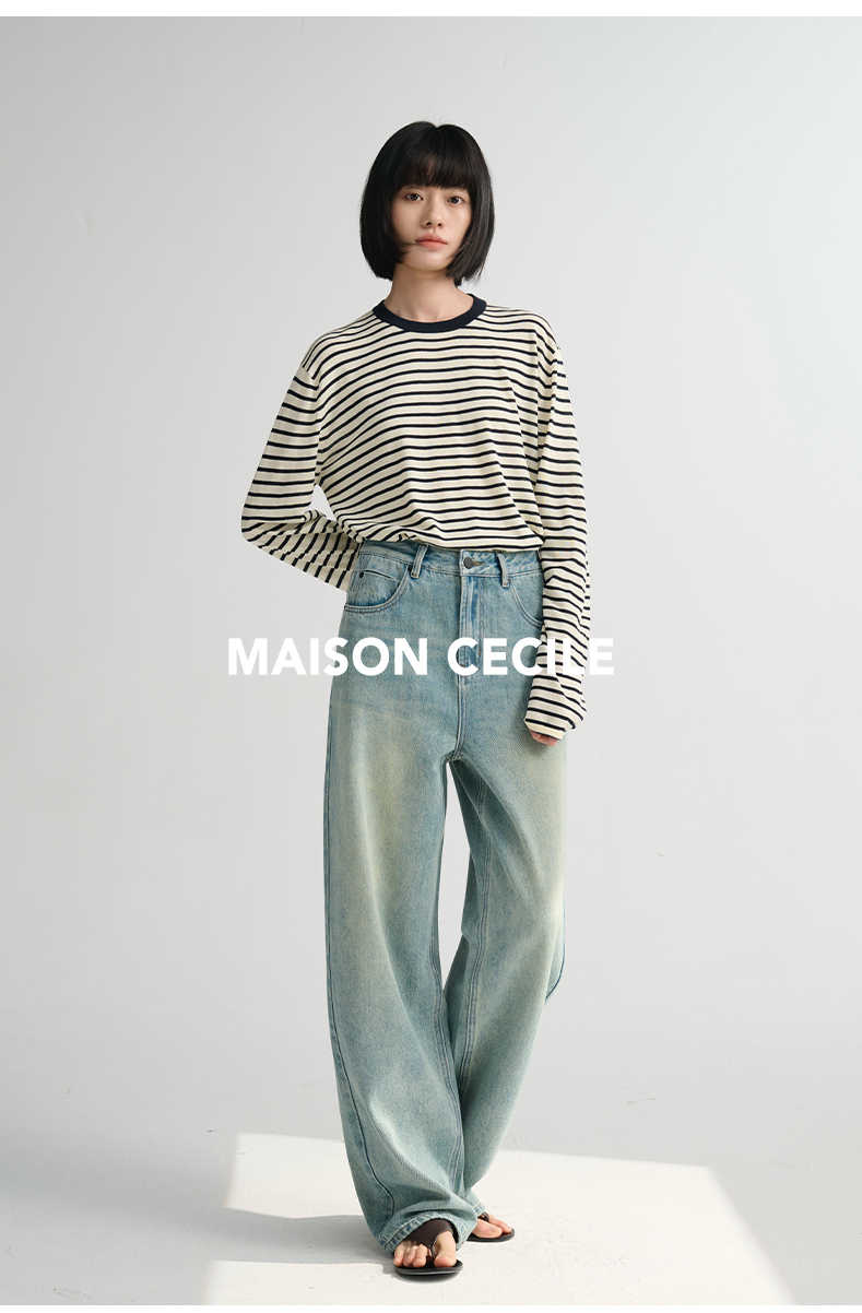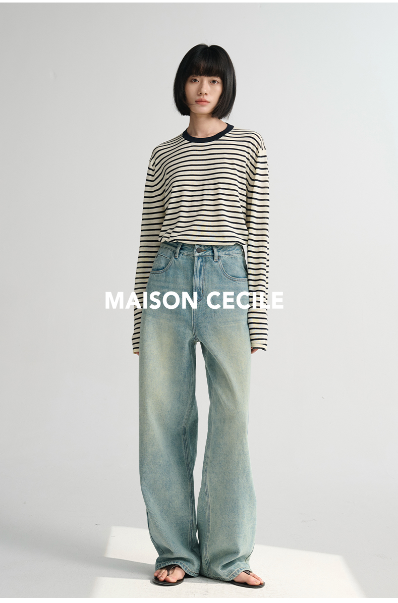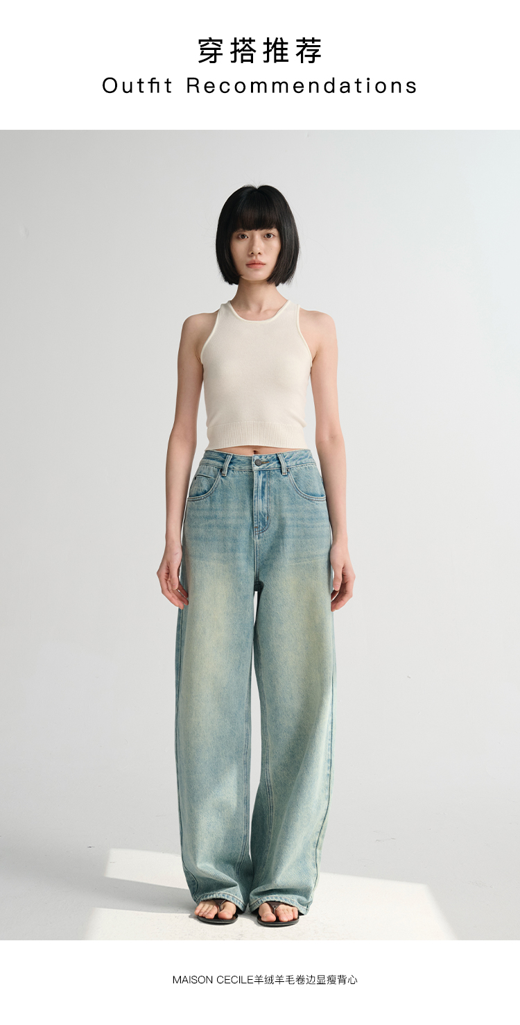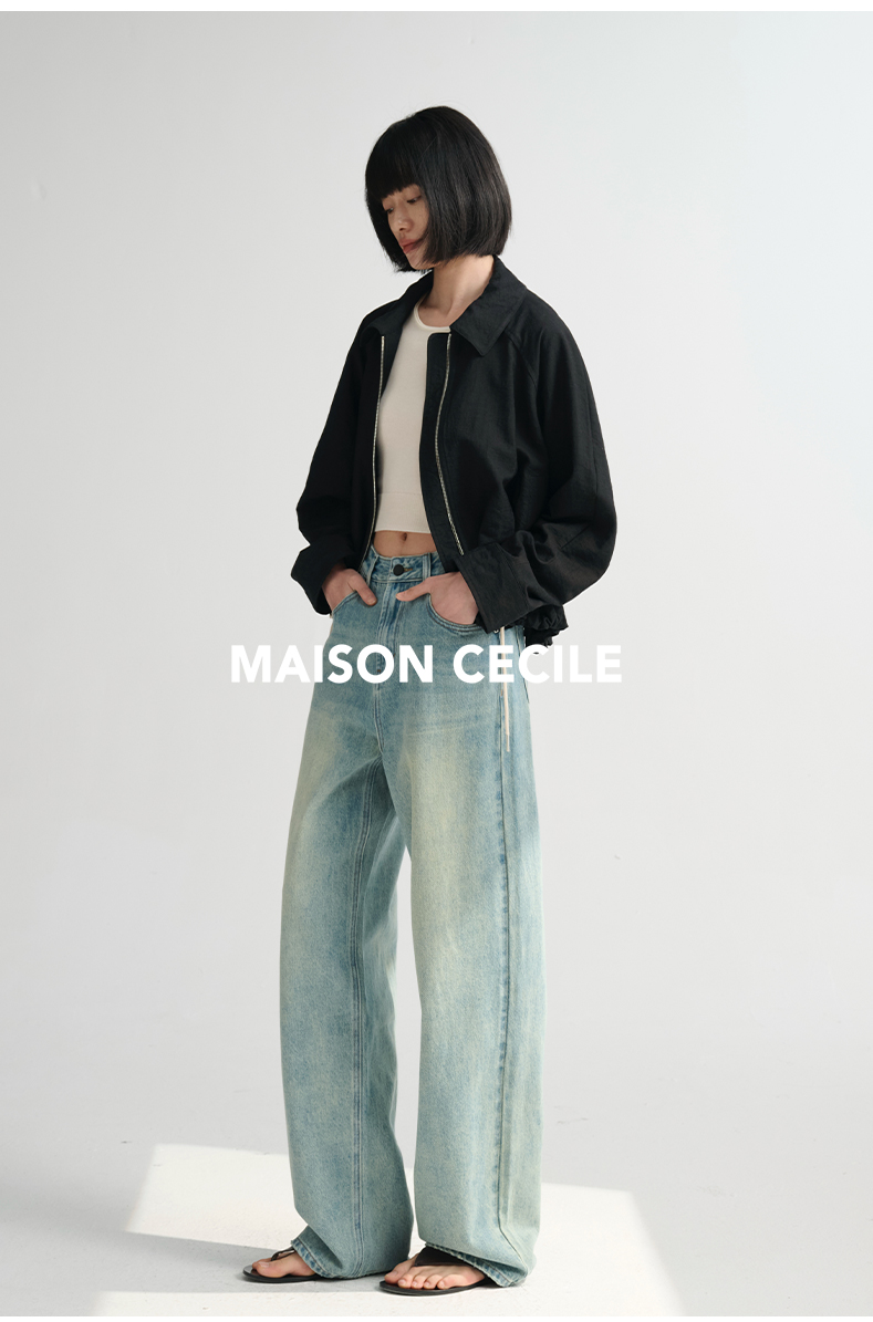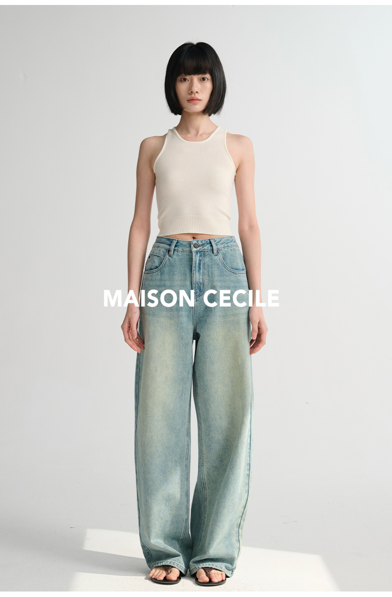 MAISON CECILE 做旧水洗/重磅复古宽松男友风阔腿牛仔裤