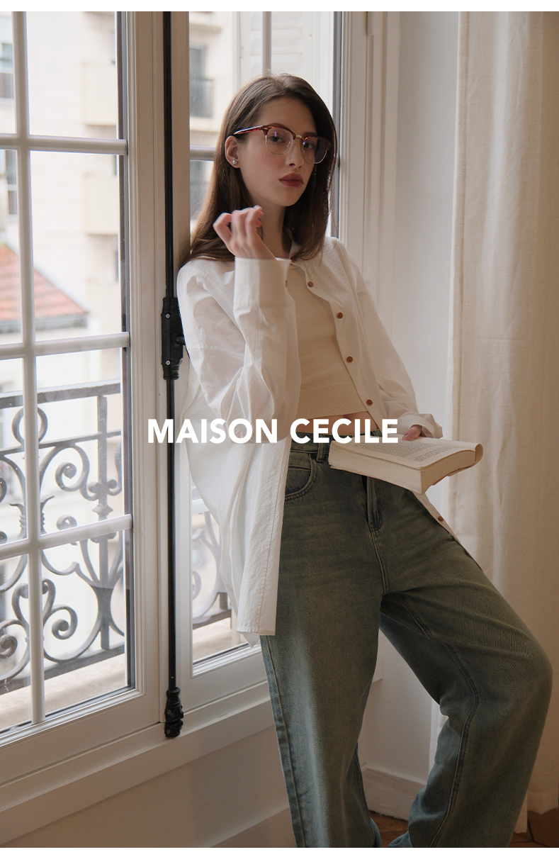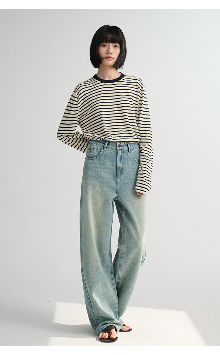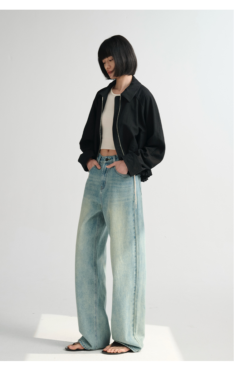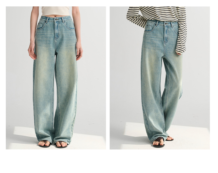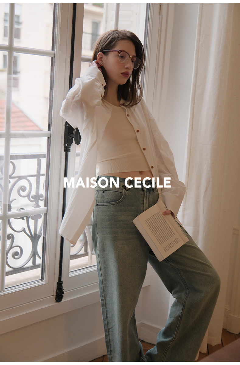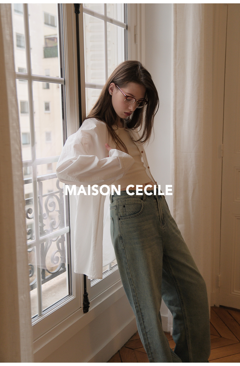 MAISON CECILE 做旧水洗/重磅复古宽松男友风阔腿牛仔裤